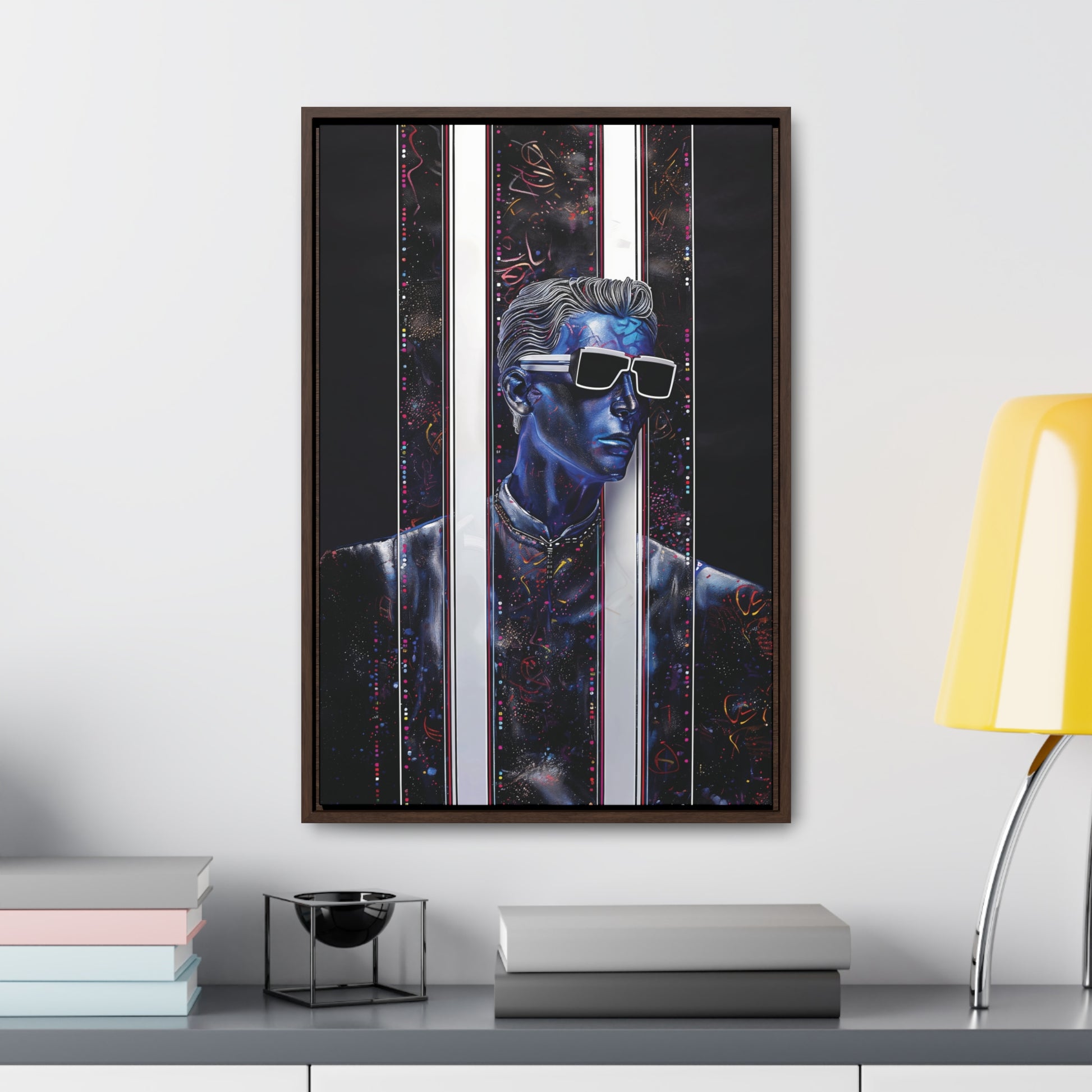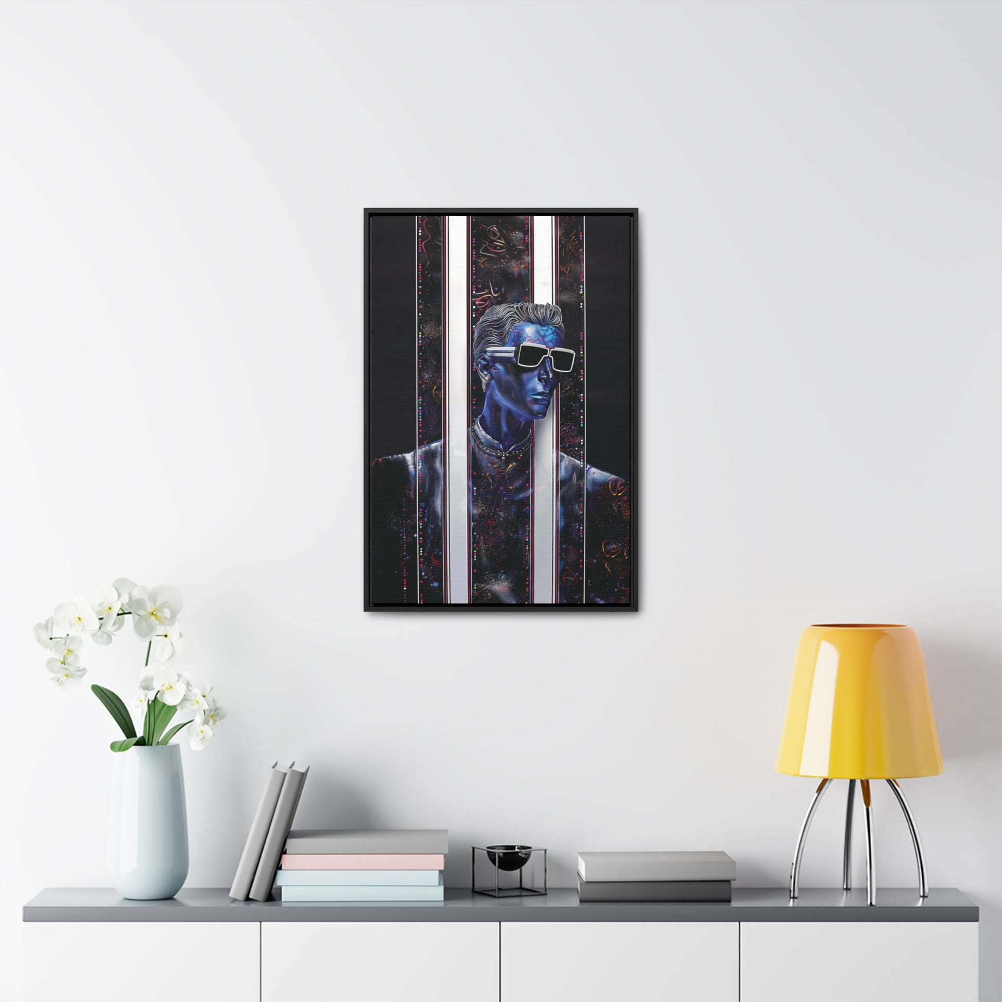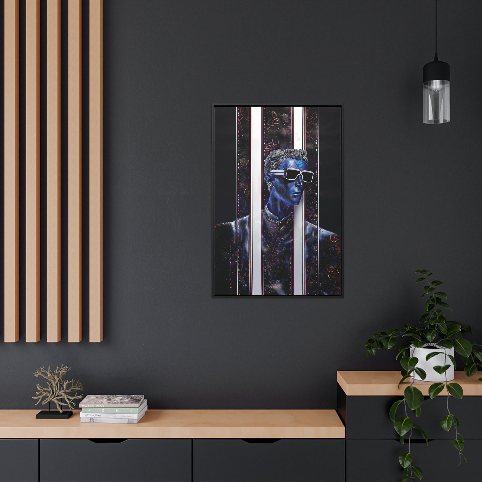 Transform your decor with "Peek-a-Bluesy," a piece that not only reflects your unique taste but also adds a layer of futuristic elegance to your home. Order now and experience the harmonious blend of artistry and quality that sets this canvas print apart.