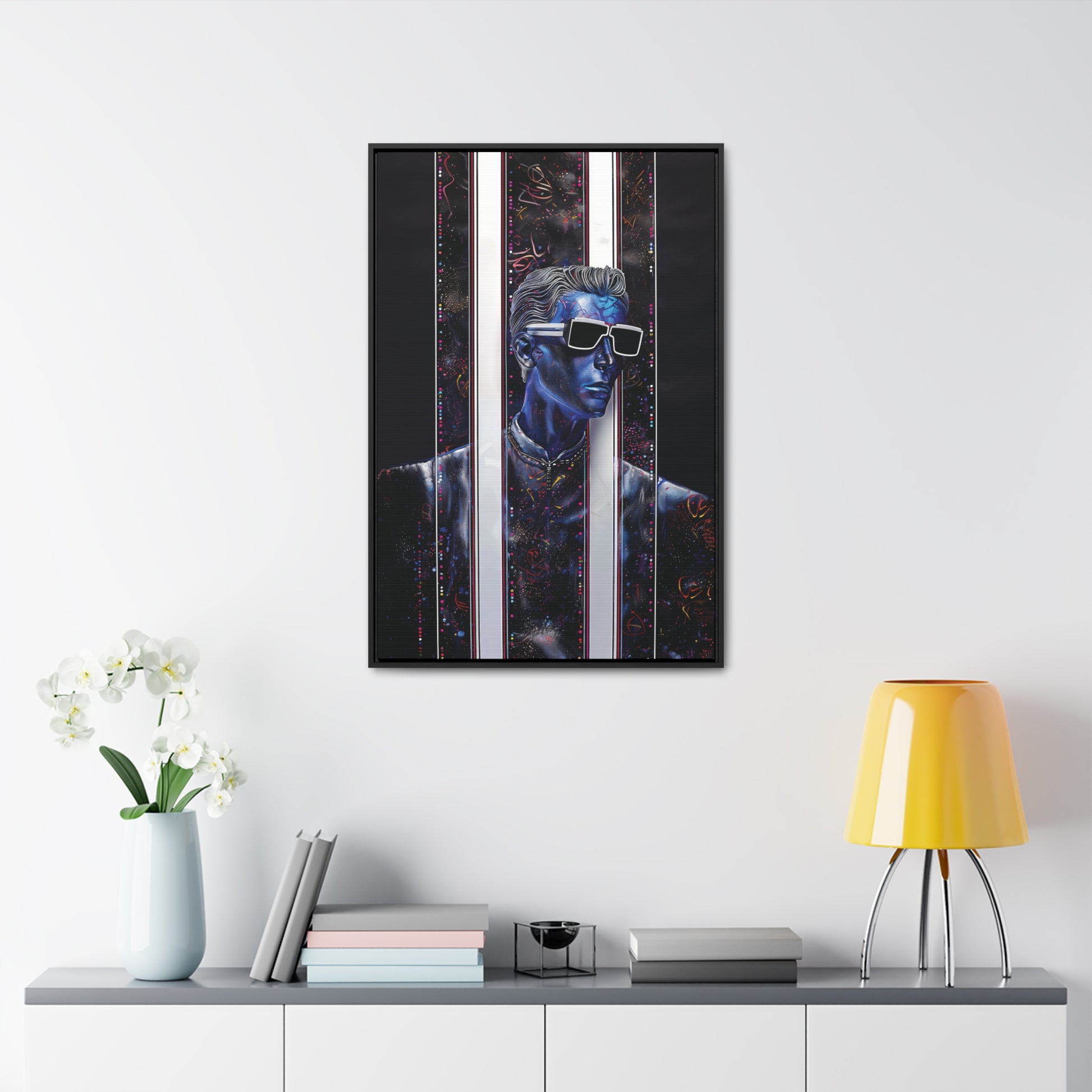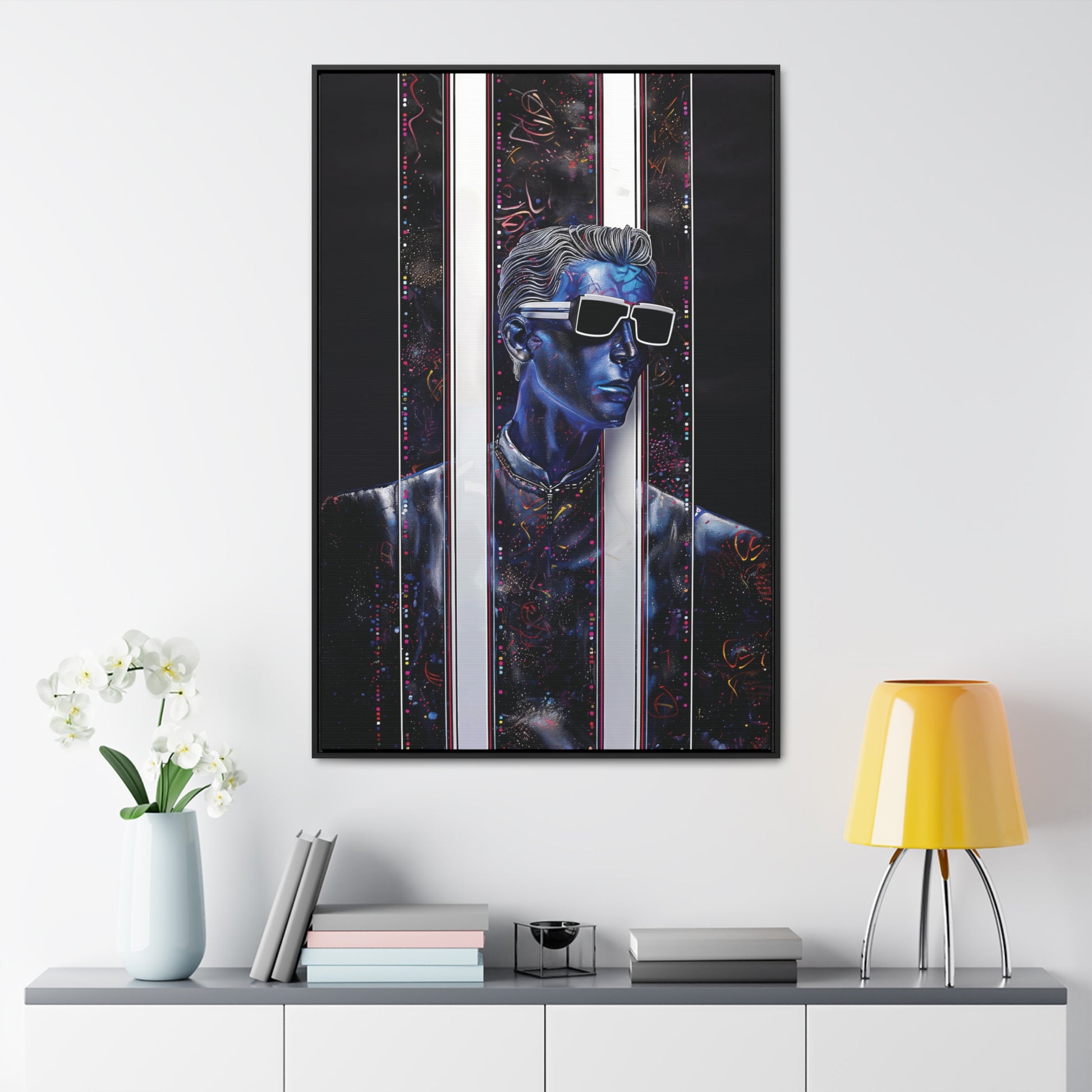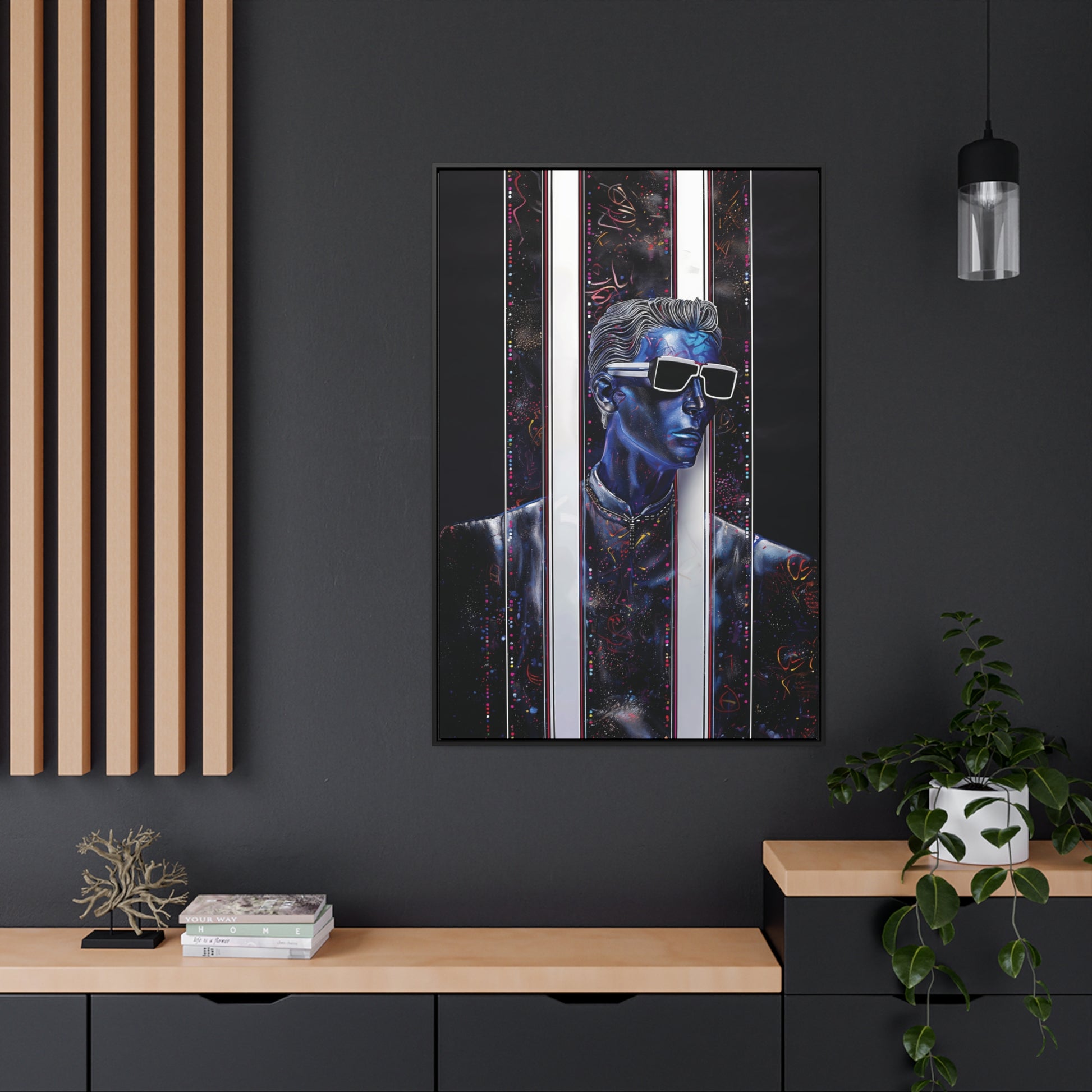 Transform your decor with "Peek-a-Bluesy," a piece that not only reflects your unique taste but also adds a layer of futuristic elegance to your home. Order now and experience the harmonious blend of artistry and quality that sets this canvas print apart.