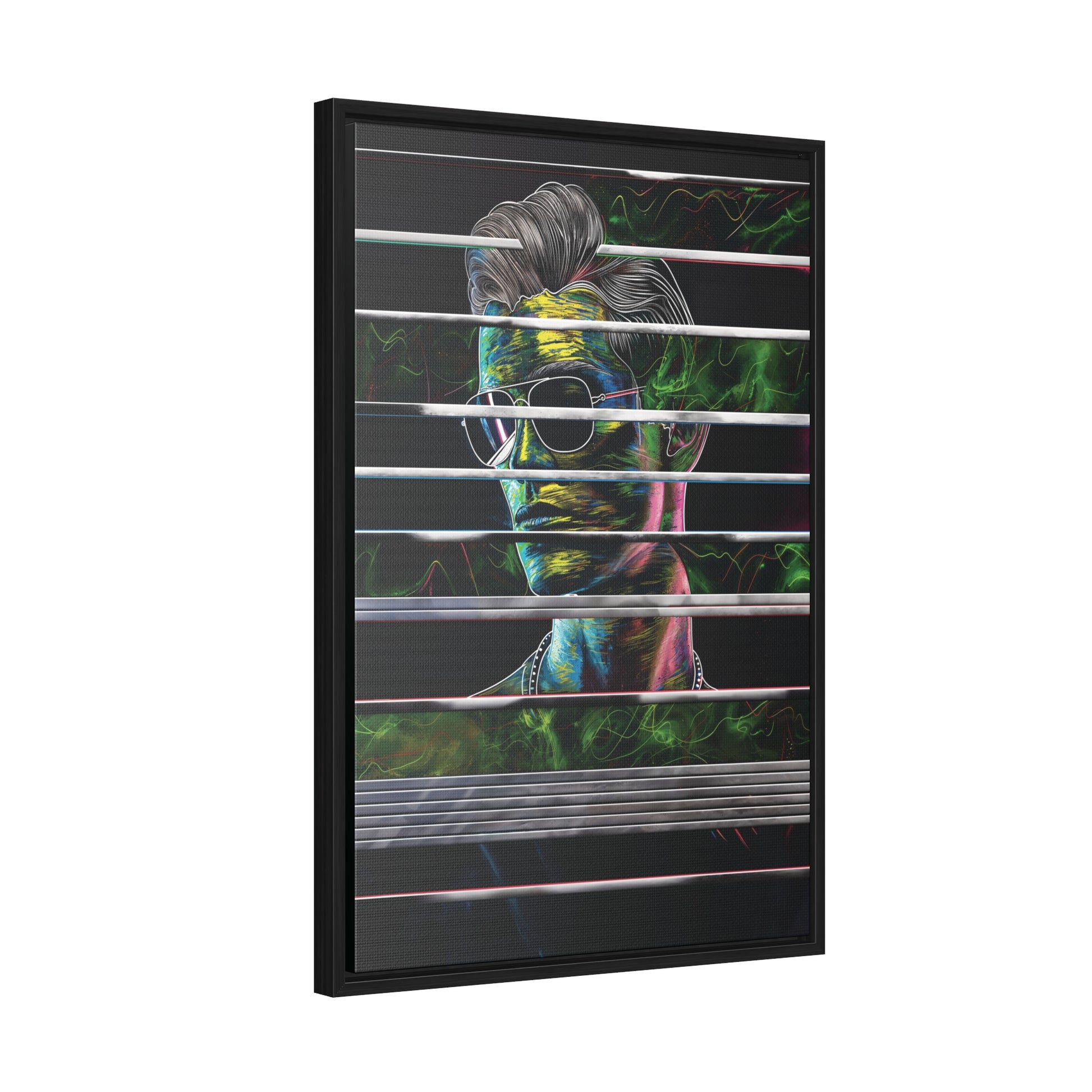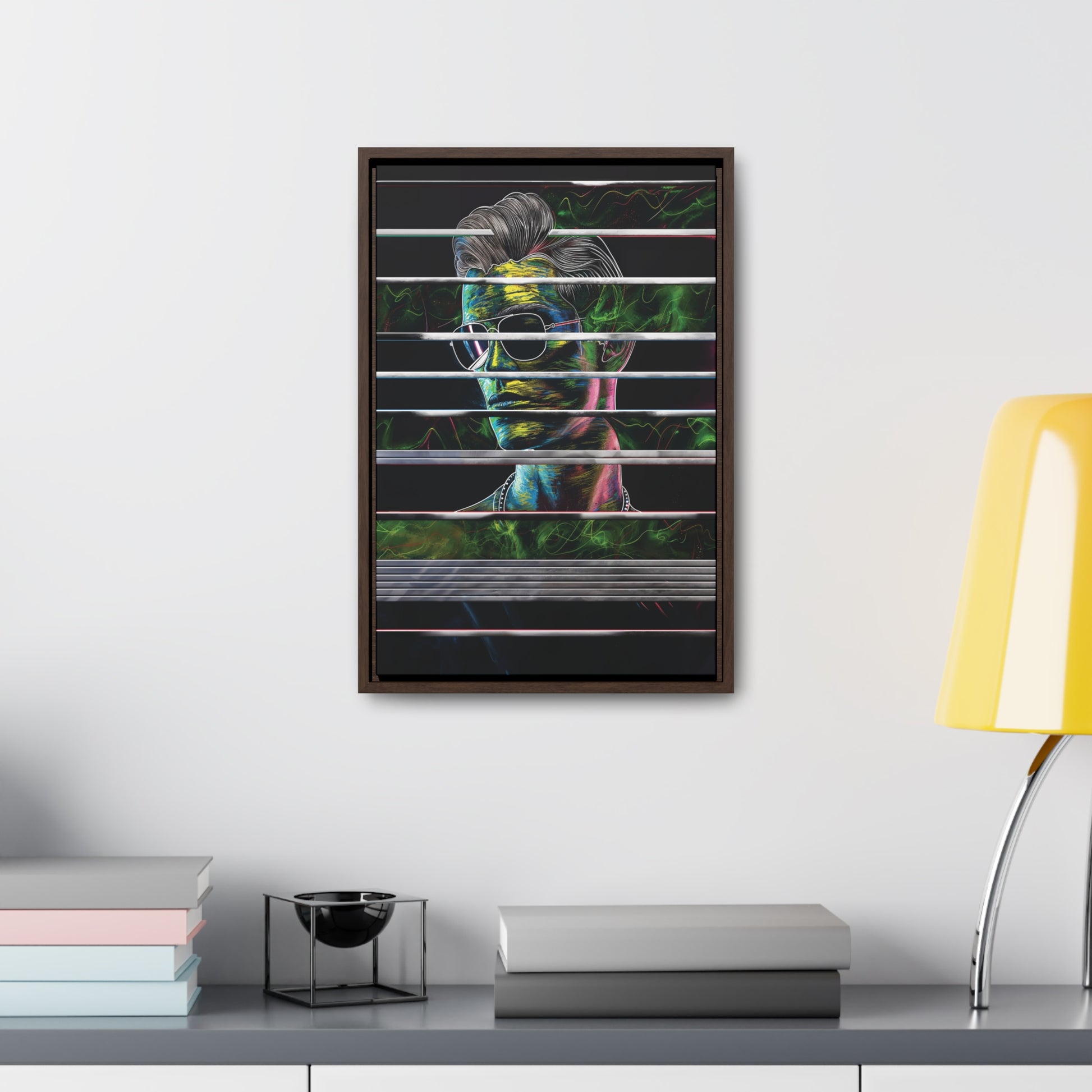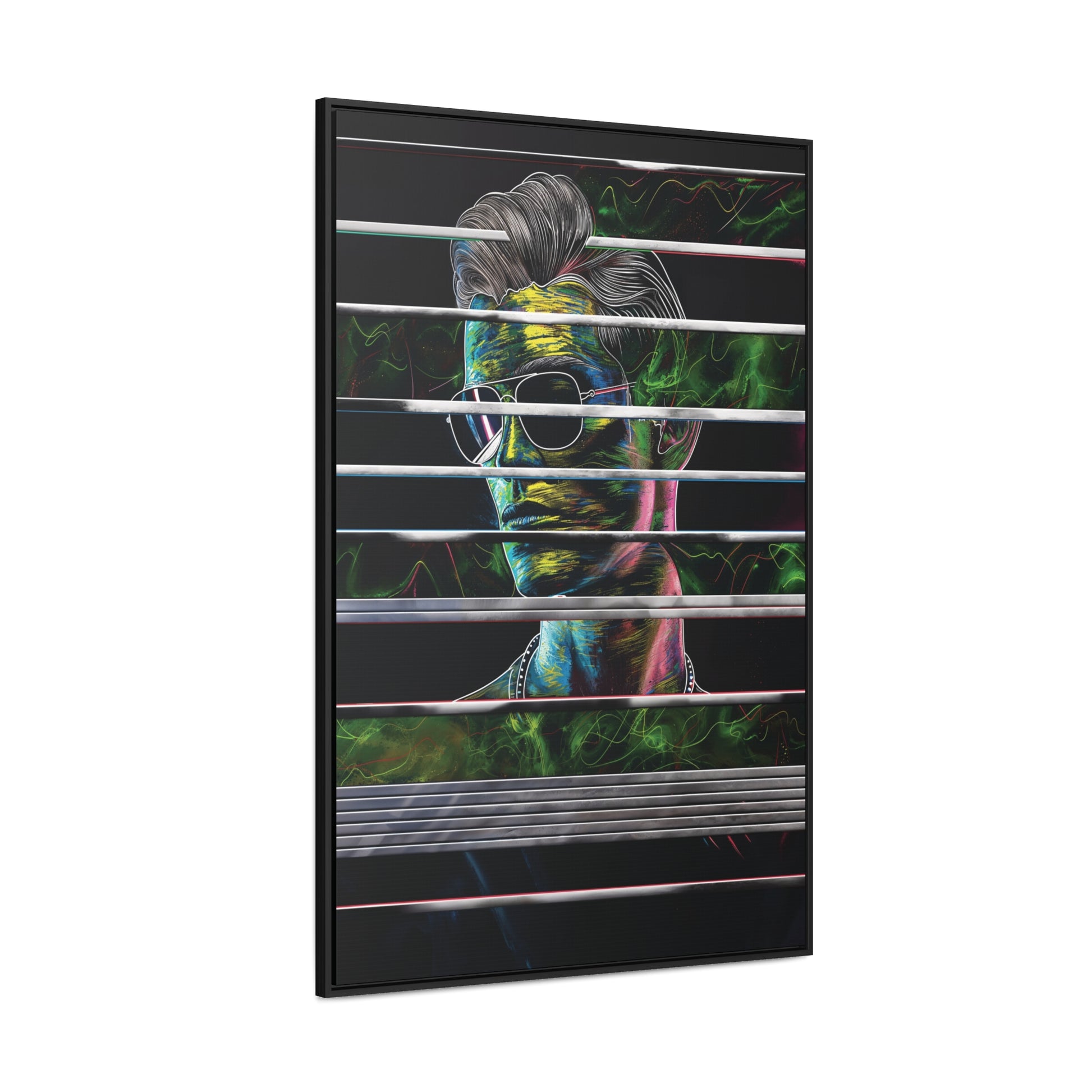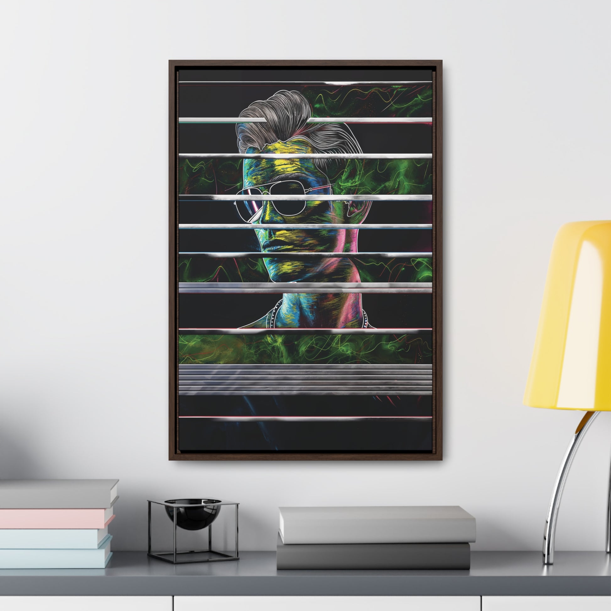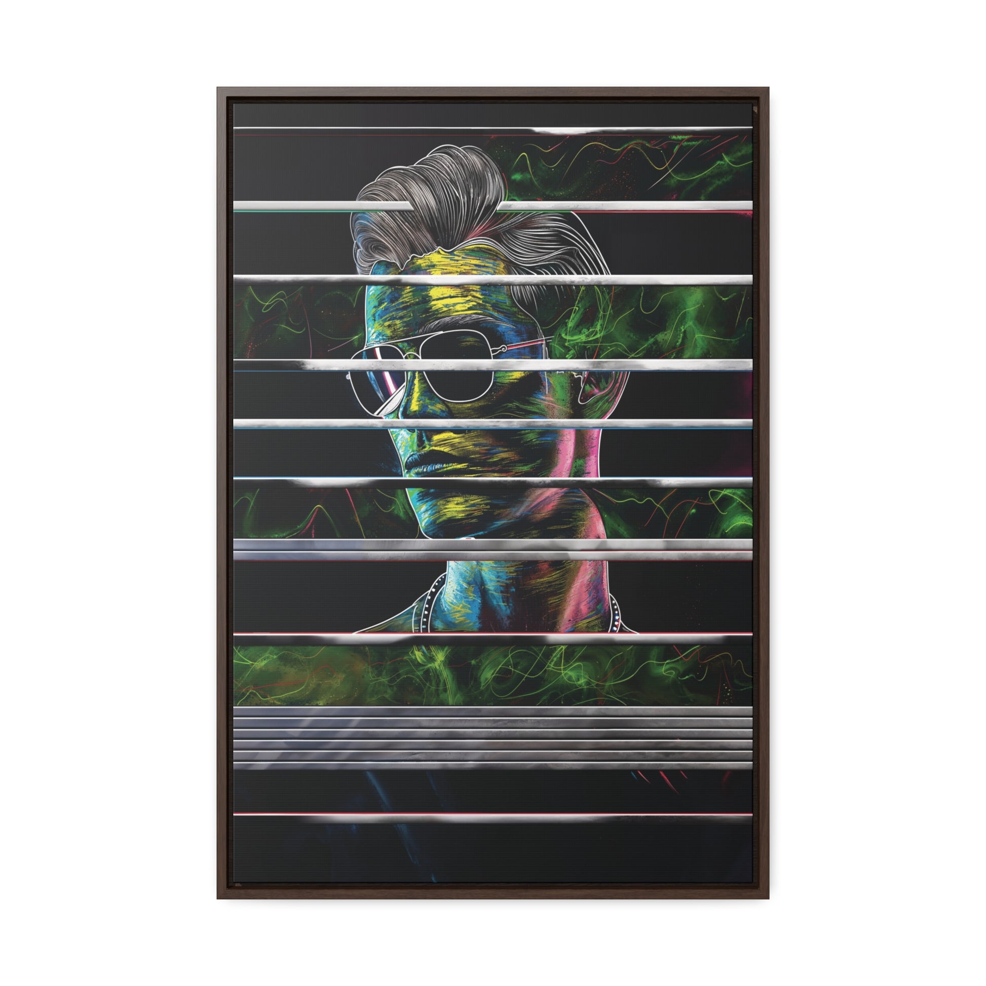 Infuse your space with the vibrant energy of "Geenon Haze," a modern art piece that exudes style and intrigue. This striking artwork features a portrait interwoven with linear patterns and vivid greens and hues mimicking metallic colors. The composition captures a sense of movement and mystery, making it a standout addition to any room.