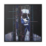 Elevate your interior decor with "Chained Bluesy," a captivating piece of modern art that exudes depth and character. This artwork features a striking portrait adorned with chains that mimic headphone wires, symbolizing our connection to electronic devices and technology. Set against a dynamic backdrop of blues and hues mimicking metallic colors, this piece is visually compelling and thought-provoking, reflecting on the wires and chains we no longer see.