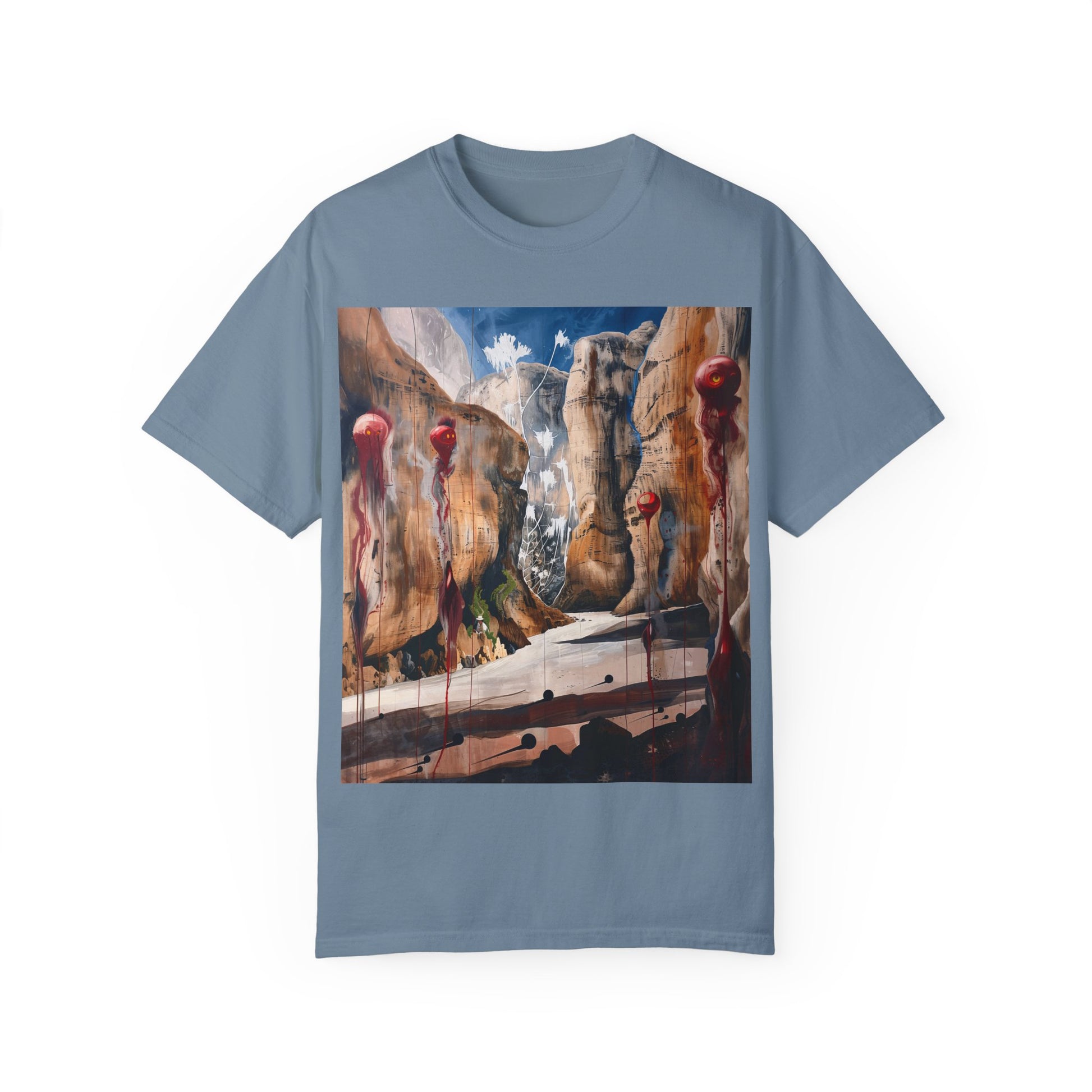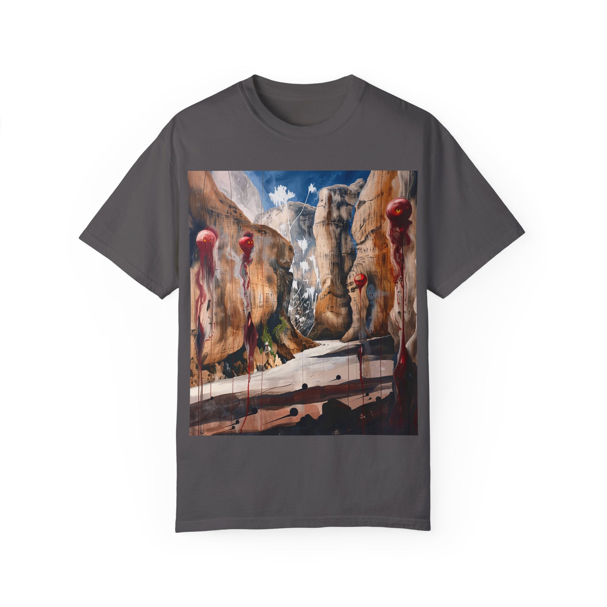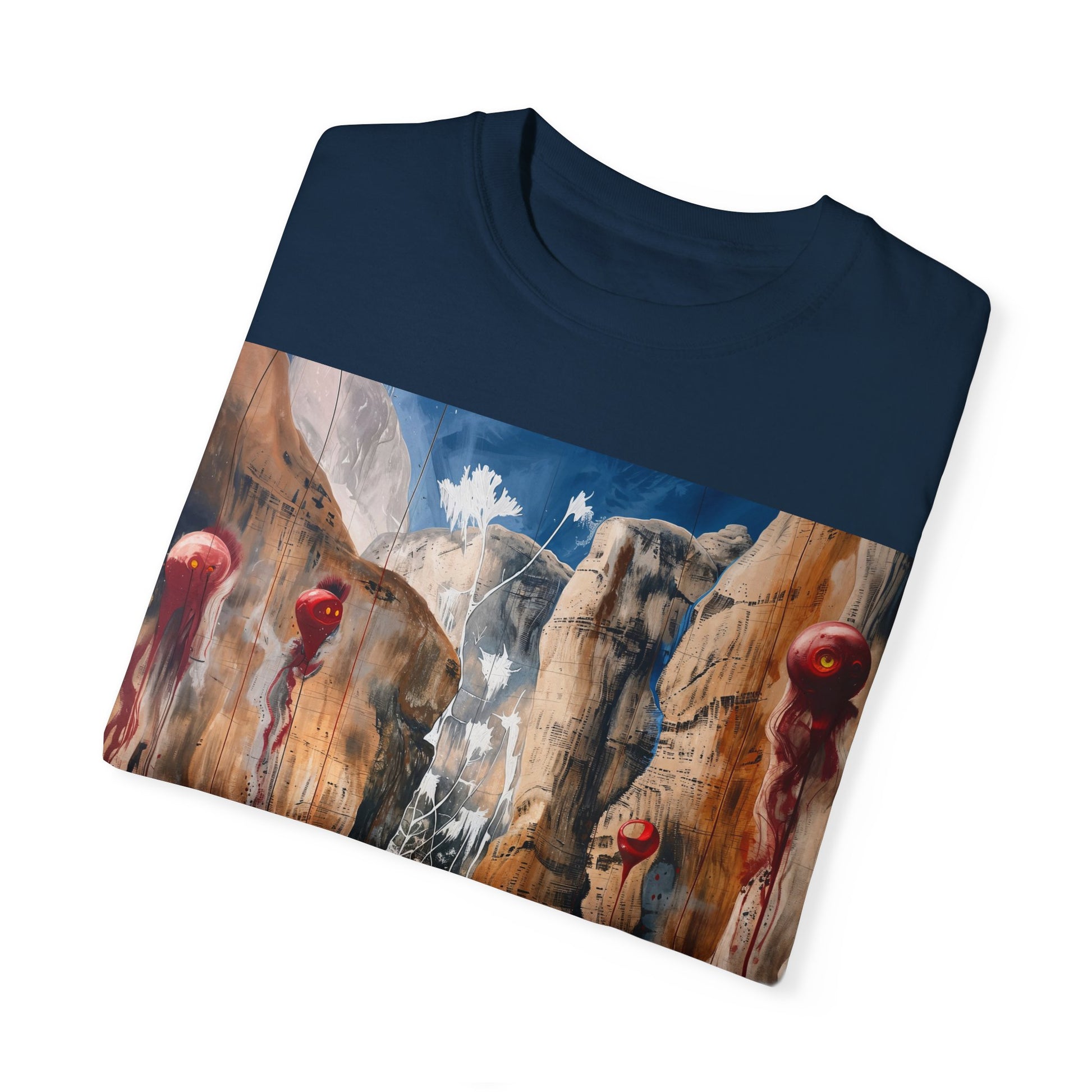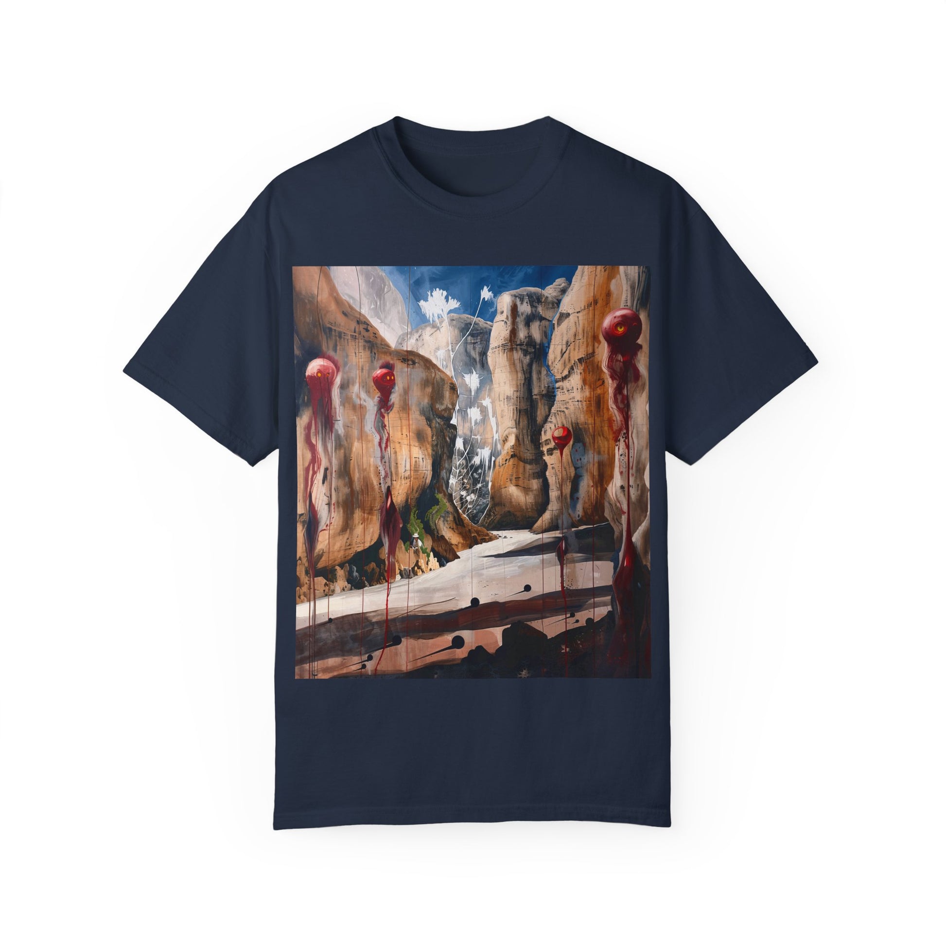Explore uncharted style with the I Hadn't Seen That Before design from the Cosmic Canyon Collection. This mesmerizing modern artwork, inspired by the rugged beauty of cosmic canyons and celestial hues, adds a bold artistic statement to your wardrobe. Whether you're dressing casually or for a laid-back occasion, this t-shirt elevates your everyday look with vibrant, otherworldly charm.