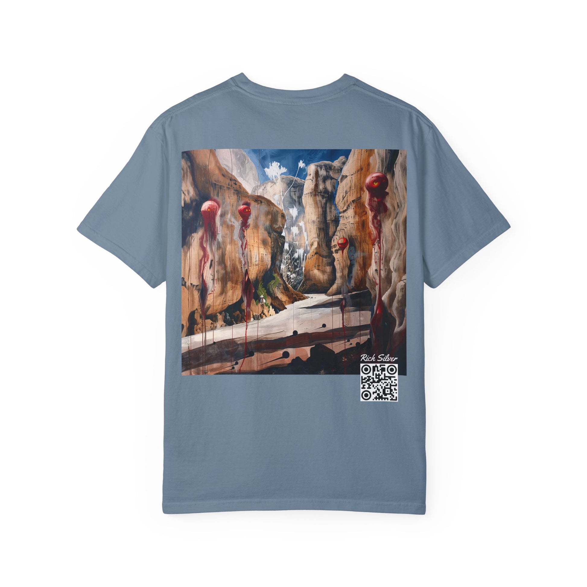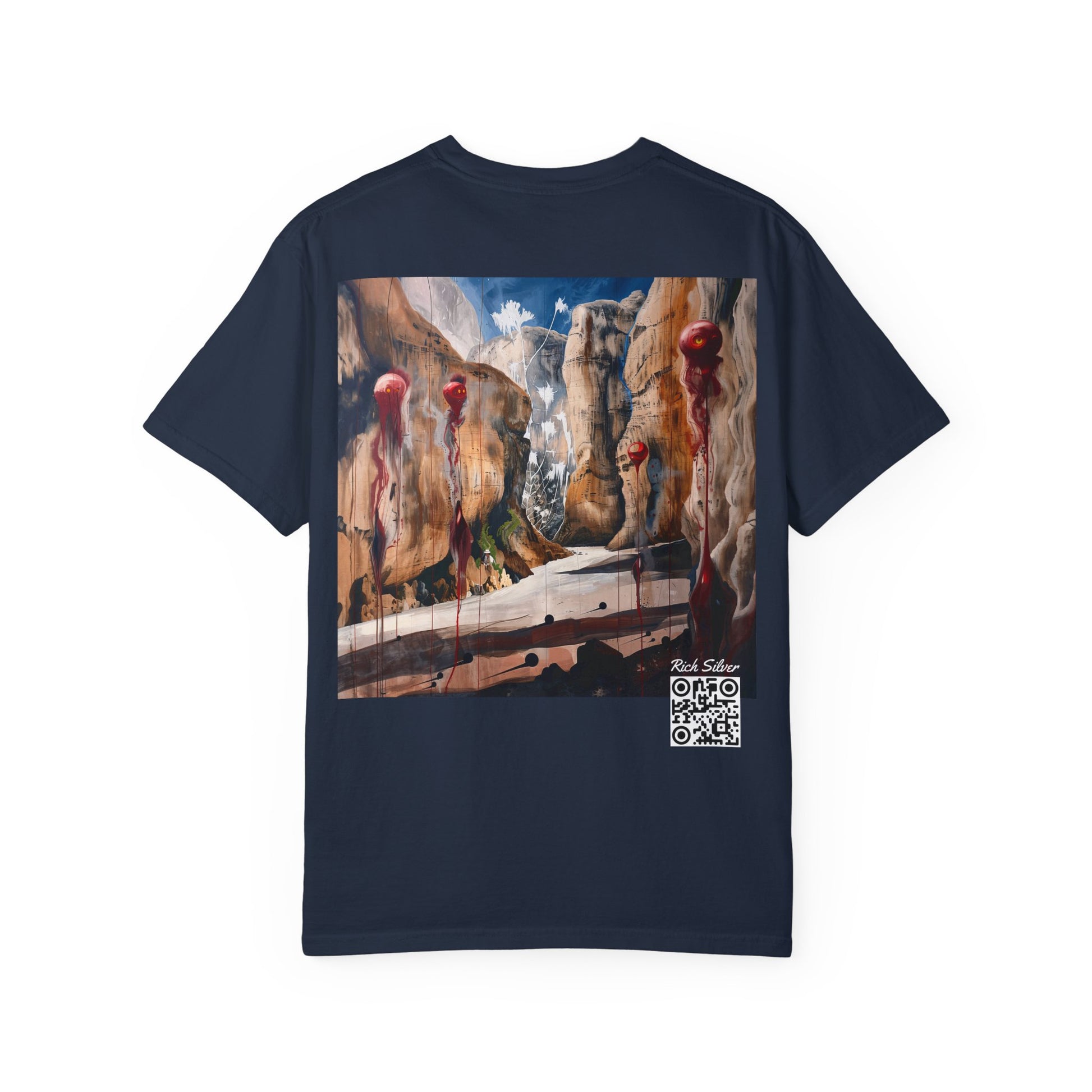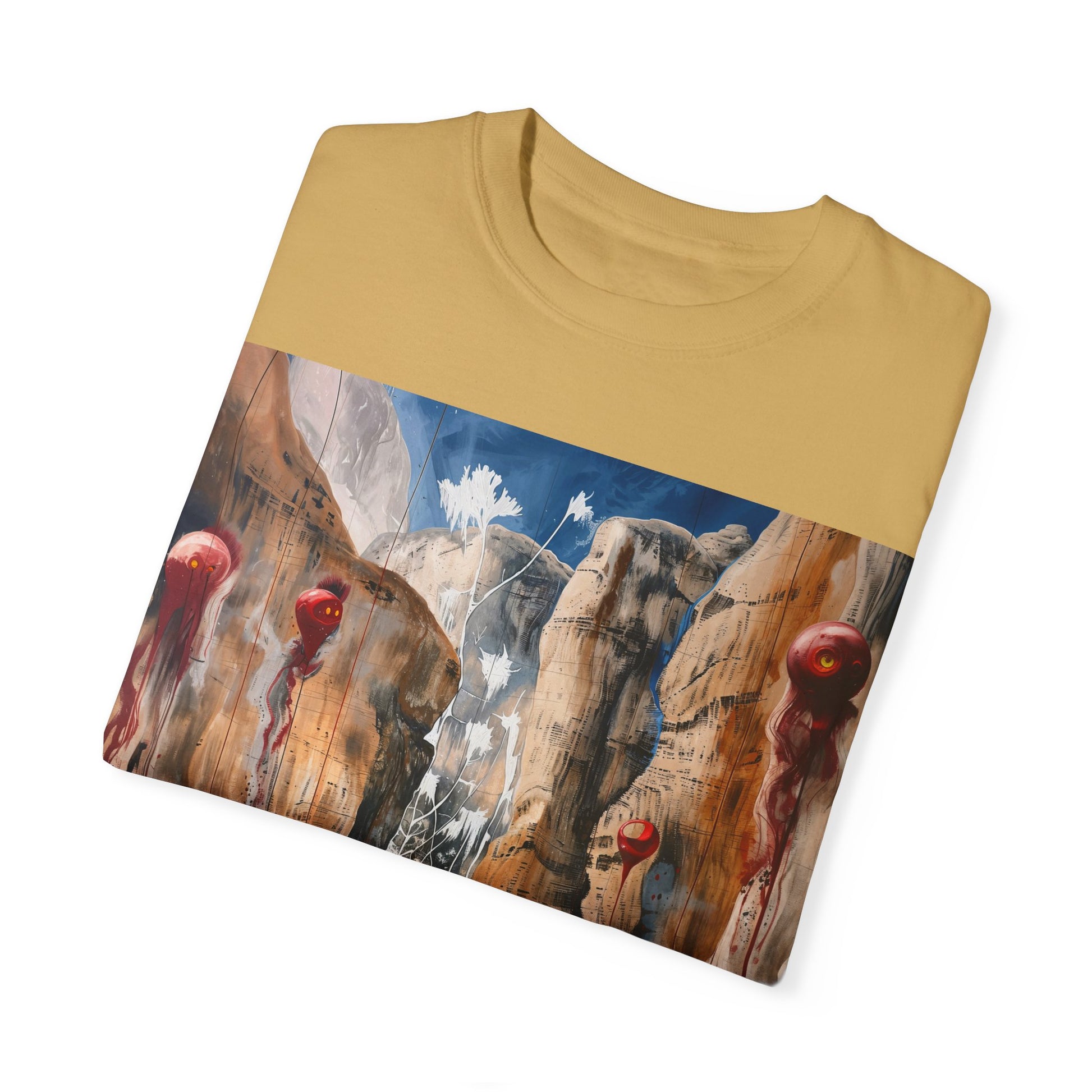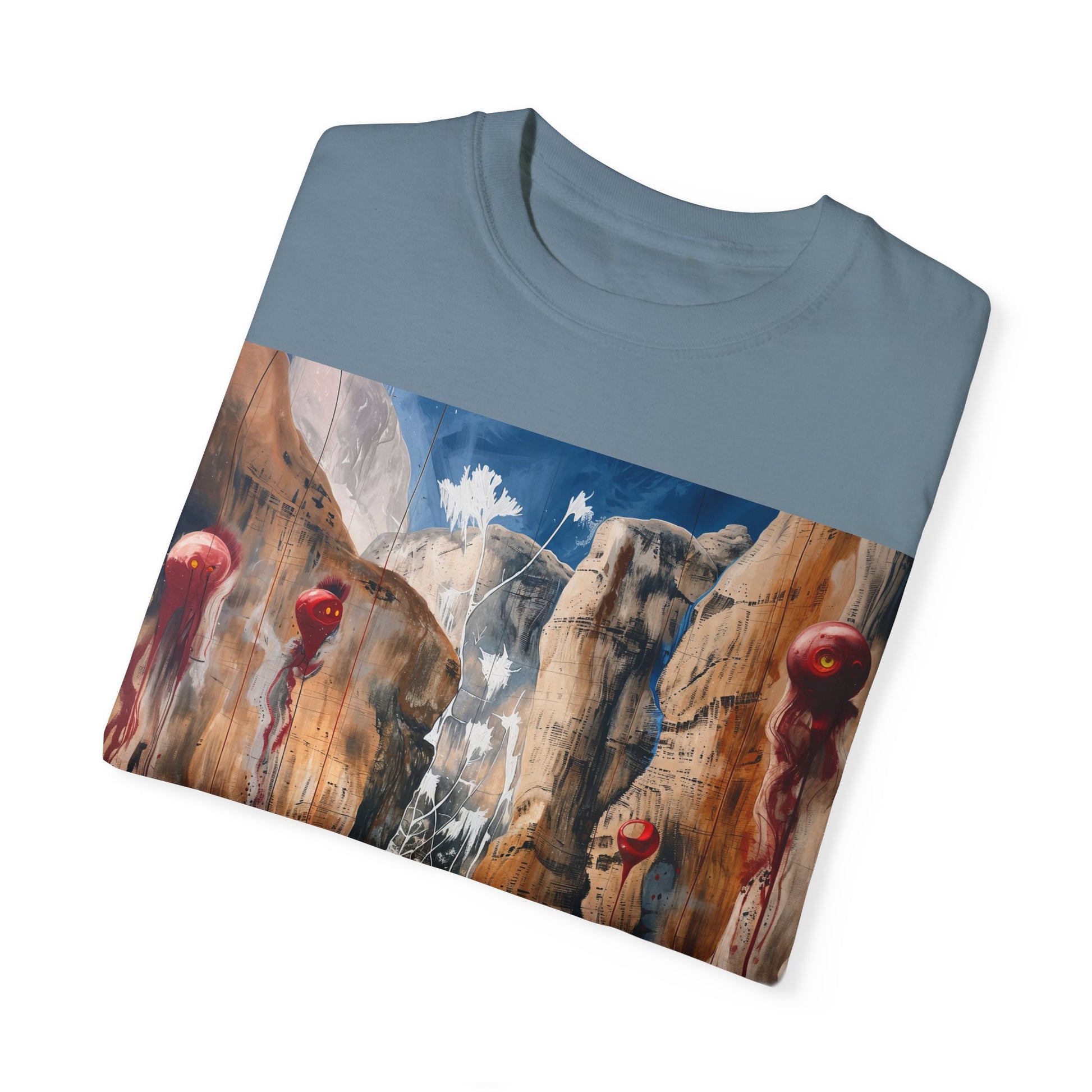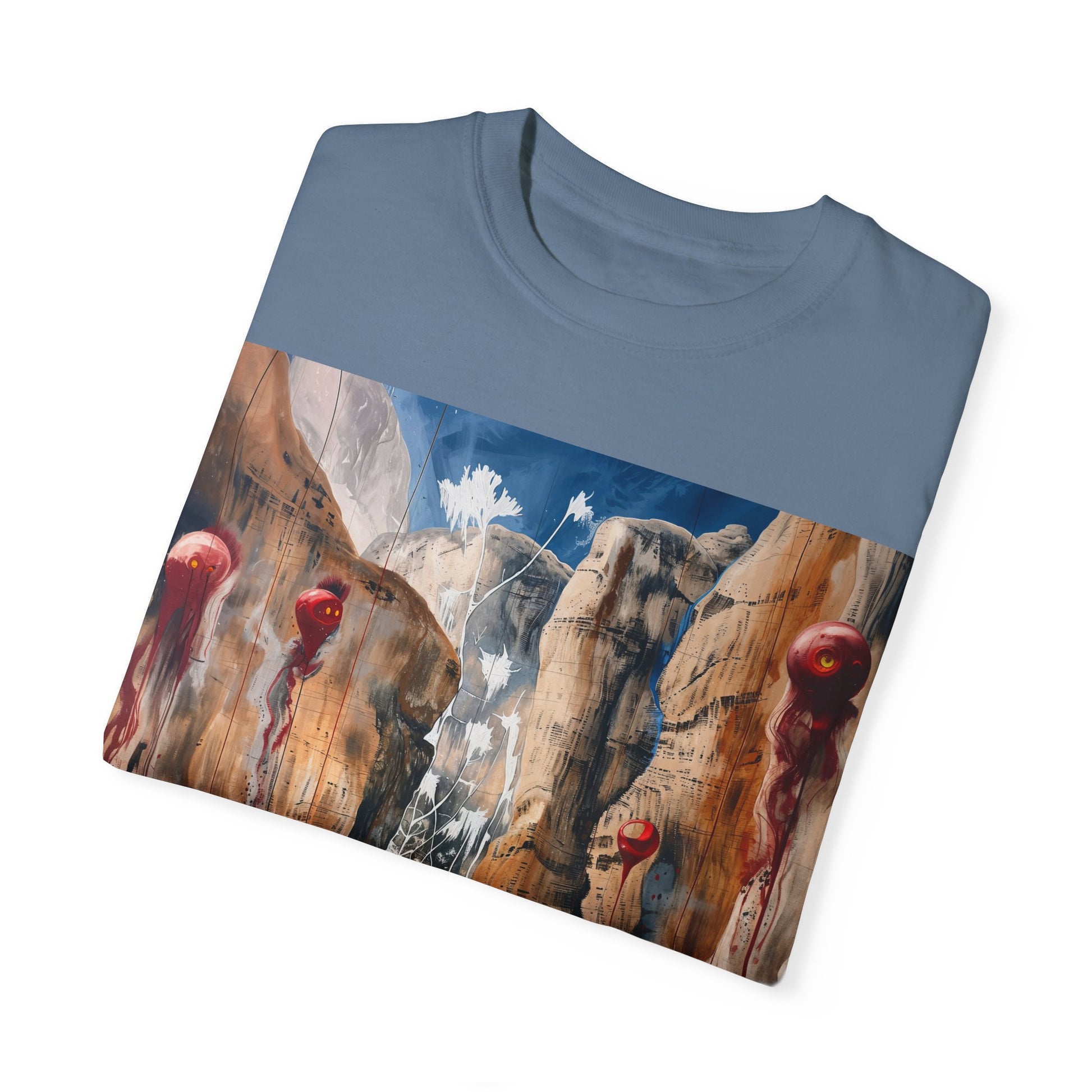 Explore uncharted style with the I Hadn't Seen That Before design from the Cosmic Canyon Collection. This mesmerizing modern artwork, inspired by the rugged beauty of cosmic canyons and celestial hues, adds a bold artistic statement to your wardrobe. Whether you're dressing casually or for a laid-back occasion, this t-shirt elevates your everyday look with vibrant, otherworldly charm.