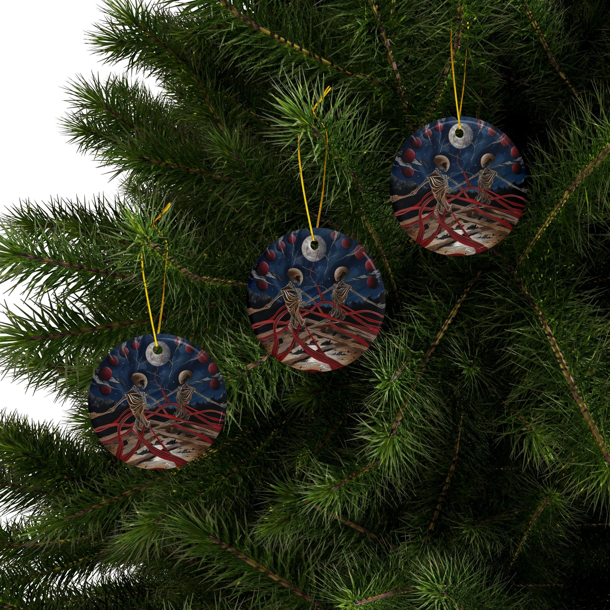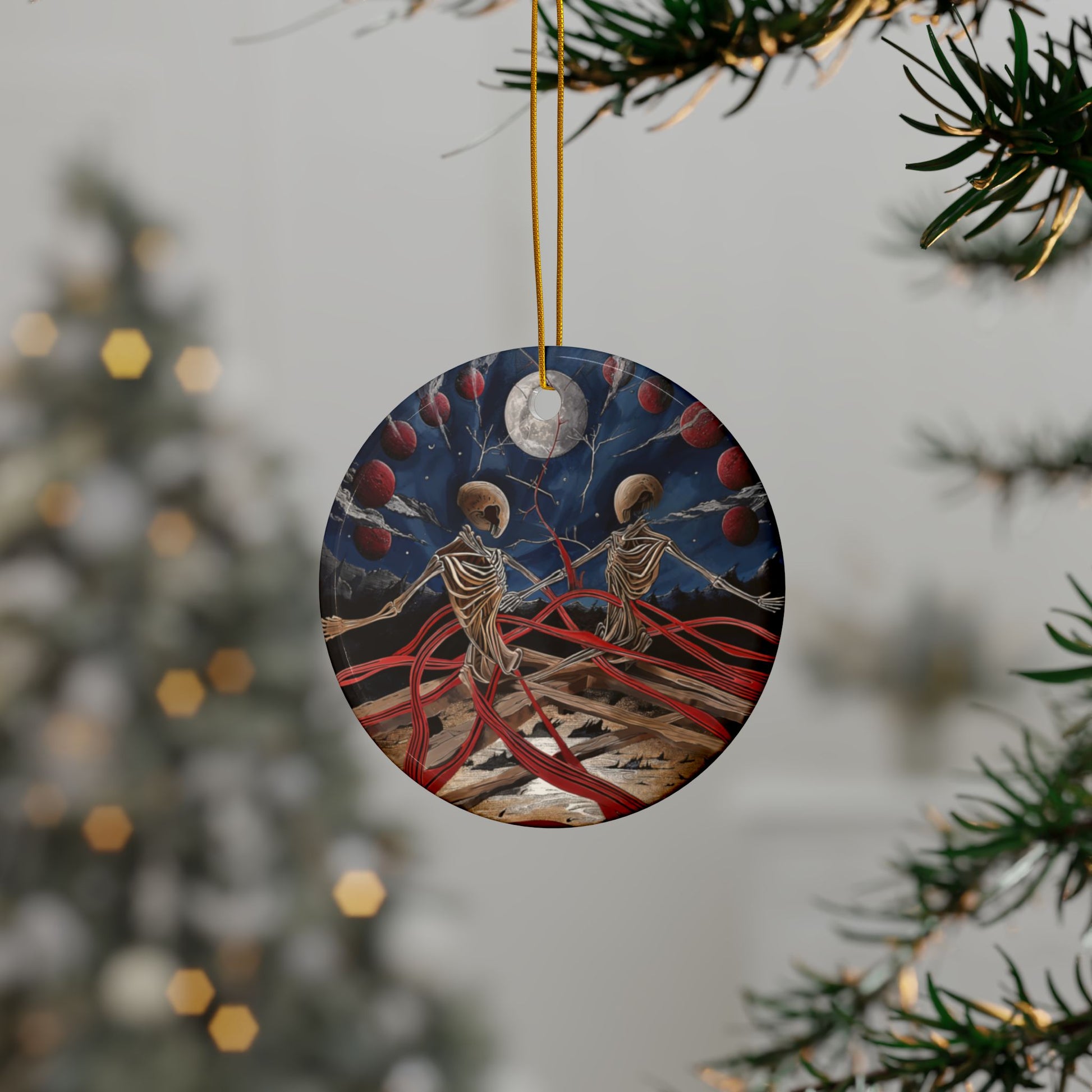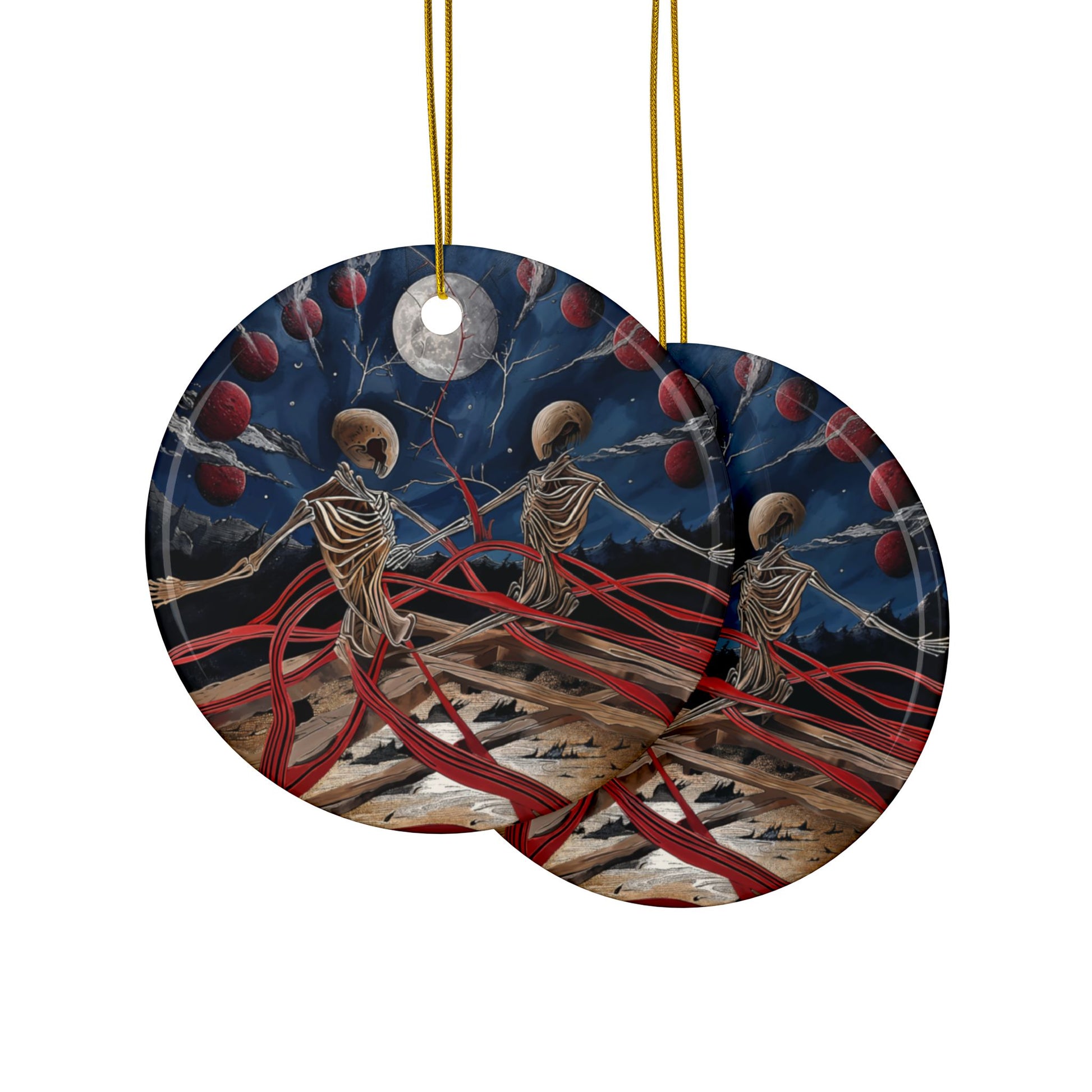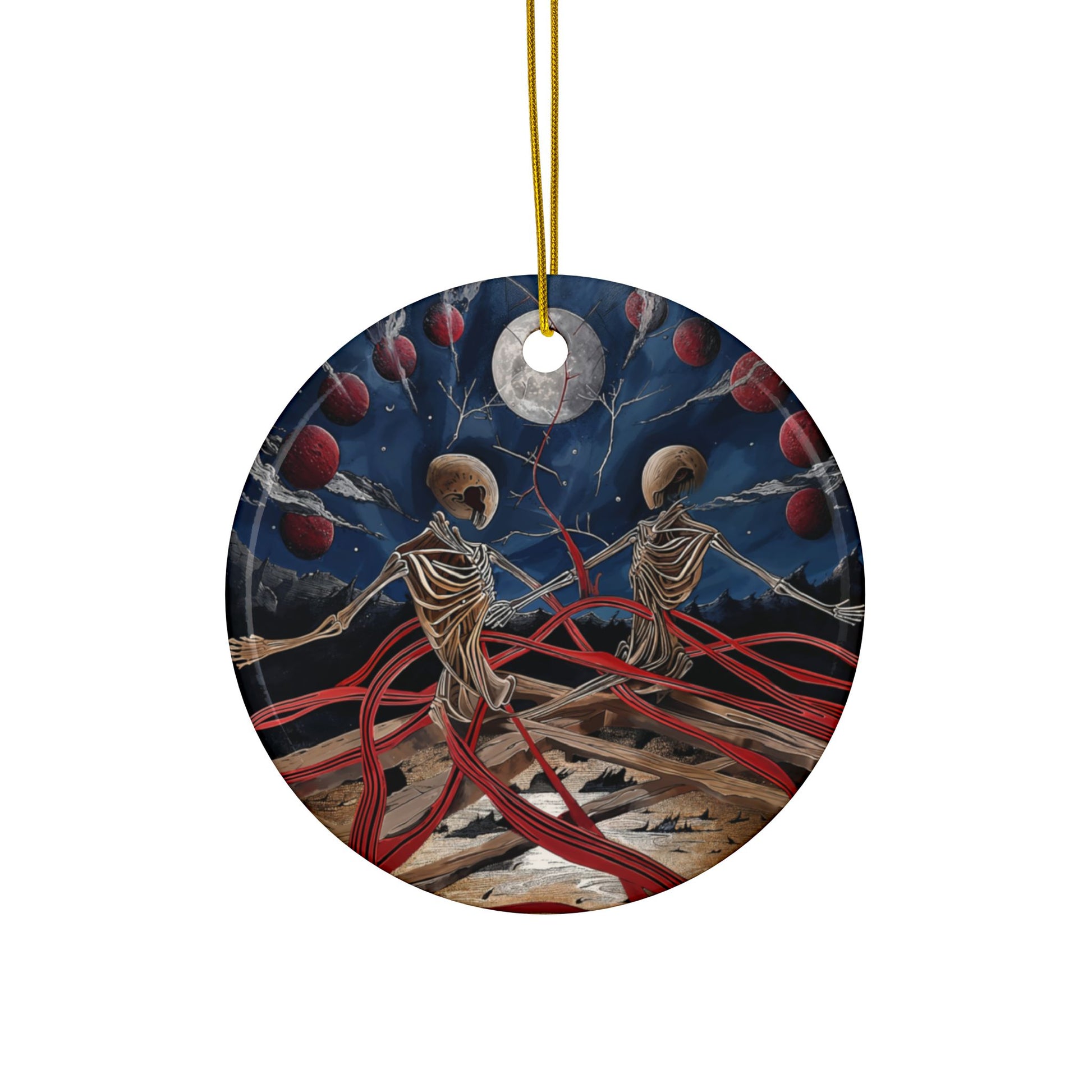 Delve into the macabre with "Ritual of the Red Orbs," an evocative piece of modern art created for those with a love for the dark and surreal. This artwork, dedicated to Zach, features skeletal figures entwined in an eternal dance under a moonlit sky, surrounded by haunting red orbs. The eerie and mesmerizing composition makes it a unique and captivating focal point for any room.