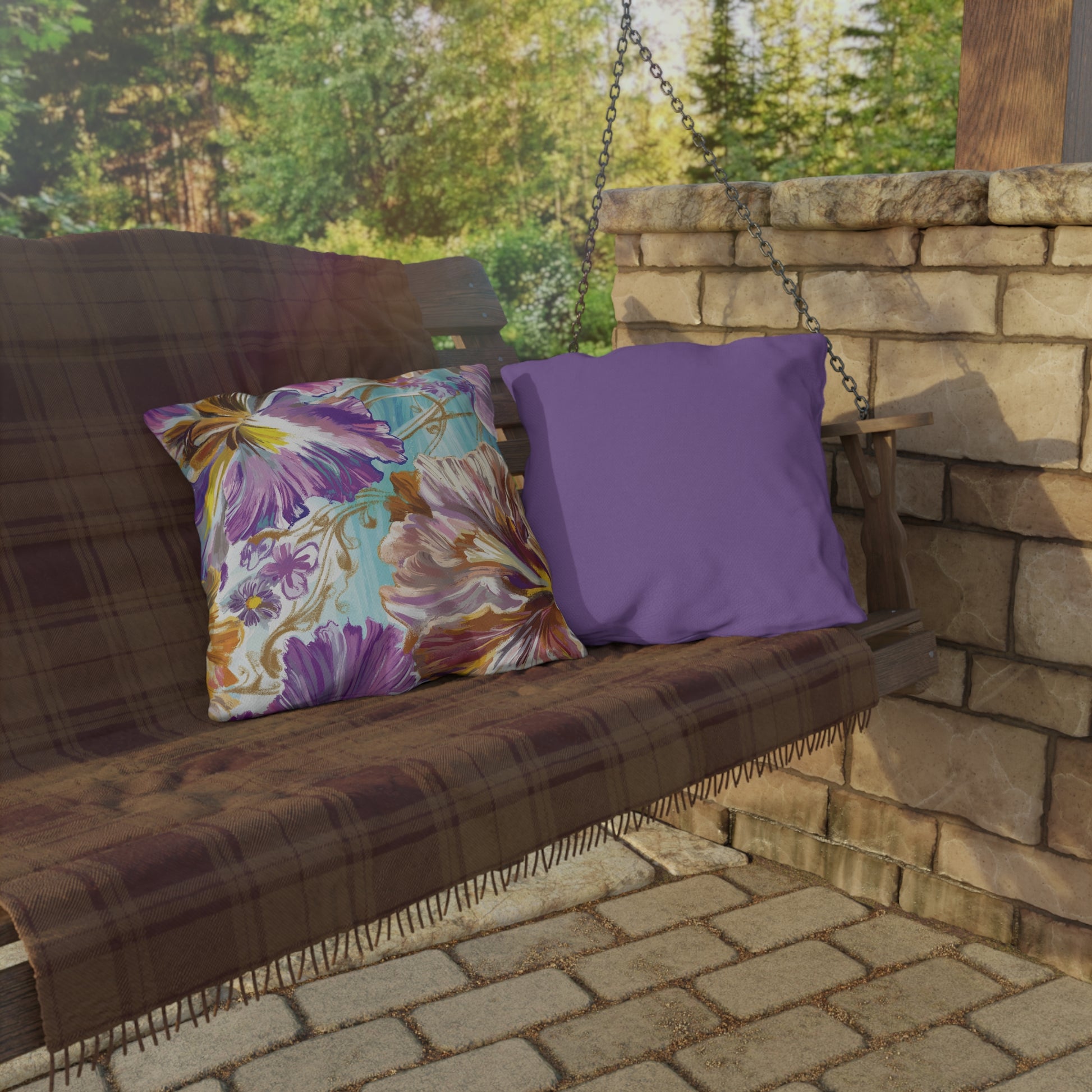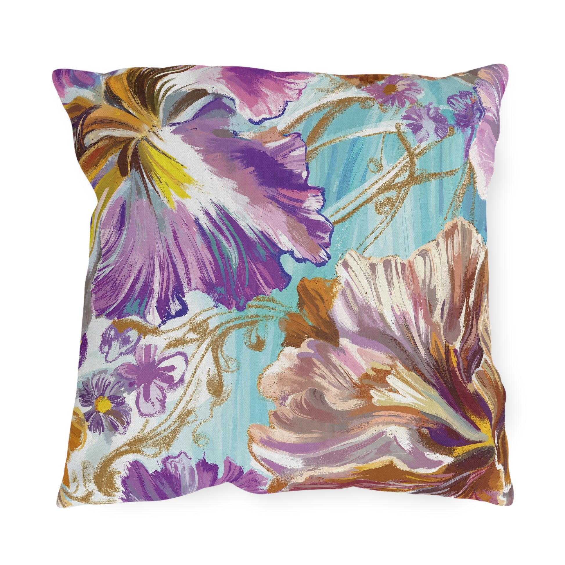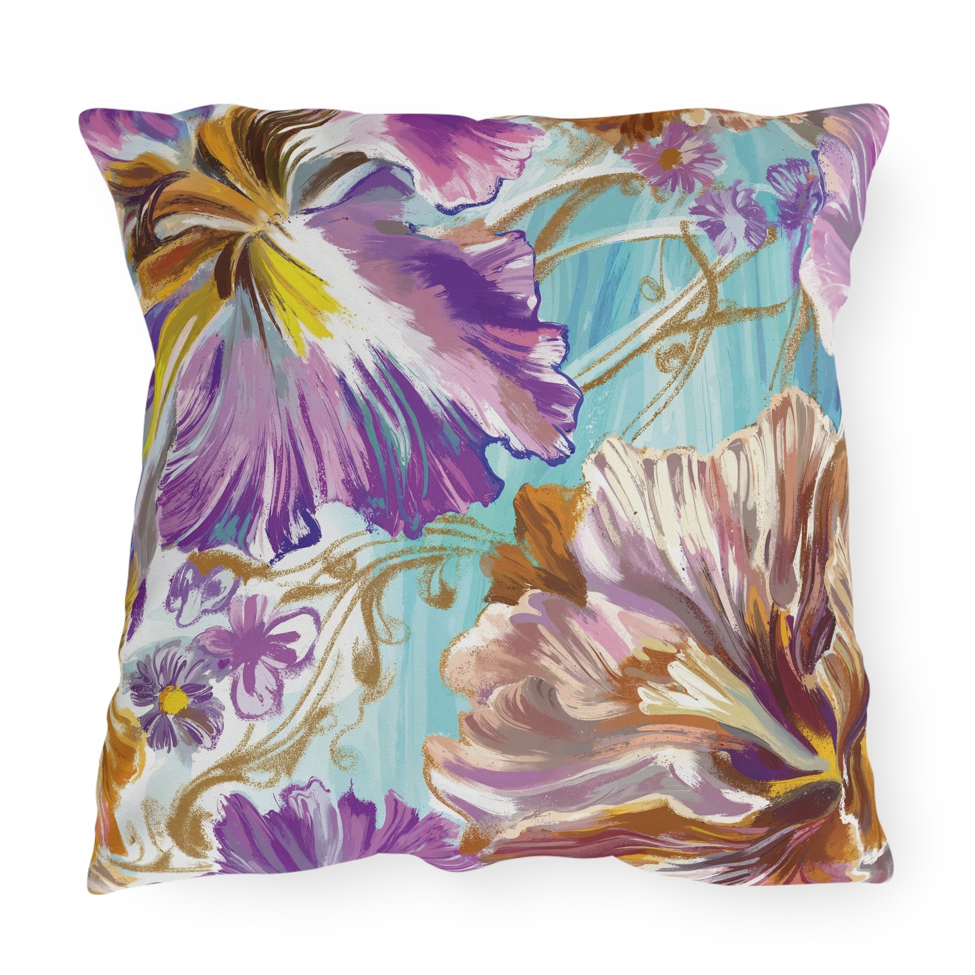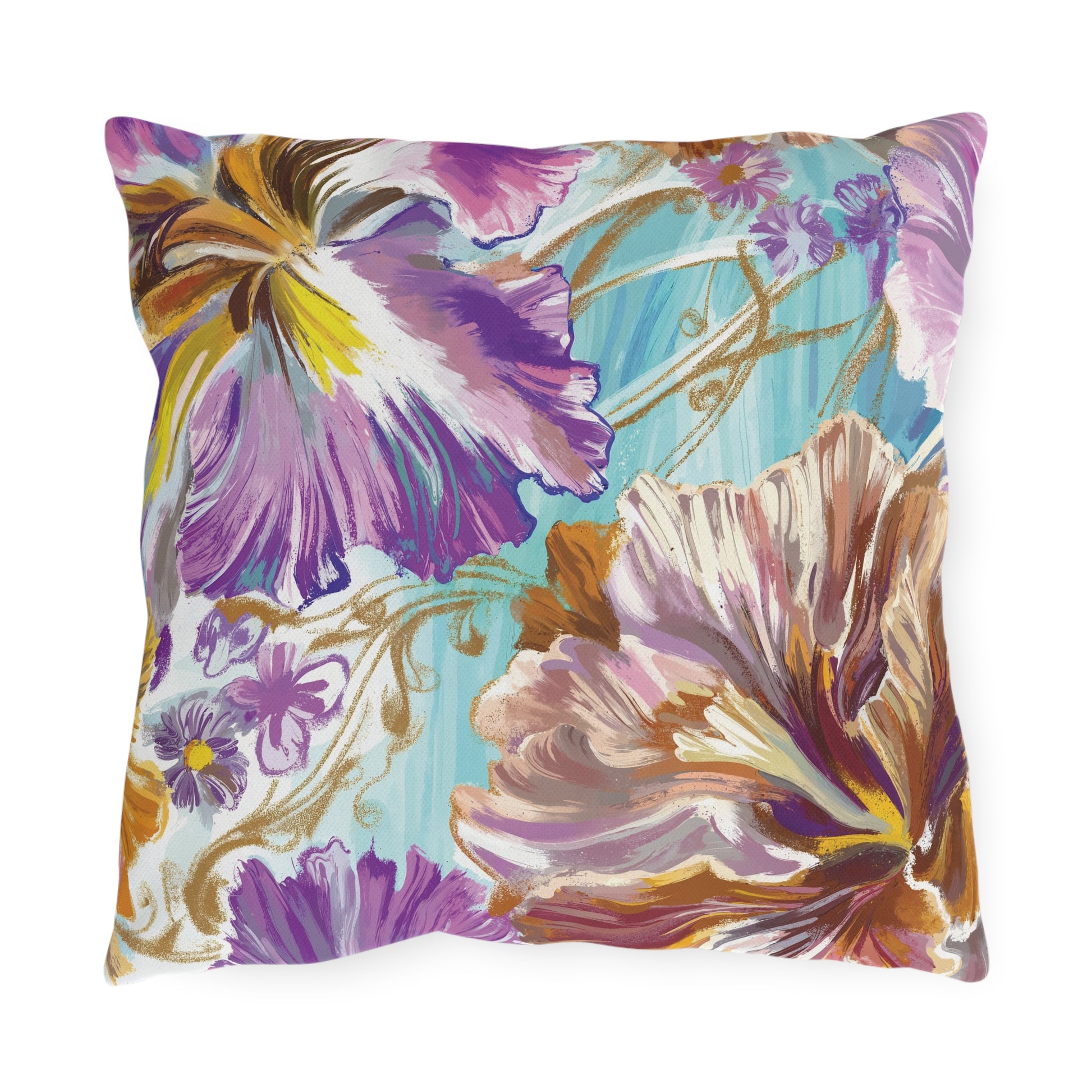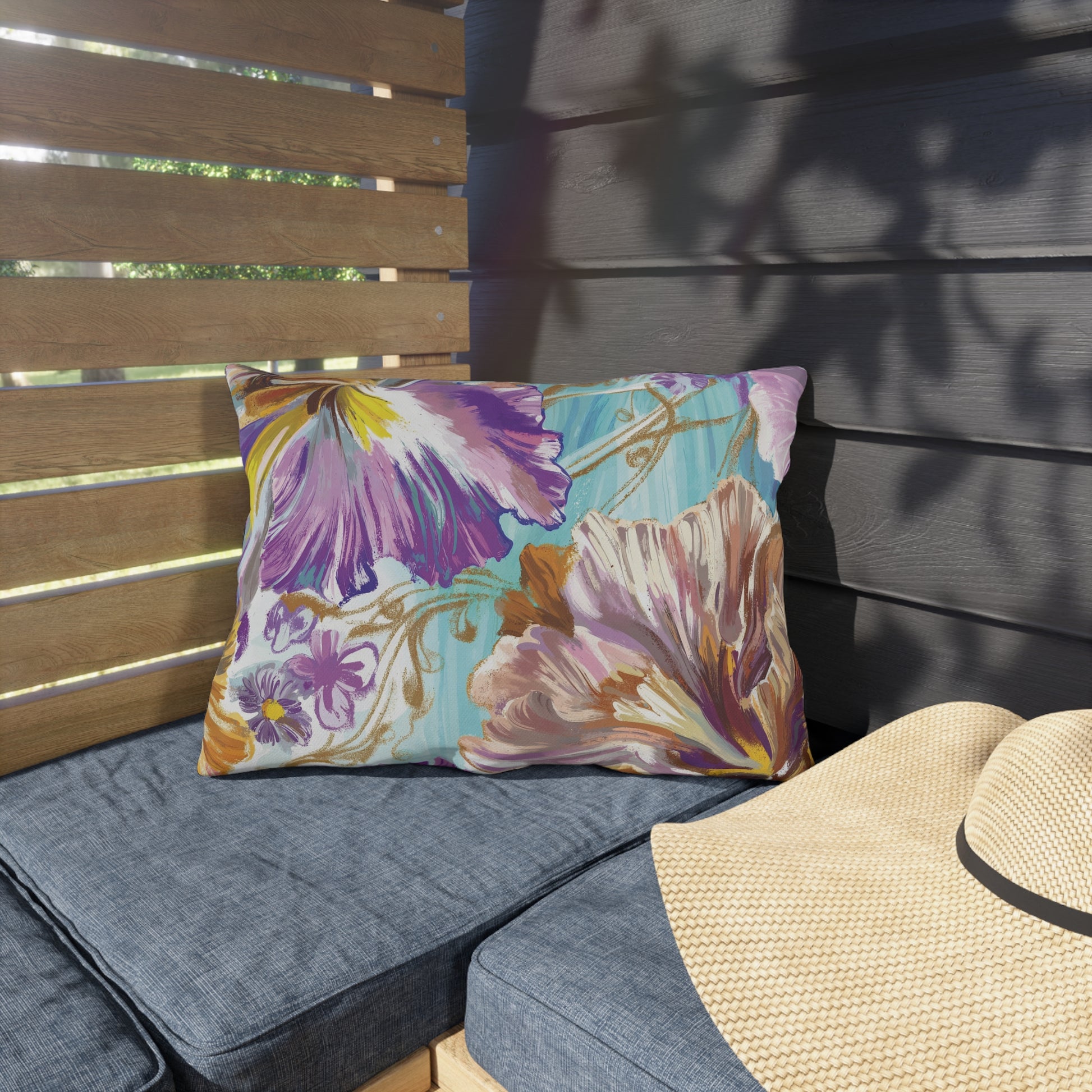 Available in four versatile sizes, "Abstract Irisies" outdoor pillows are designed to complement a variety of seating arrangements and styles, bringing sophisticated charm and vibrant energy to your outdoor living areas.
