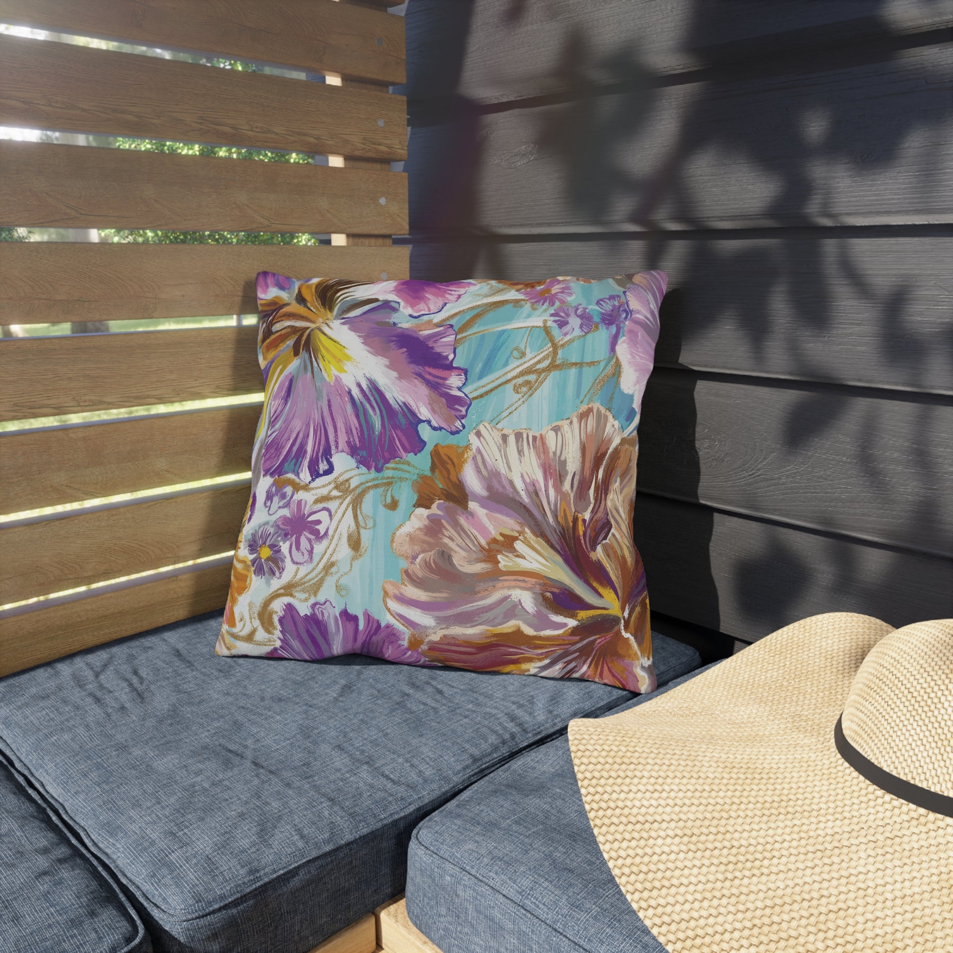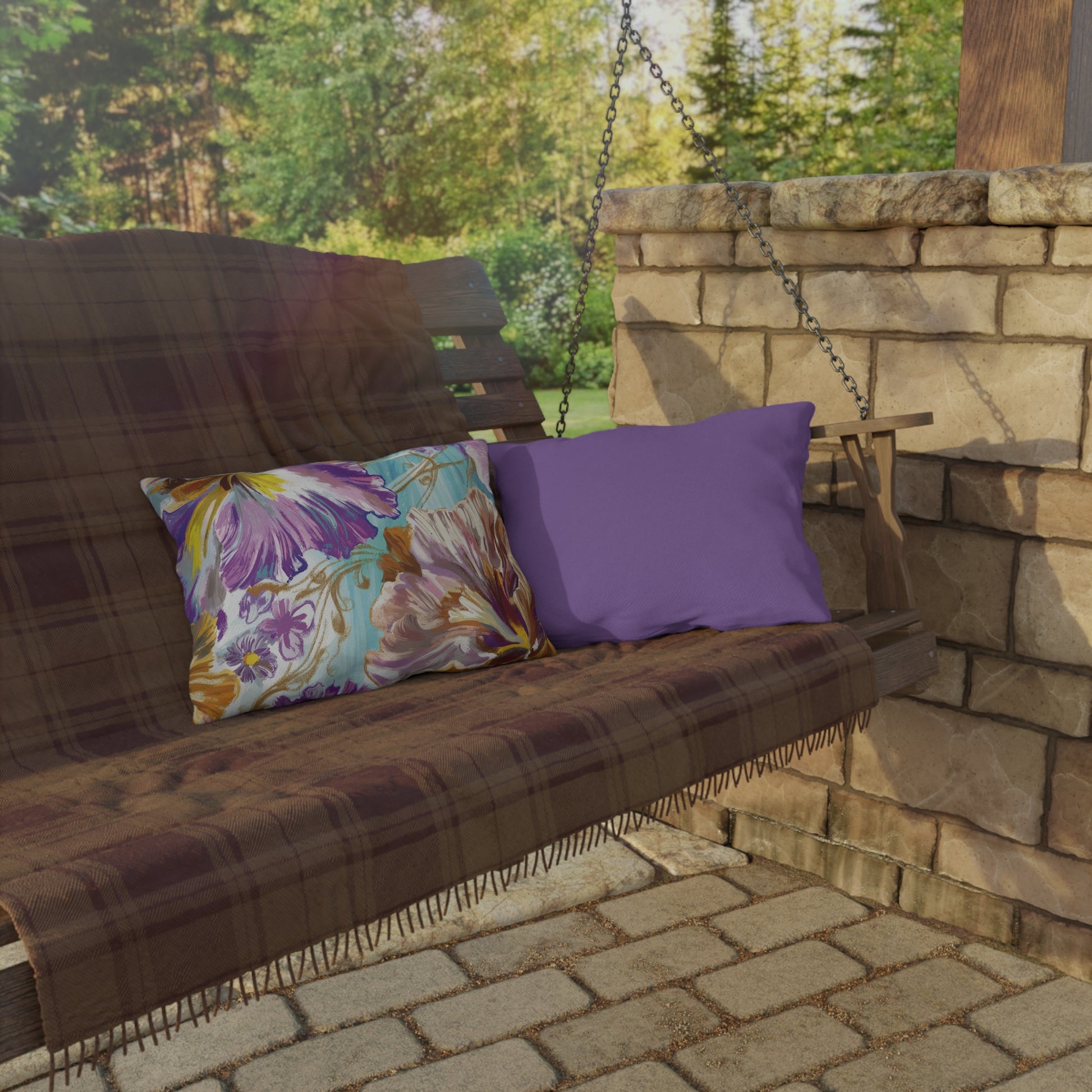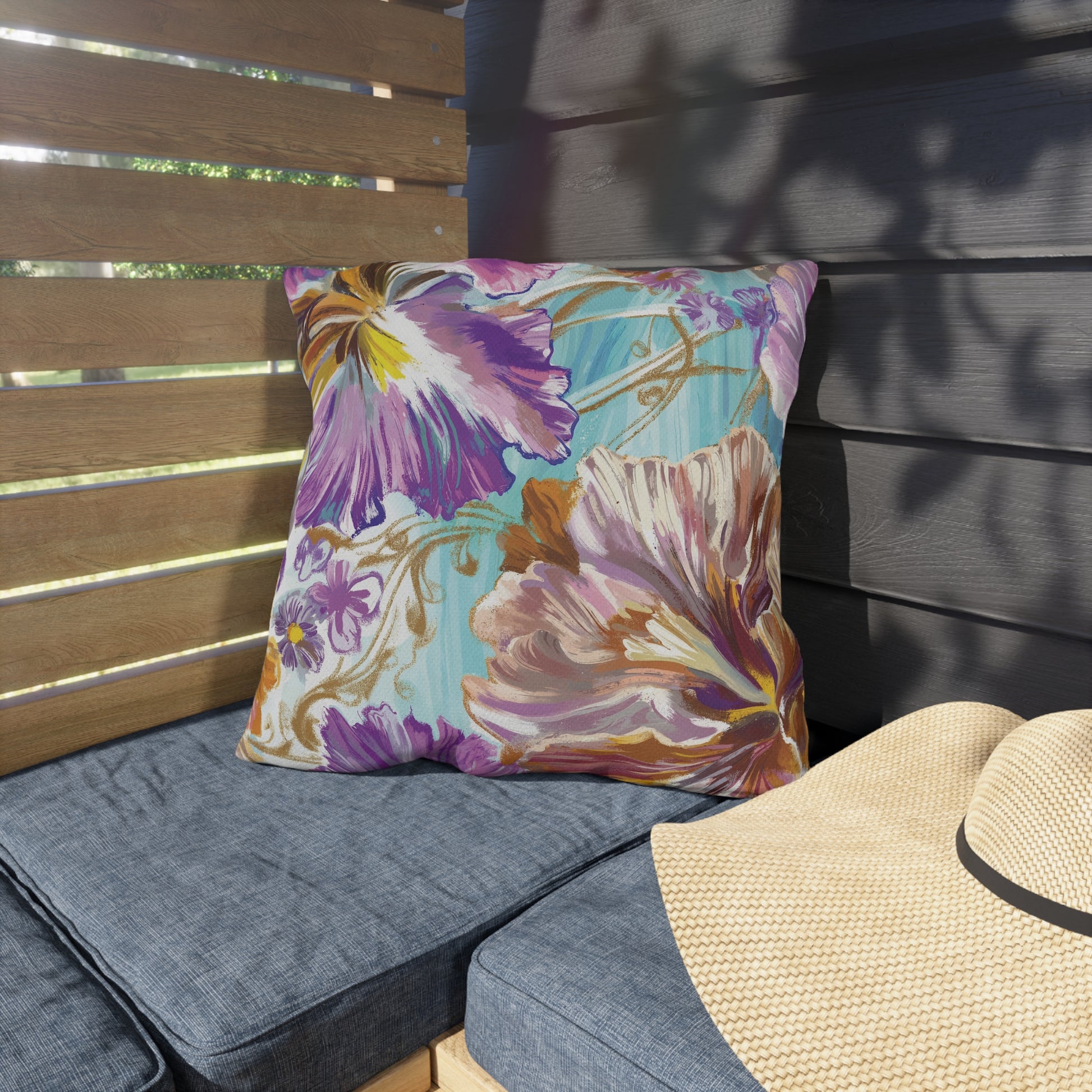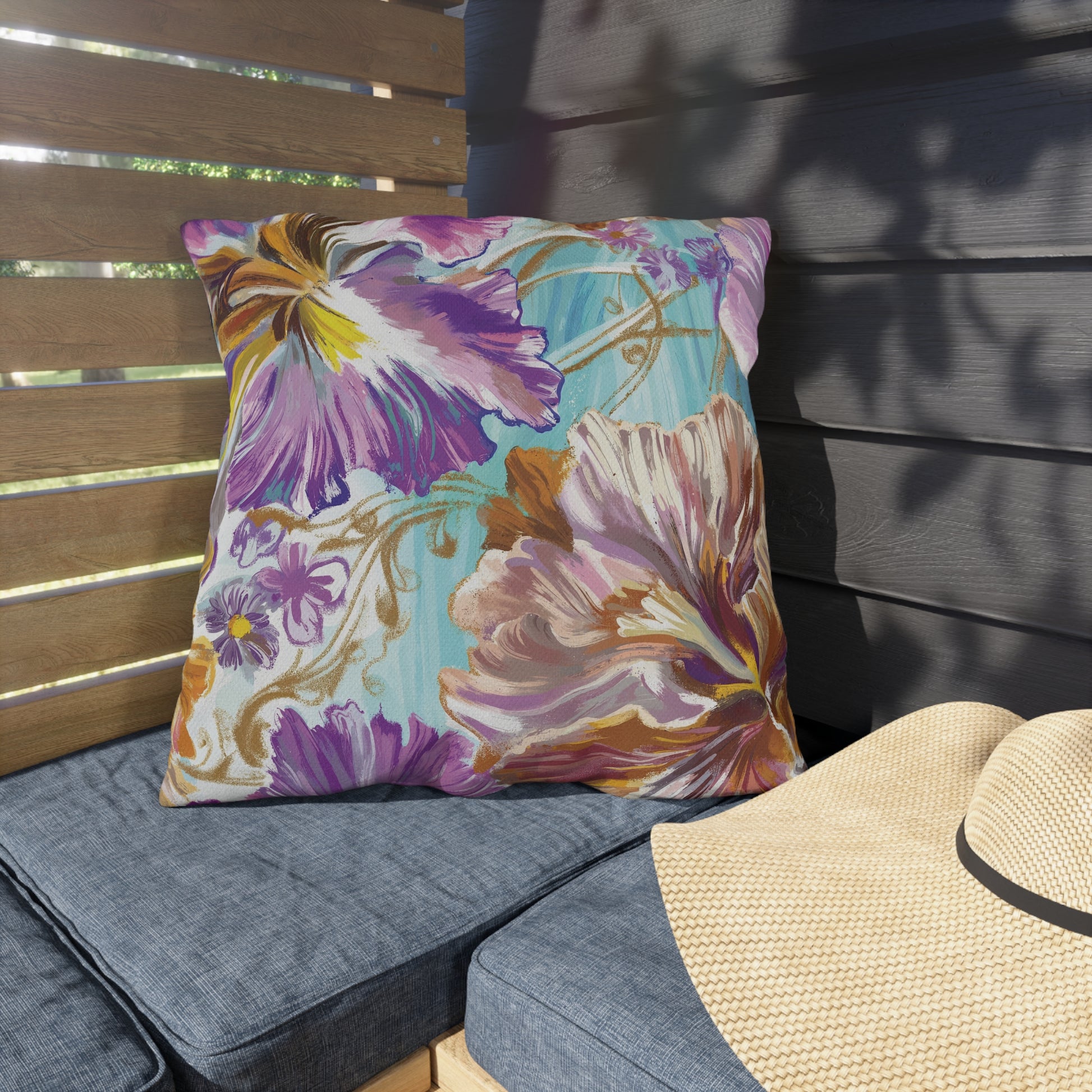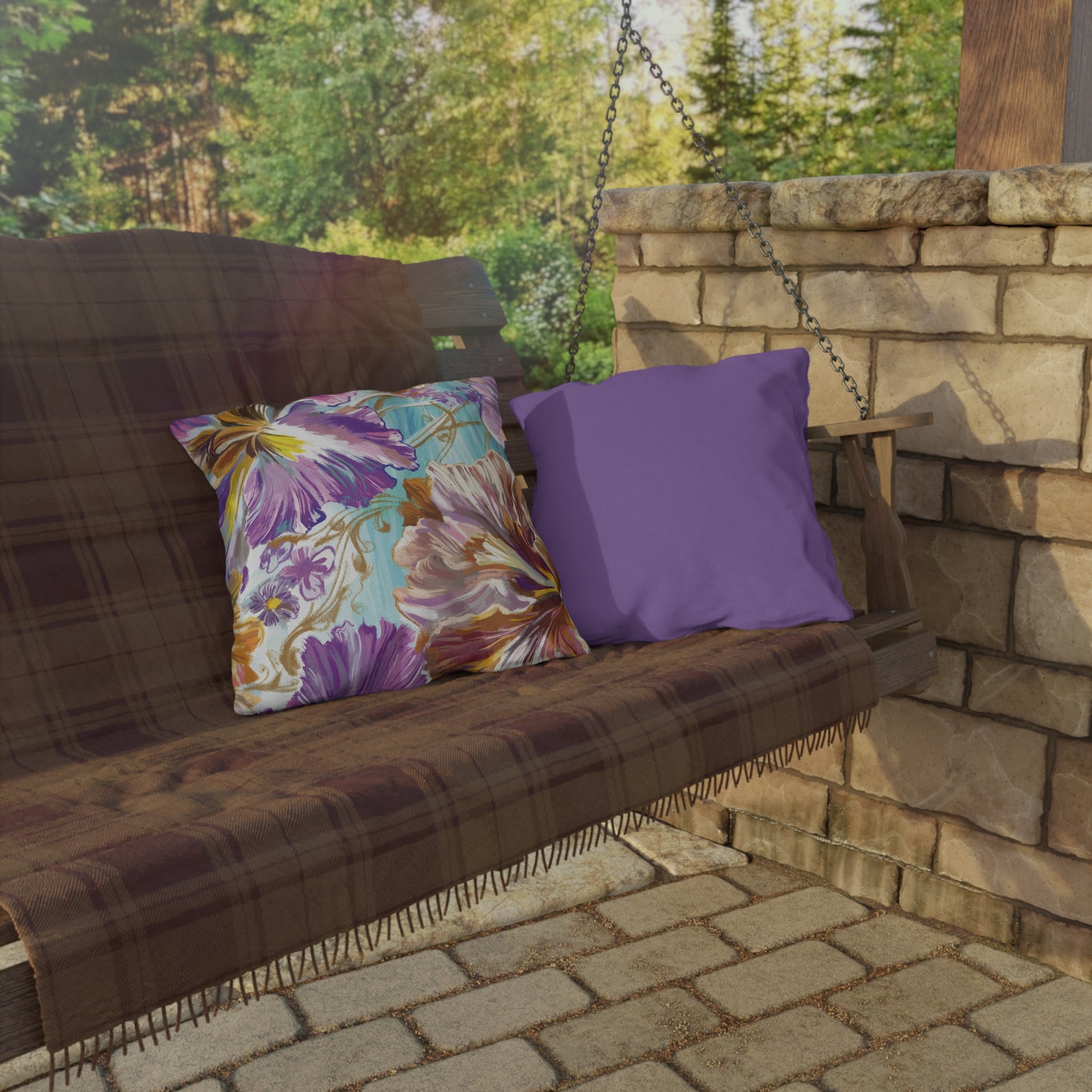 Available in four versatile sizes, "Abstract Irisies" outdoor pillows are designed to complement a variety of seating arrangements and styles, bringing sophisticated charm and vibrant energy to your outdoor living areas.