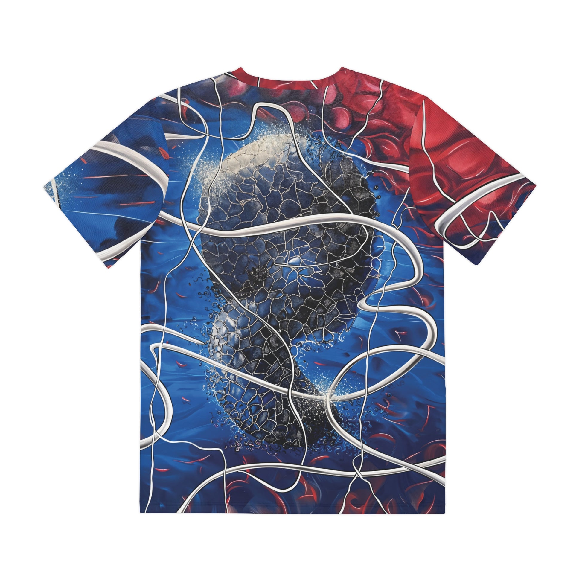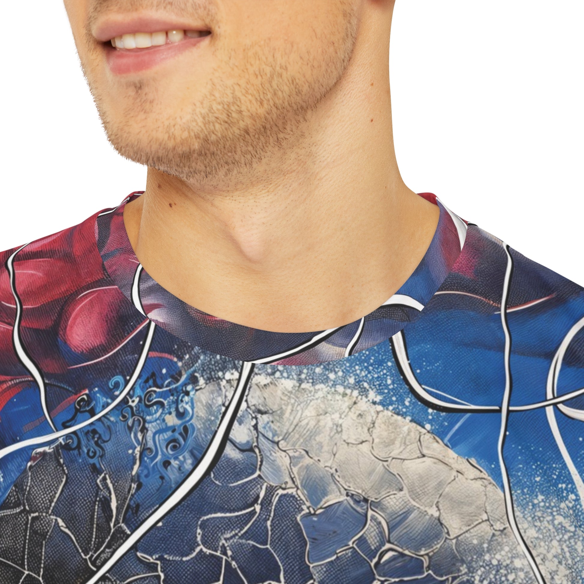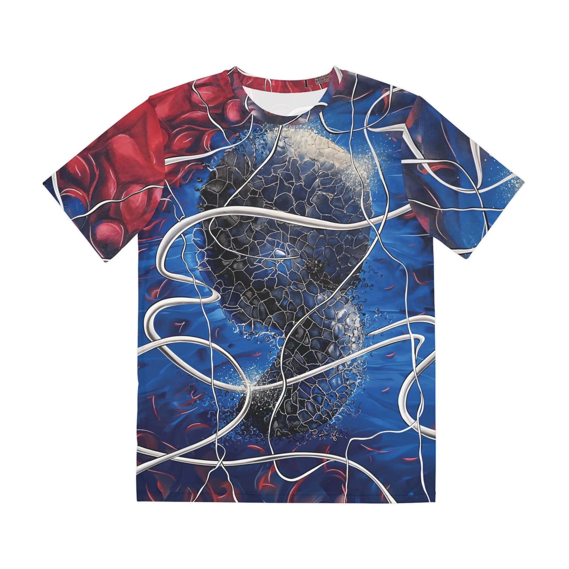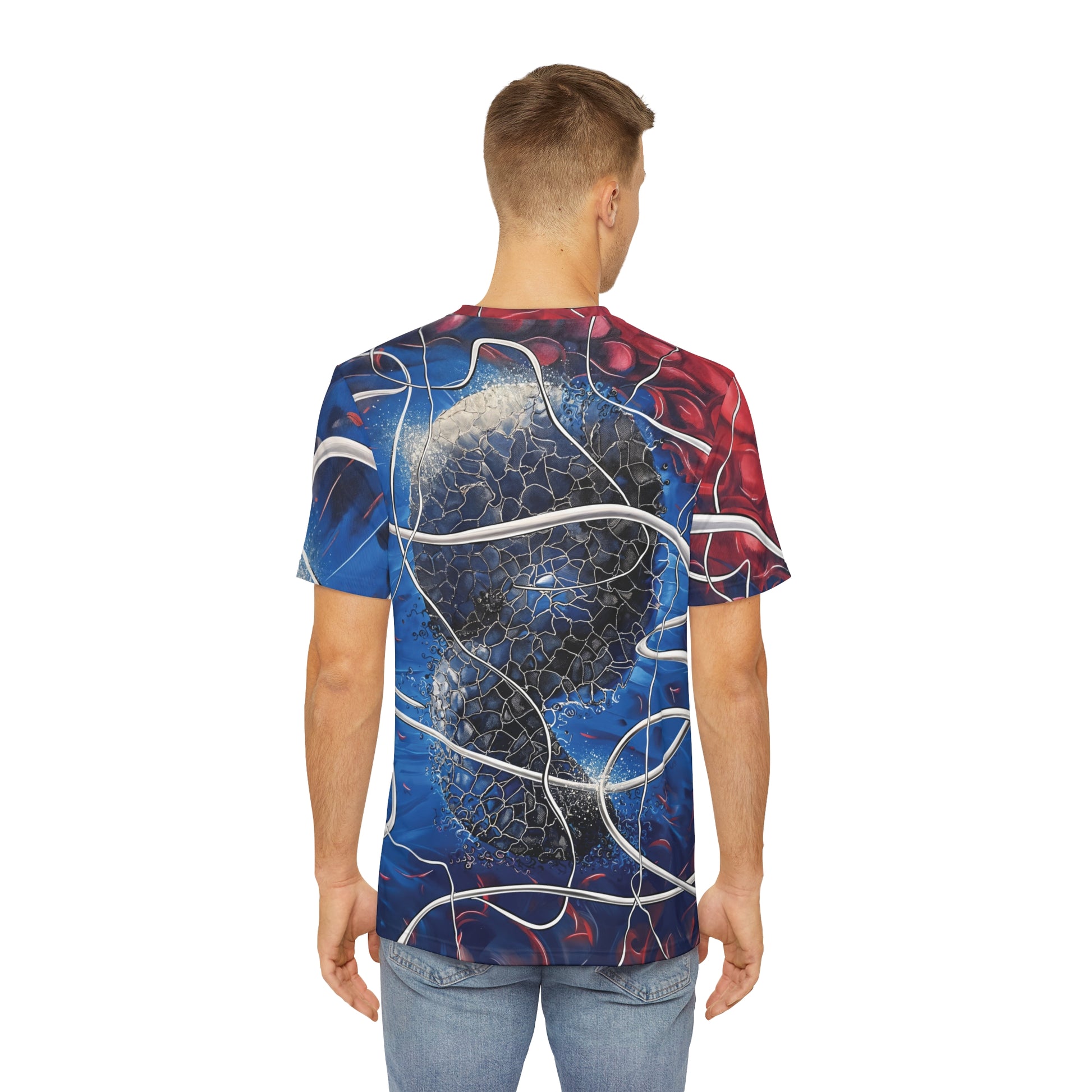 Step into the future with the Cybryo design, now available on a premium all over print t-shirt. This futuristic sci-fi artwork brings a sleek, high-tech aesthetic to your wardrobe, with its mesmerizing patterns and electrifying colors decorating both the front and back of the shirt.