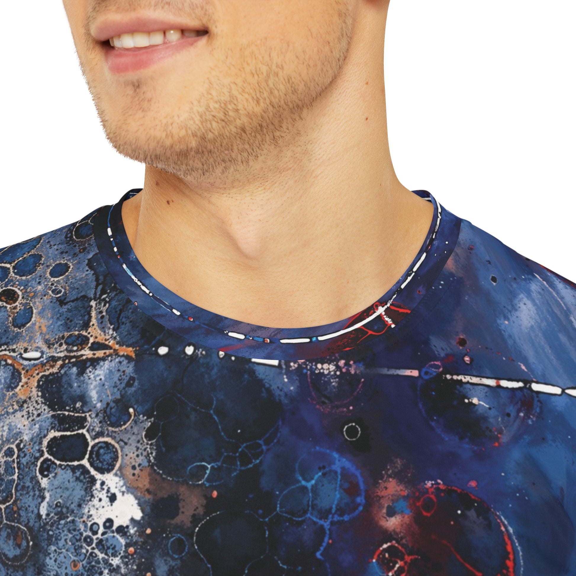 Bring a sense of intrigue and artistic flair to your wardrobe with the Is That You design. This abstract modern artwork captivates with its mesmerizing interplay of bold shapes and rich colors, creating a visual feast that adds depth and sophistication to your look. The design wraps seamlessly across both the front and back, making this t-shirt a true wearable masterpiece.