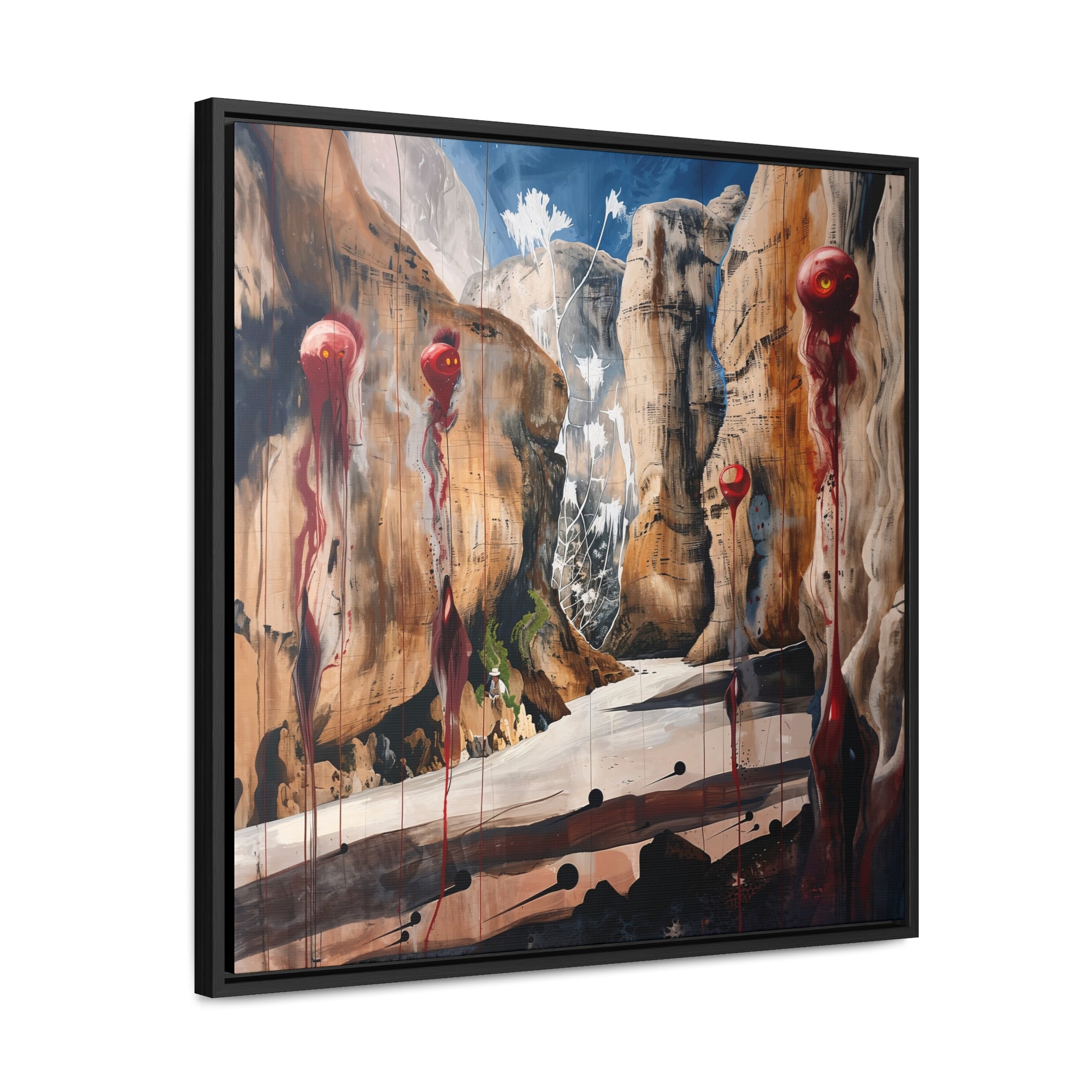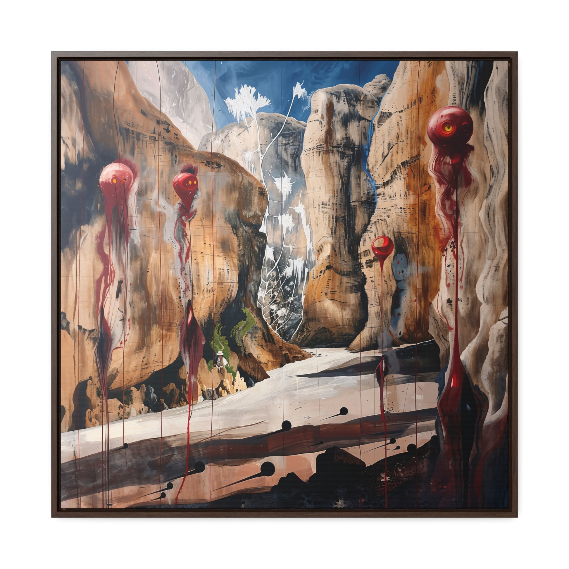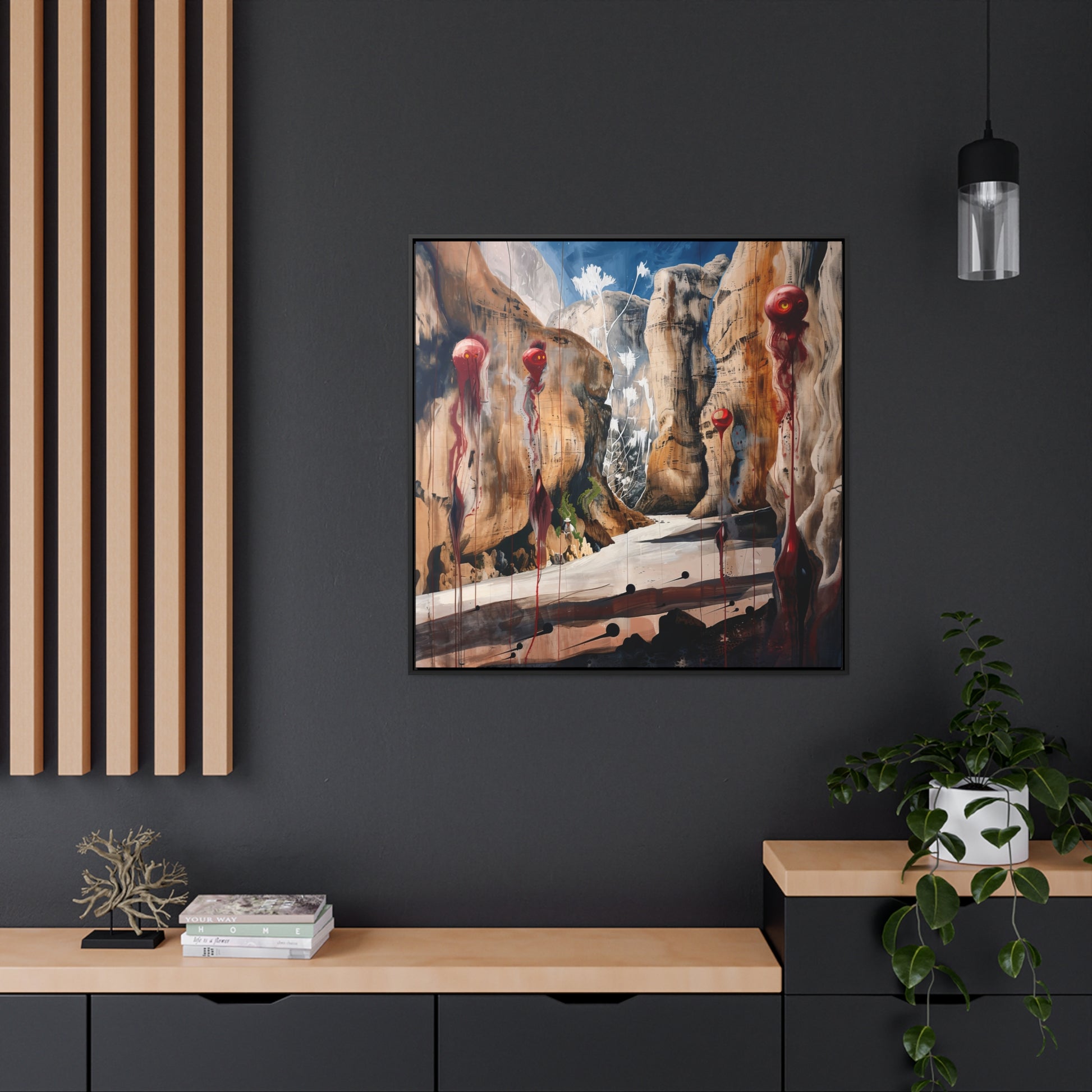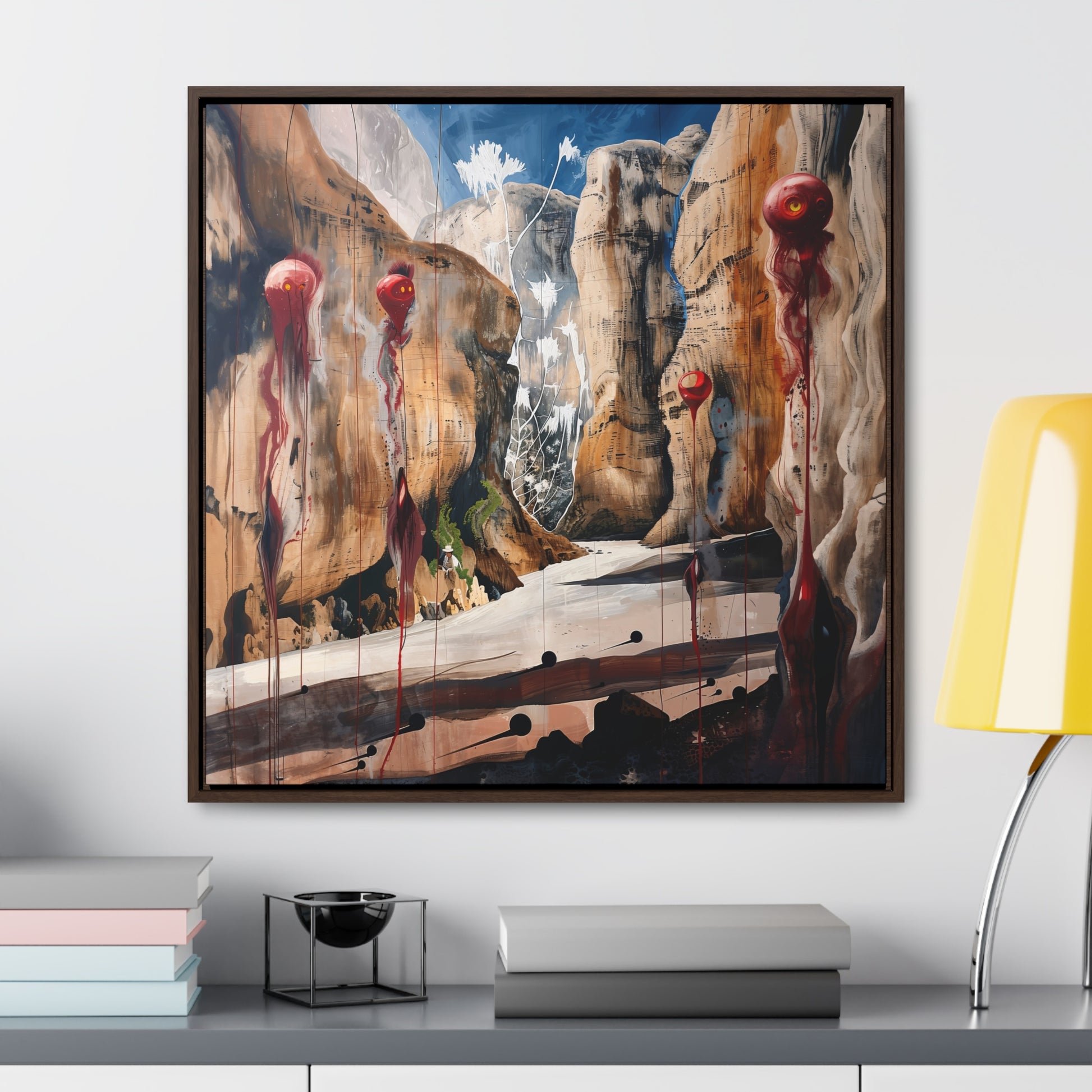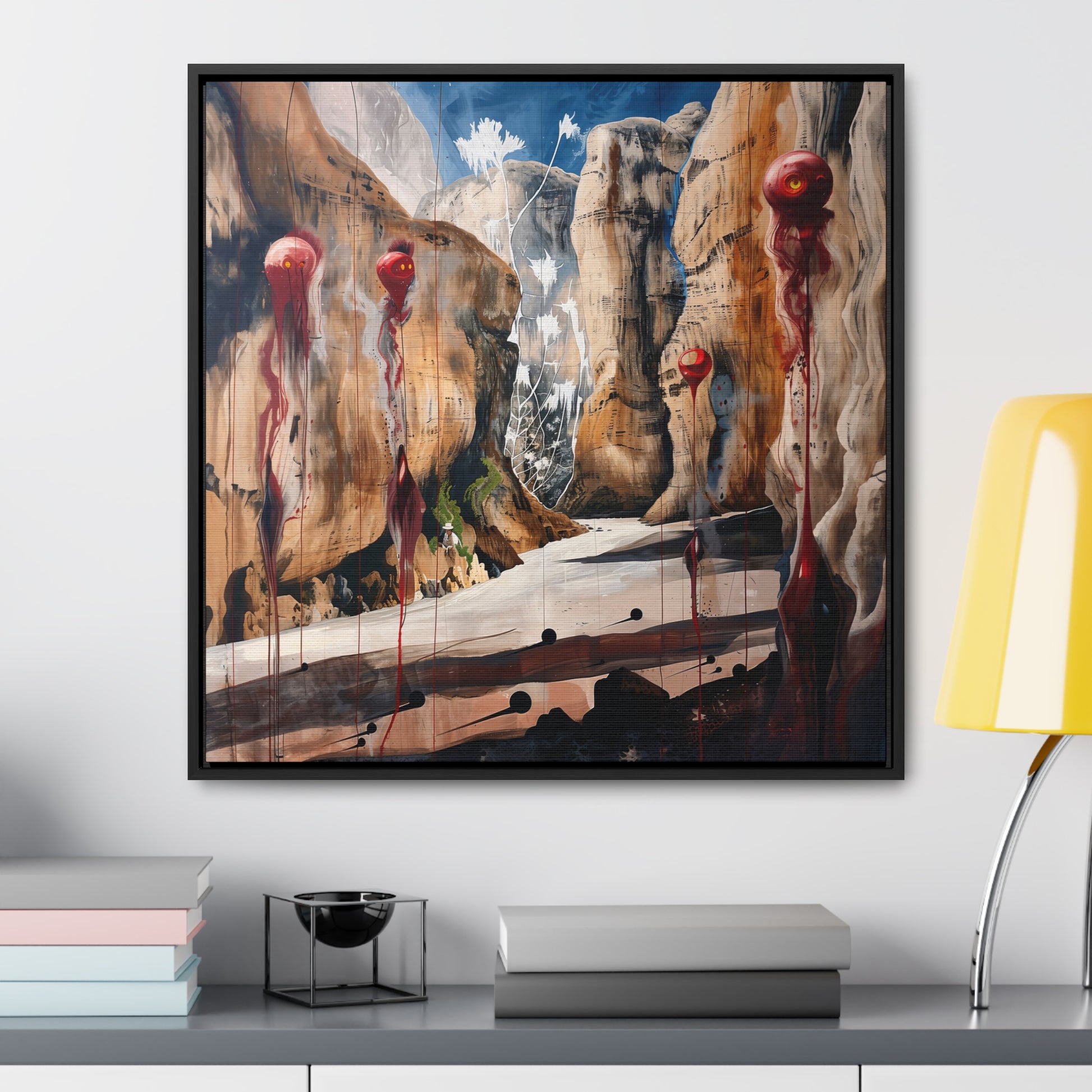 Immerse yourself in the enigmatic world of "I Hadn't Seen That Before," a mesmerizing piece from the Tom Canyon collection. This artwork captures the surreal beauty of a canyon landscape intertwined with mysterious red objects, creating a scene that is both captivating and otherworldly. The vivid colors and intricate details make this piece a standout addition to any modern art collection.