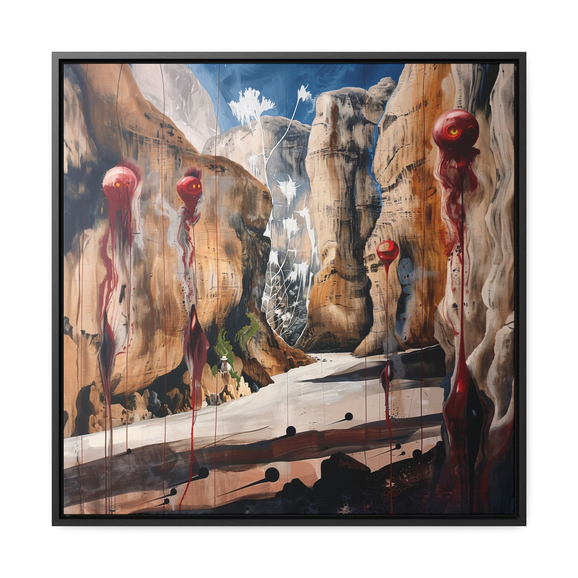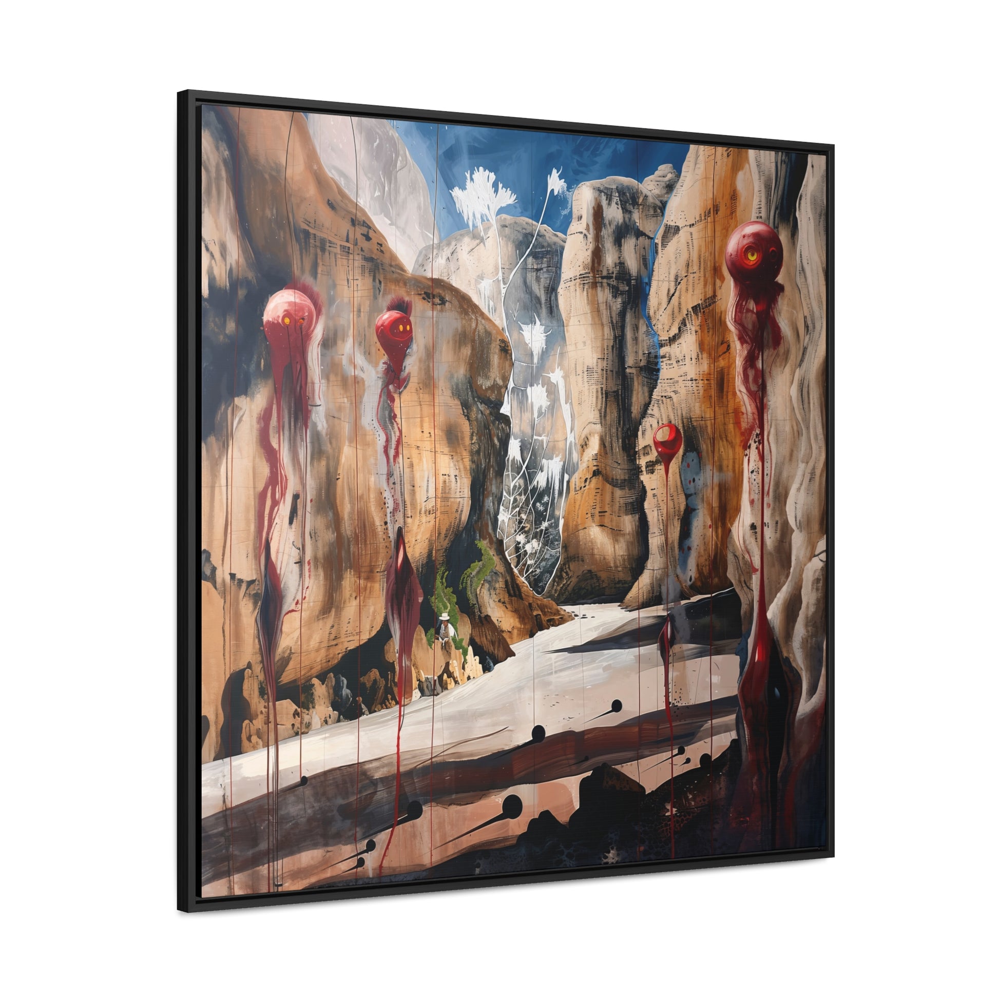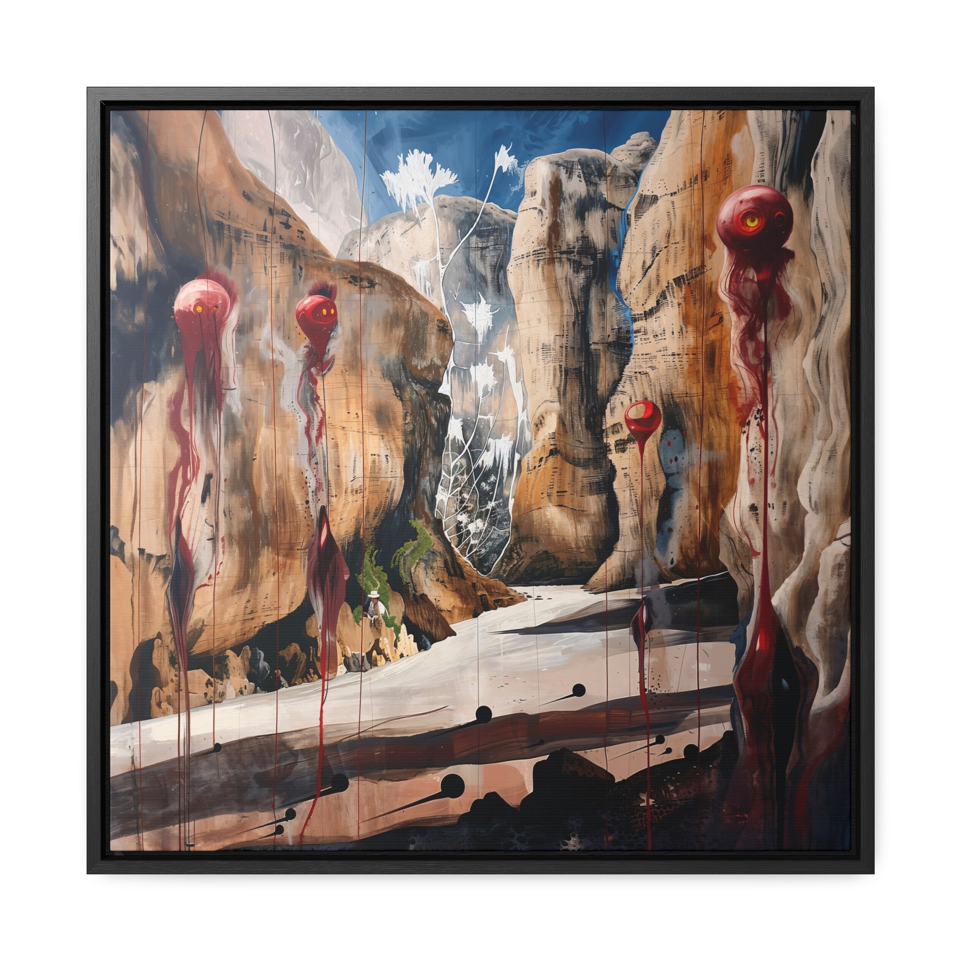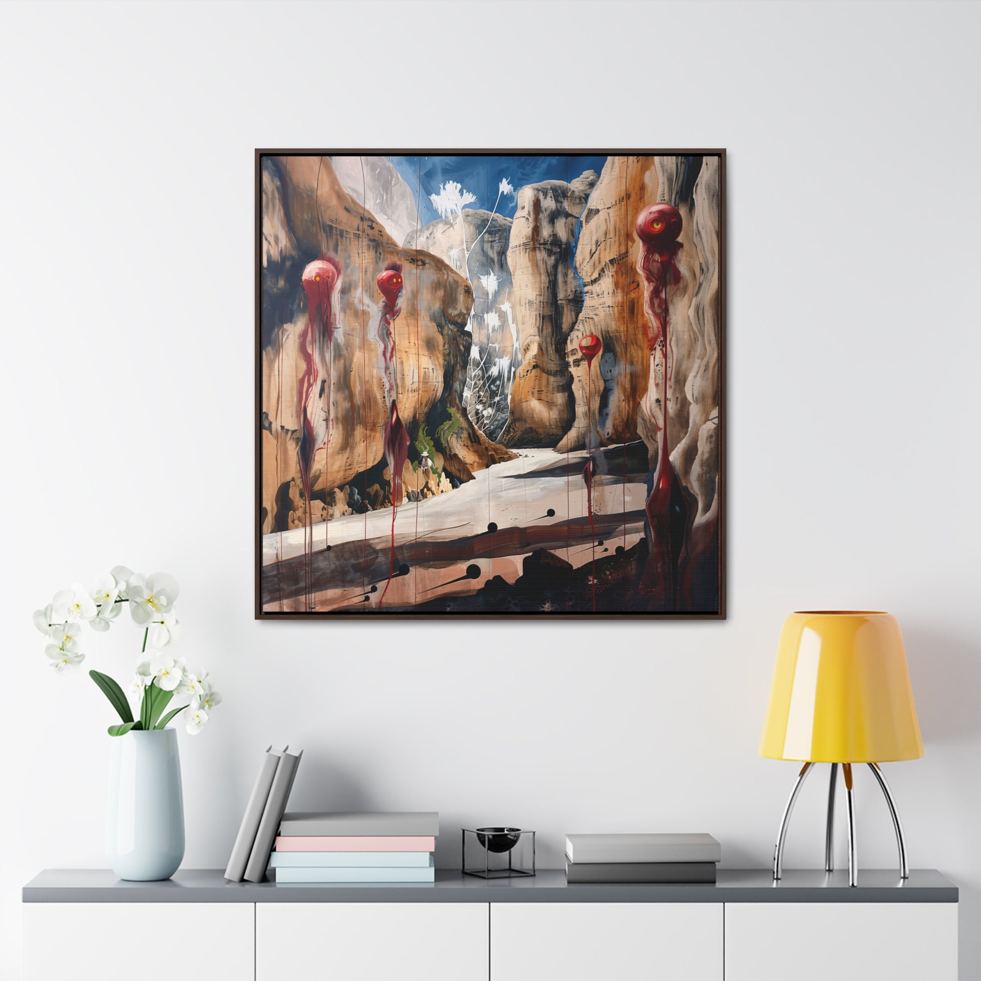 Immerse yourself in the enigmatic world of "I Hadn't Seen That Before," a mesmerizing piece from the Tom Canyon collection. This artwork captures the surreal beauty of a canyon landscape intertwined with mysterious red objects, creating a scene that is both captivating and otherworldly. The vivid colors and intricate details make this piece a standout addition to any modern art collection.