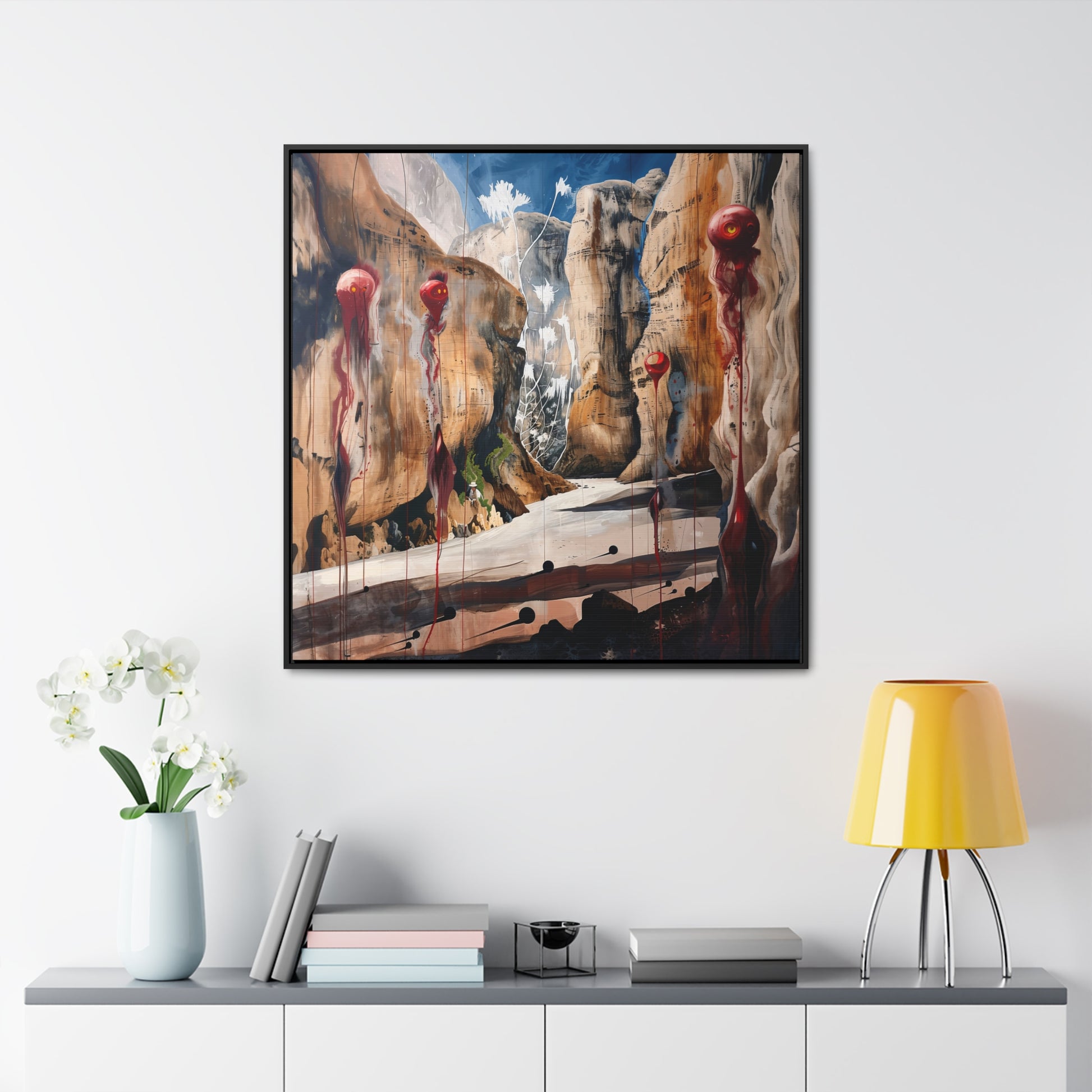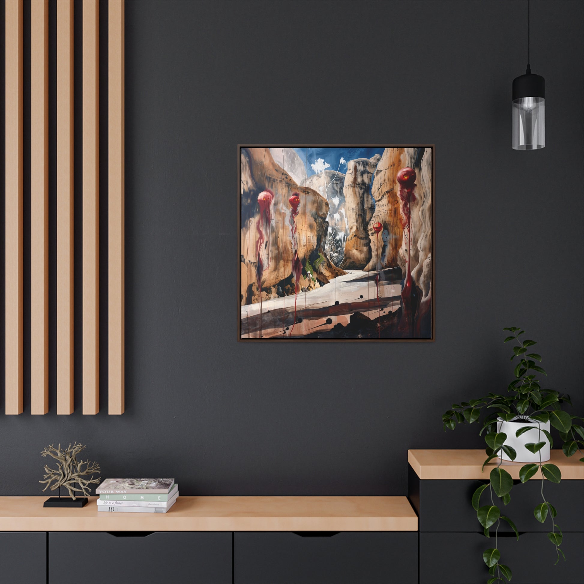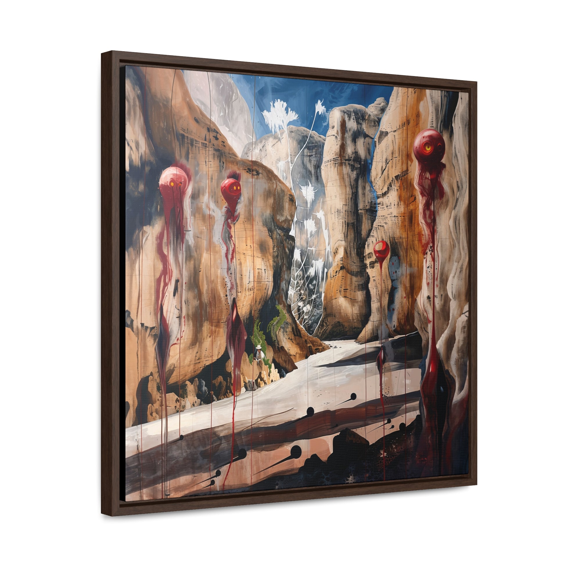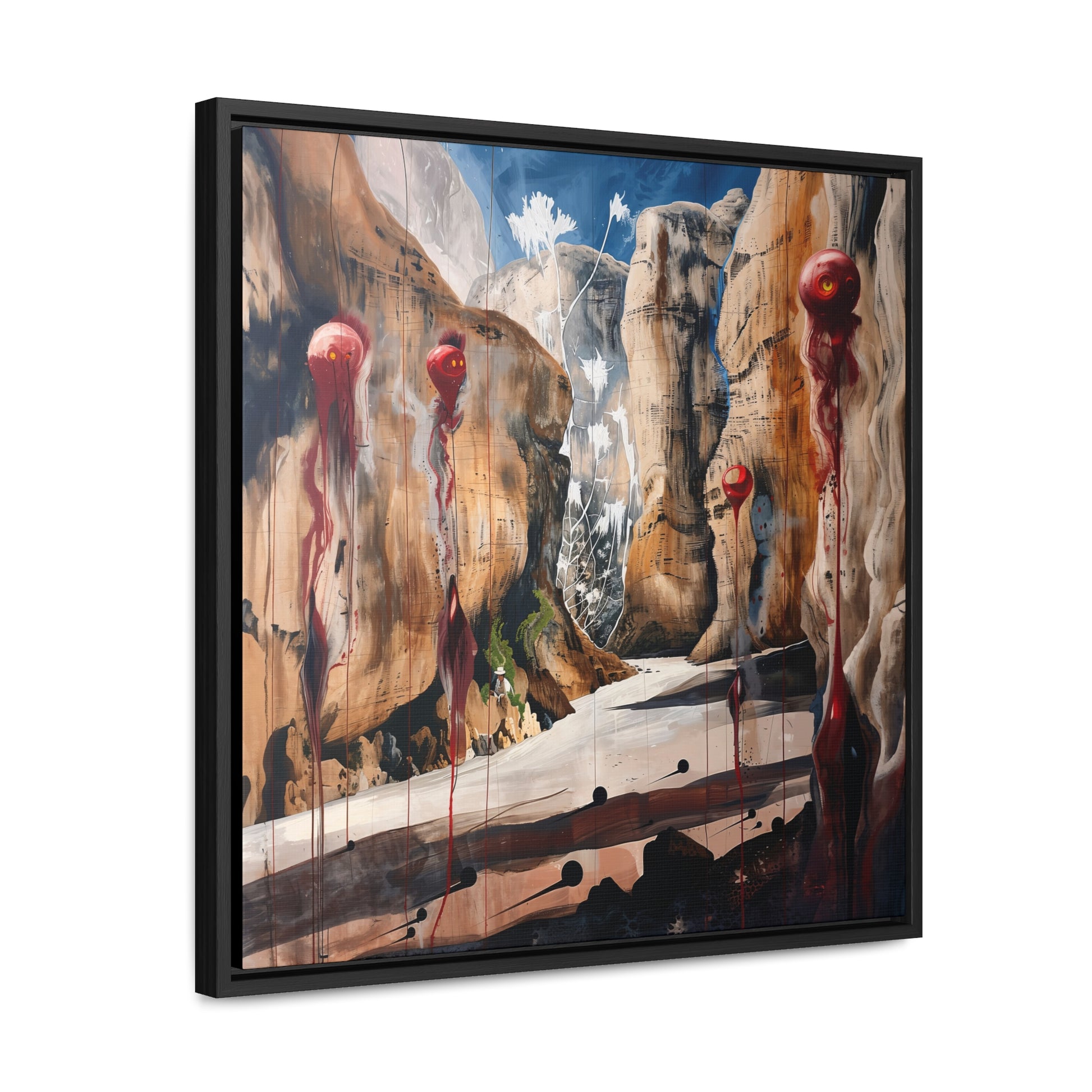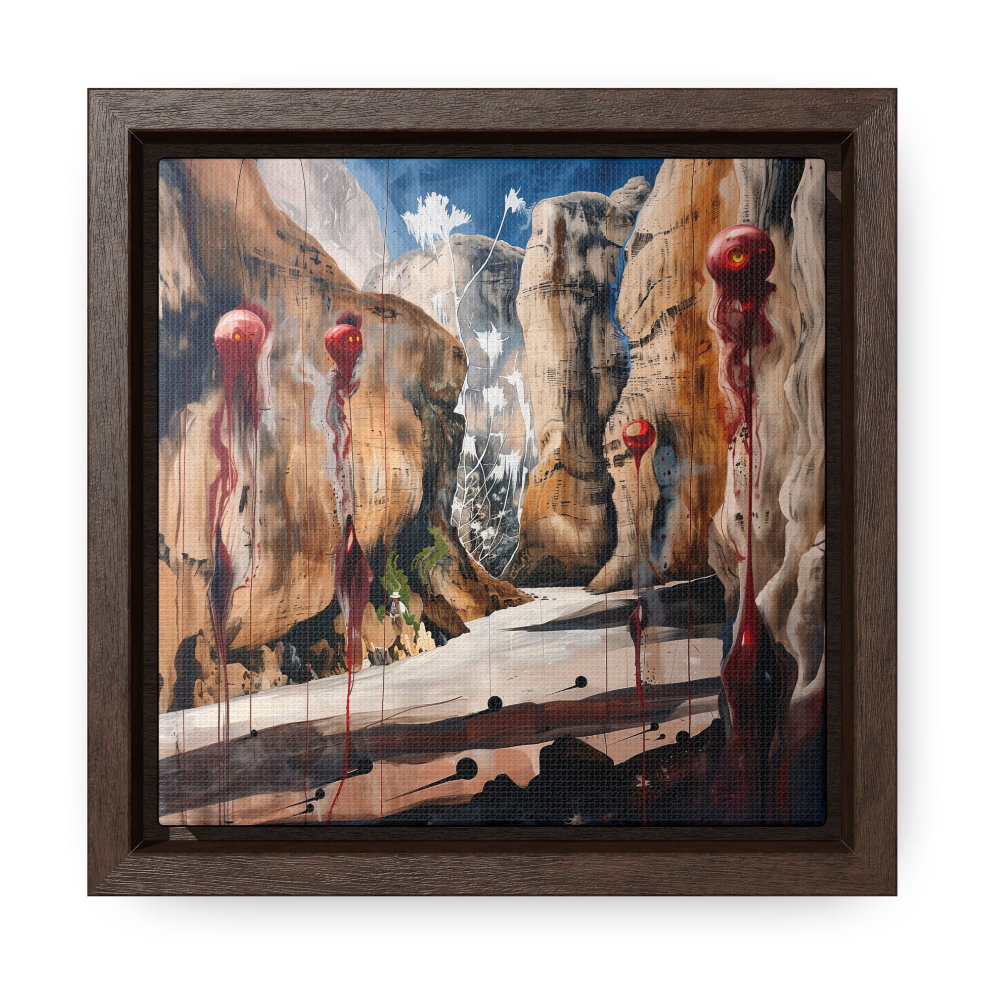 Immerse yourself in the enigmatic world of "I Hadn't Seen That Before," a mesmerizing piece from the Tom Canyon collection. This artwork captures the surreal beauty of a canyon landscape intertwined with mysterious red objects, creating a scene that is both captivating and otherworldly. The vivid colors and intricate details make this piece a standout addition to any modern art collection.