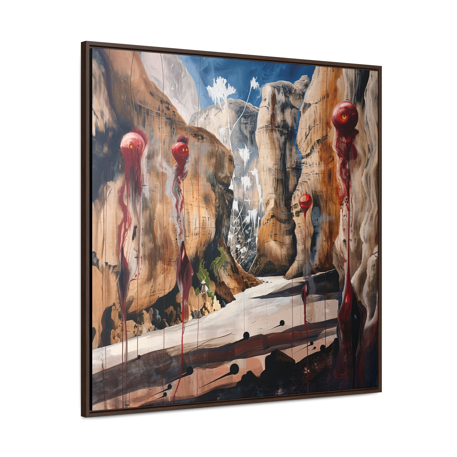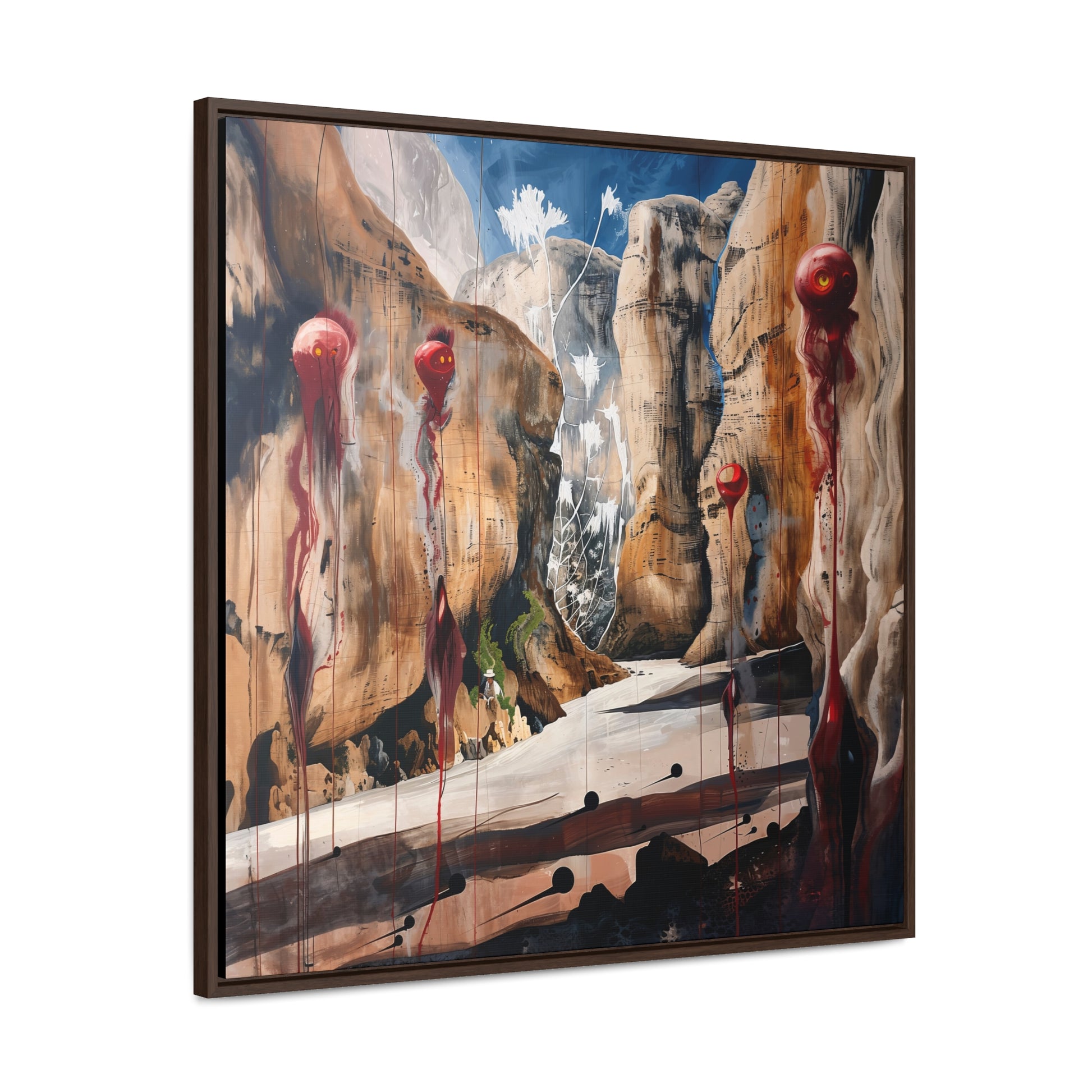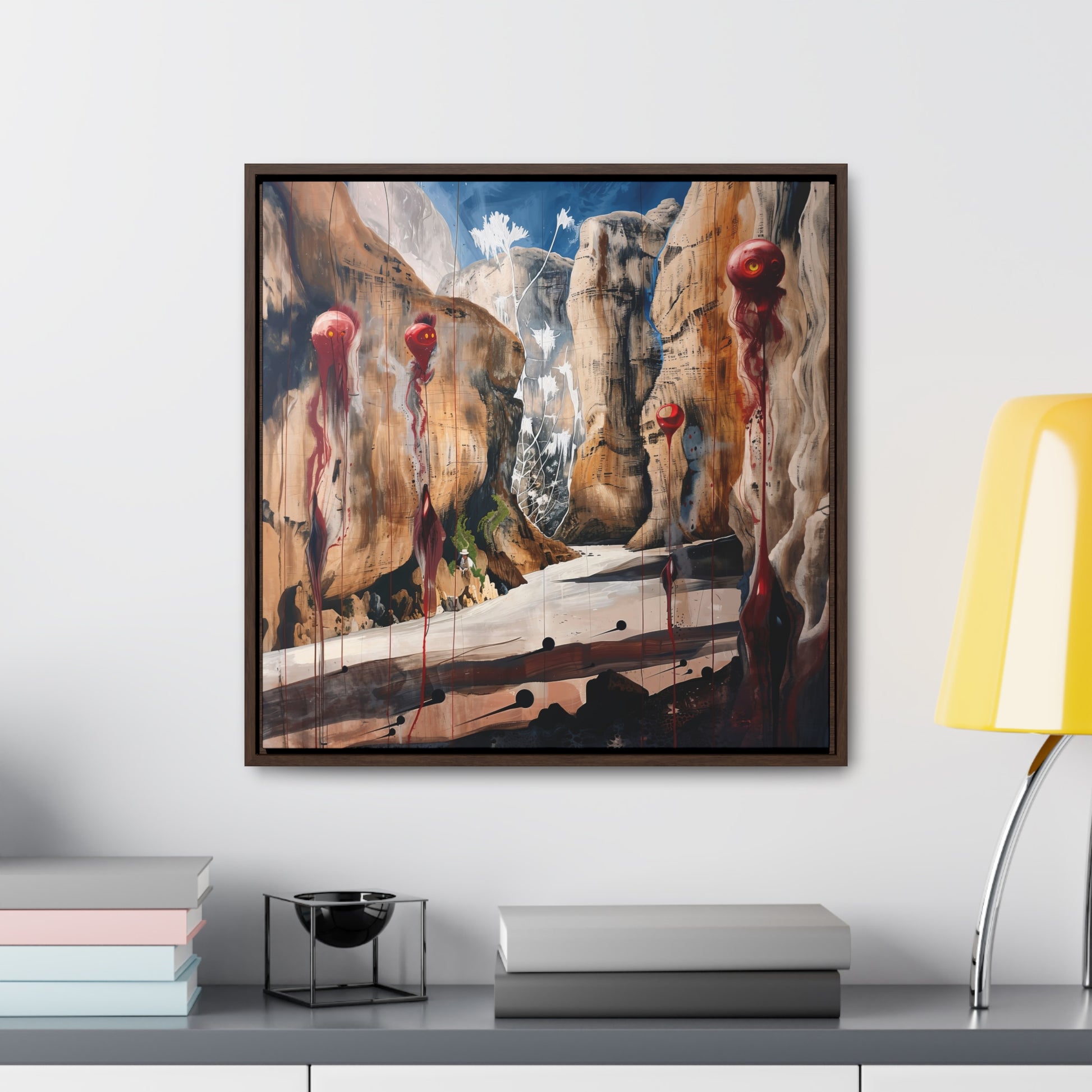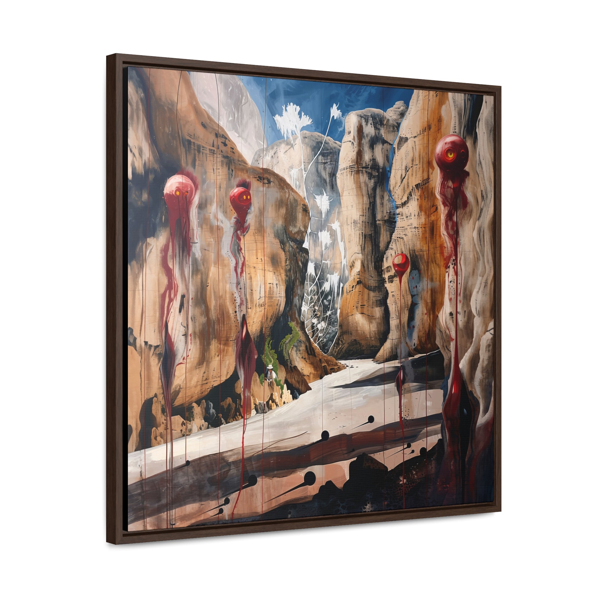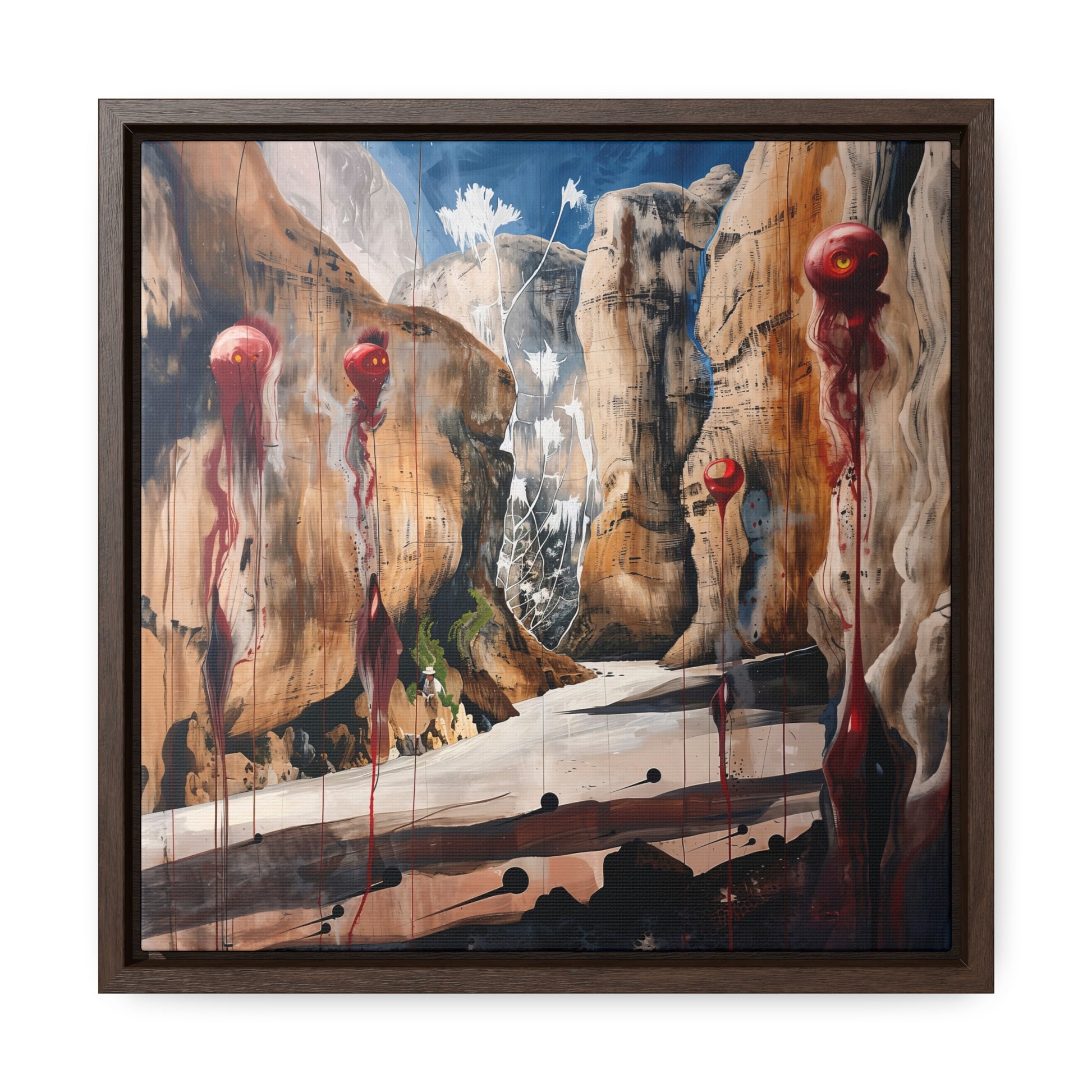 Immerse yourself in the enigmatic world of "I Hadn't Seen That Before," a mesmerizing piece from the Tom Canyon collection. This artwork captures the surreal beauty of a canyon landscape intertwined with mysterious red objects, creating a scene that is both captivating and otherworldly. The vivid colors and intricate details make this piece a standout addition to any modern art collection.