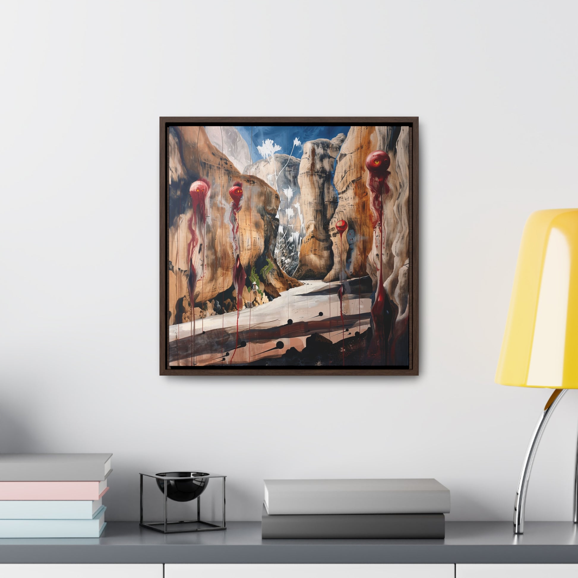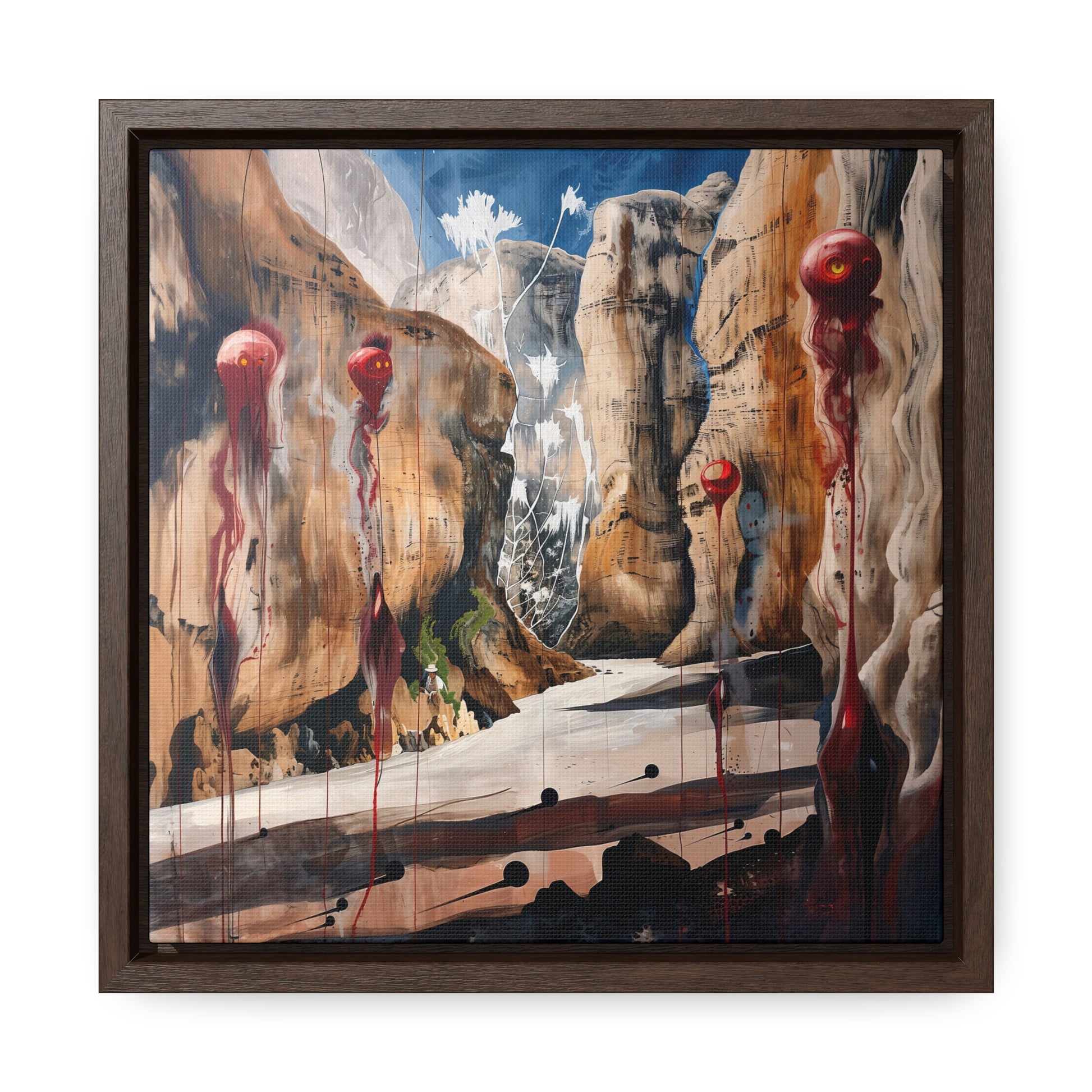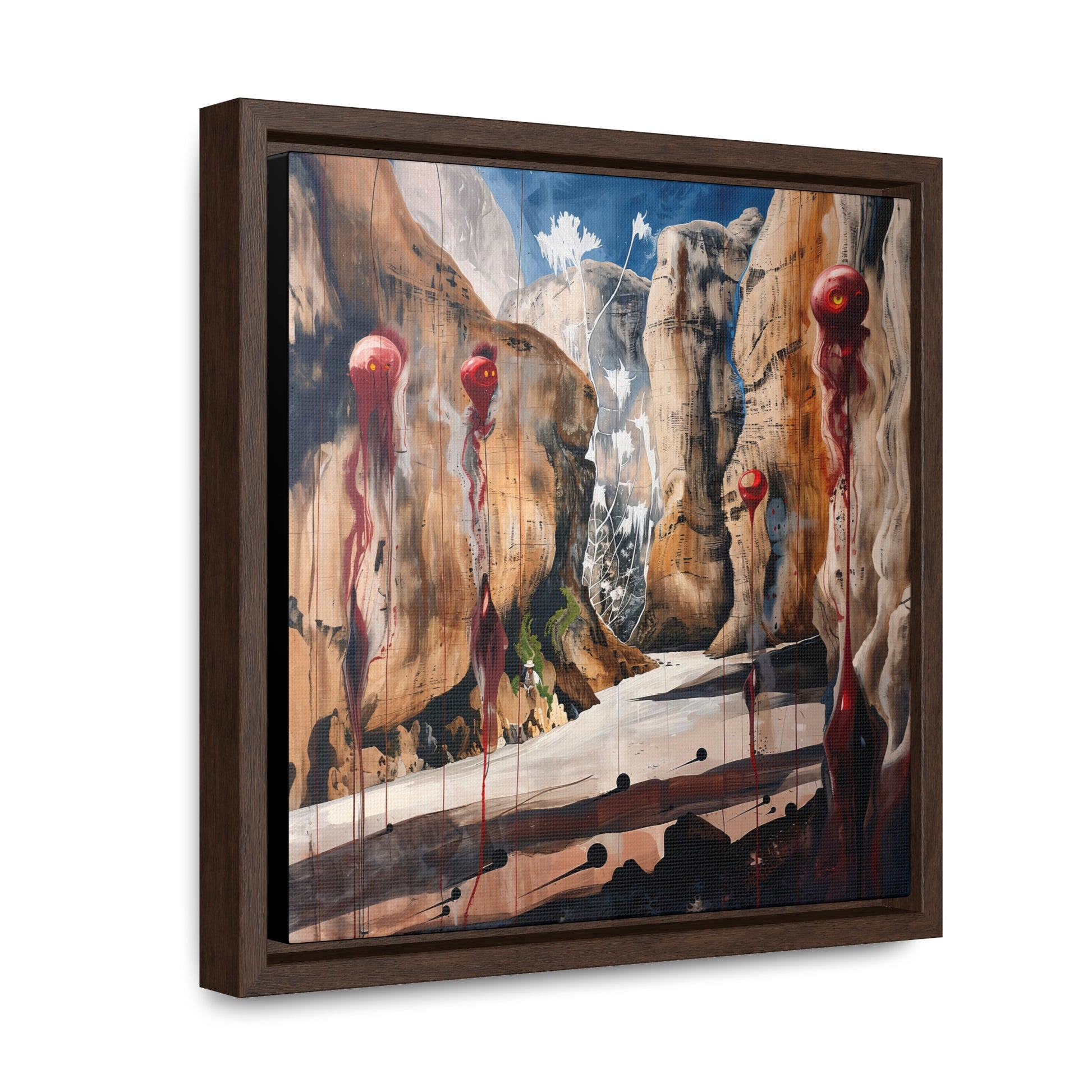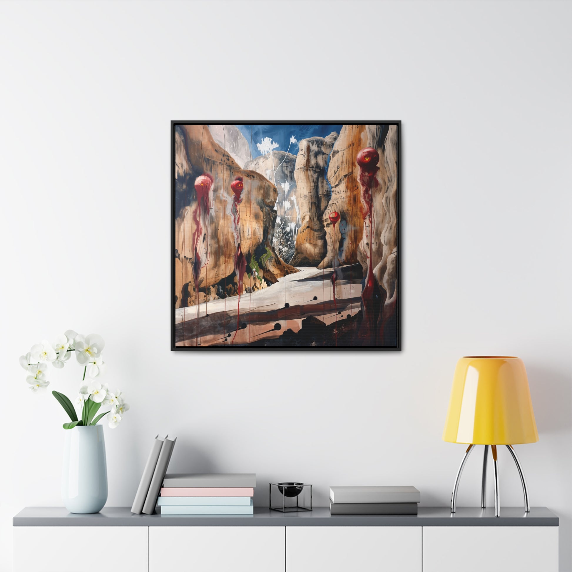 Immerse yourself in the enigmatic world of "I Hadn't Seen That Before," a mesmerizing piece from the Tom Canyon collection. This artwork captures the surreal beauty of a canyon landscape intertwined with mysterious red objects, creating a scene that is both captivating and otherworldly. The vivid colors and intricate details make this piece a standout addition to any modern art collection.