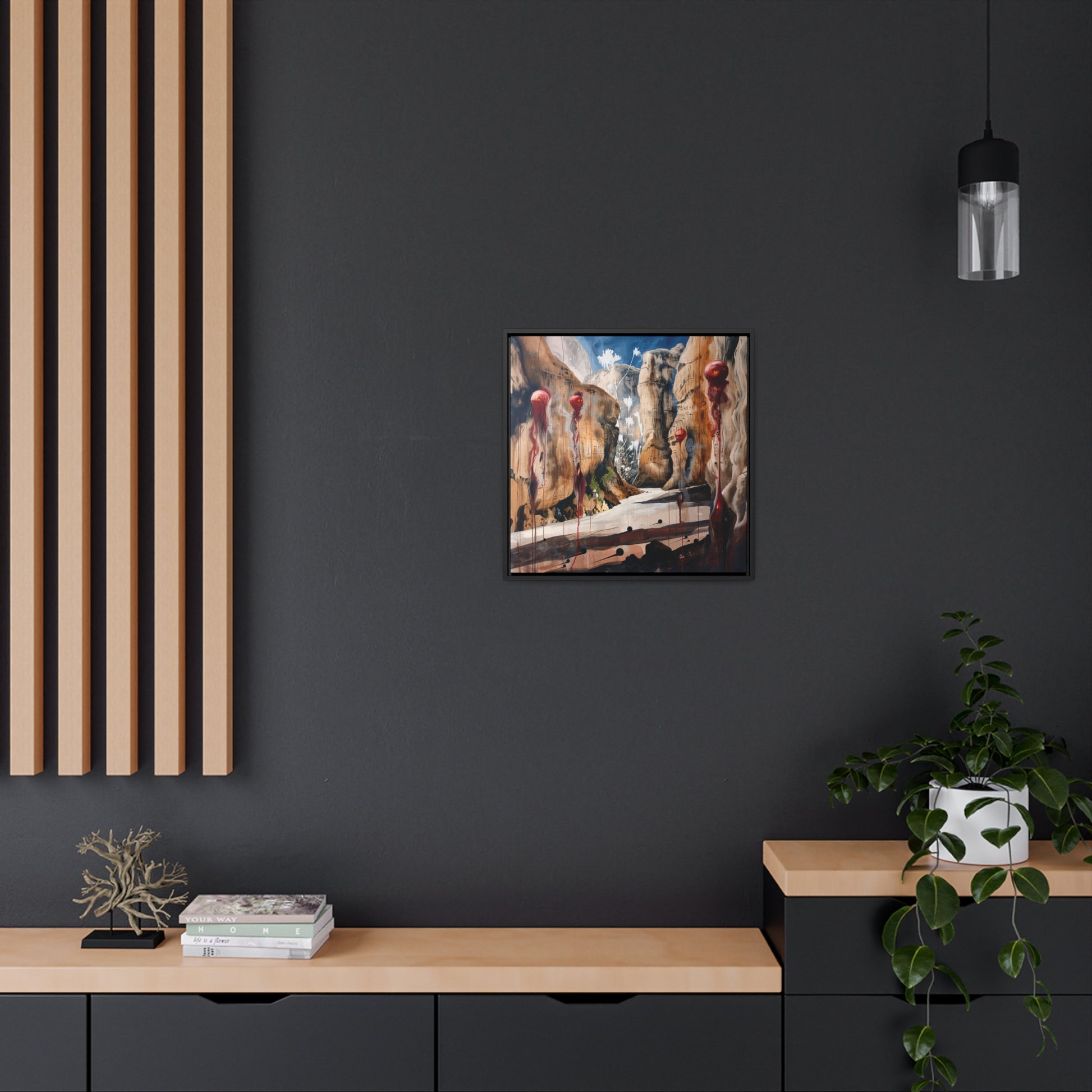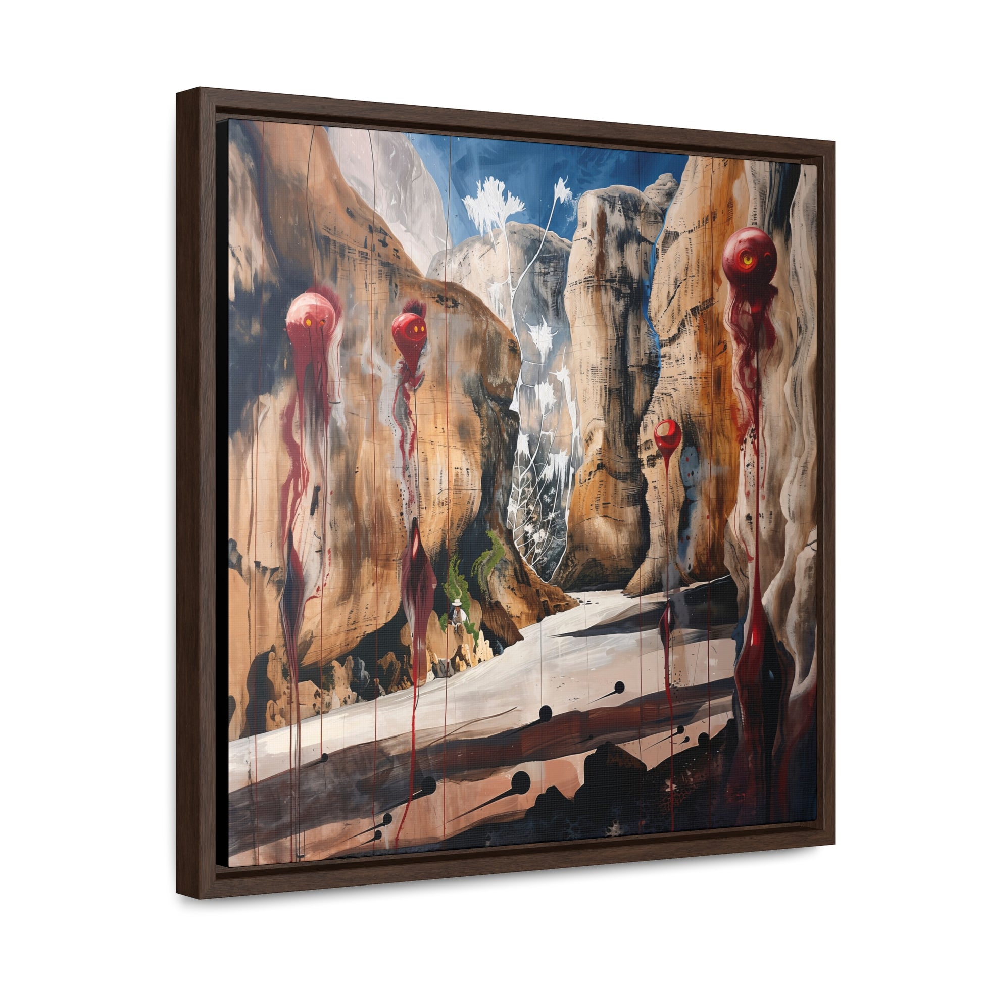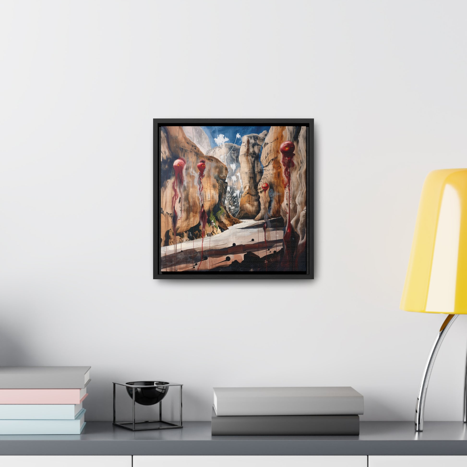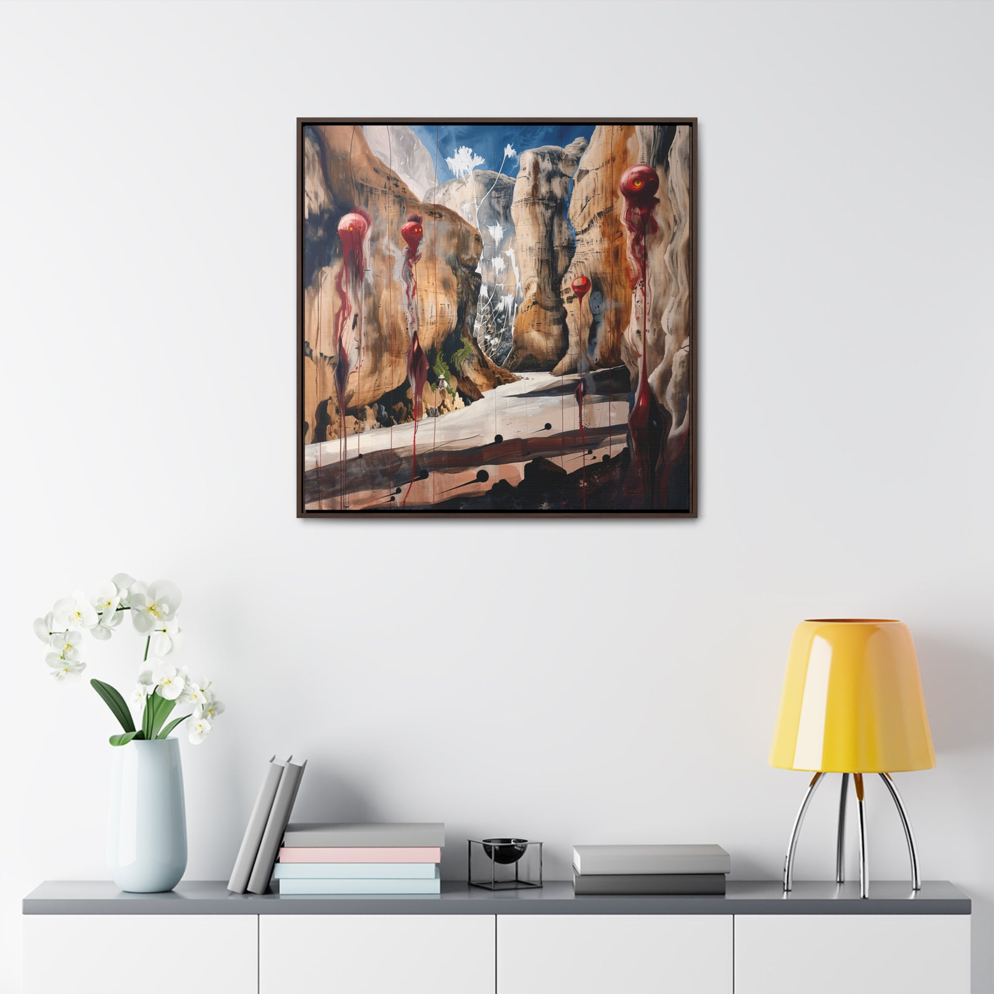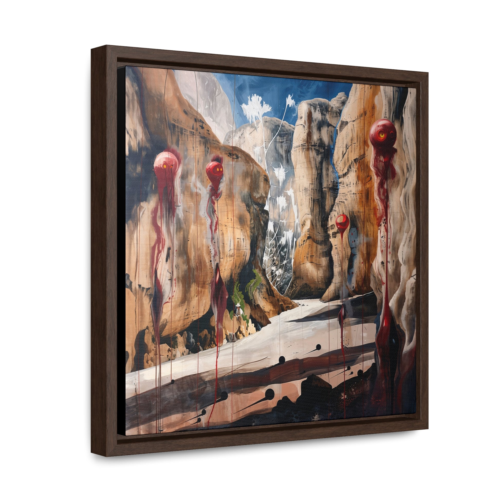 Immerse yourself in the enigmatic world of "I Hadn't Seen That Before," a mesmerizing piece from the Tom Canyon collection. This artwork captures the surreal beauty of a canyon landscape intertwined with mysterious red objects, creating a scene that is both captivating and otherworldly. The vivid colors and intricate details make this piece a standout addition to any modern art collection.