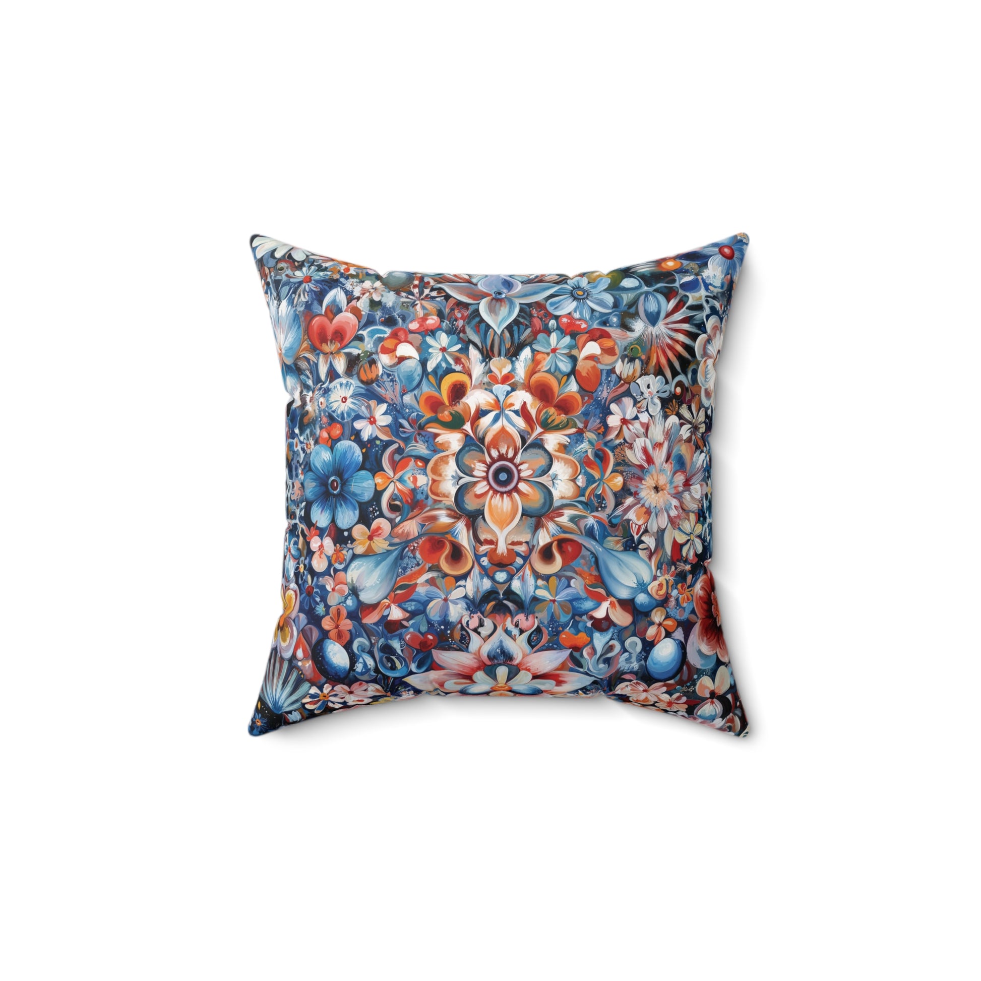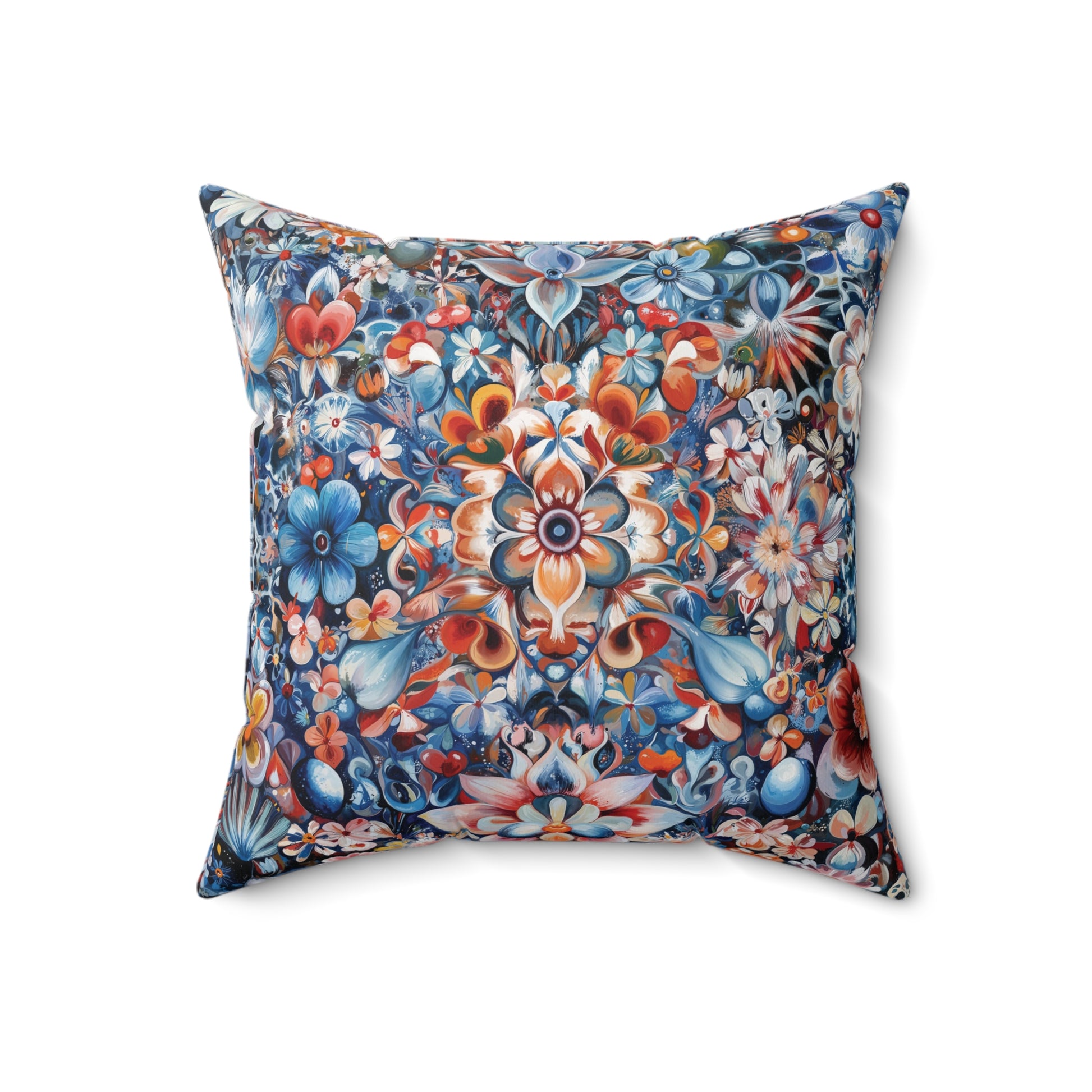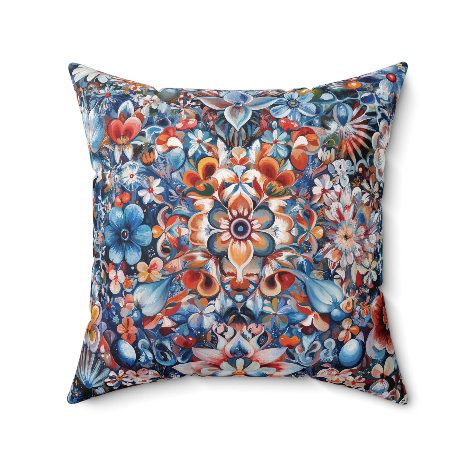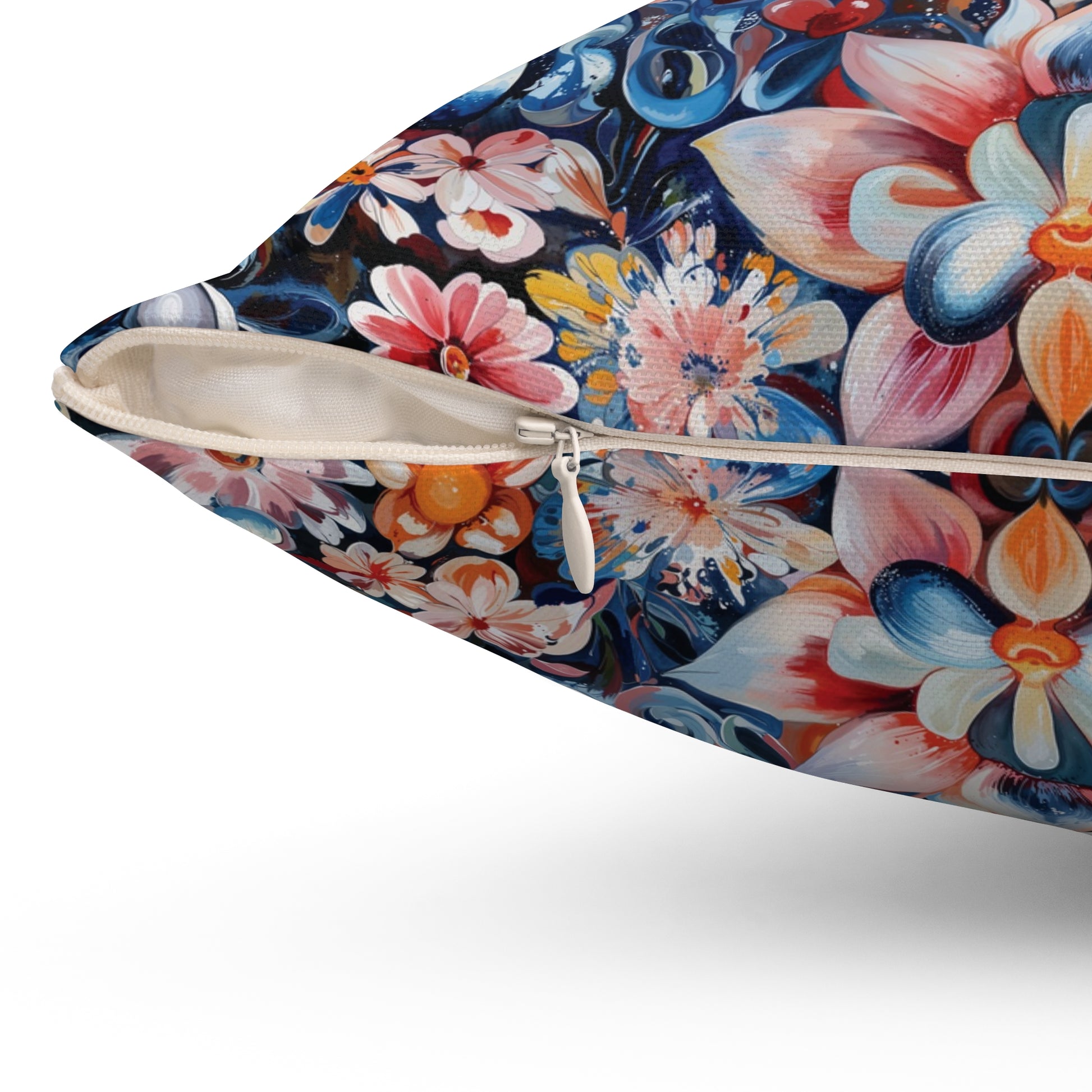 Add a bold artistic touch to your home with the "Bloomscape" Pillow, featuring Rich Silver’s vibrant floral abstract design from the Floral Fusion Collection. This beautifully crafted small square pillow serves as both a stunning statement piece and a cozy addition to your living room, bedroom, or reading nook. The intricate floral patterns and striking color palette of rich blues, fiery oranges, soft pinks, and whites bring a sense of dynamic energy to any space.