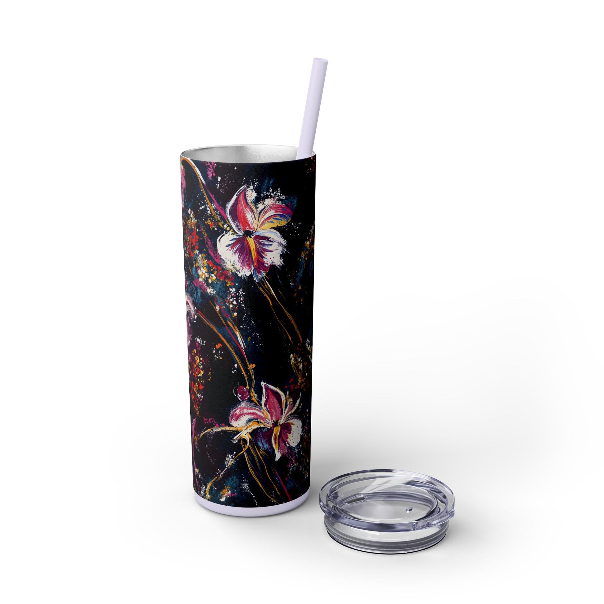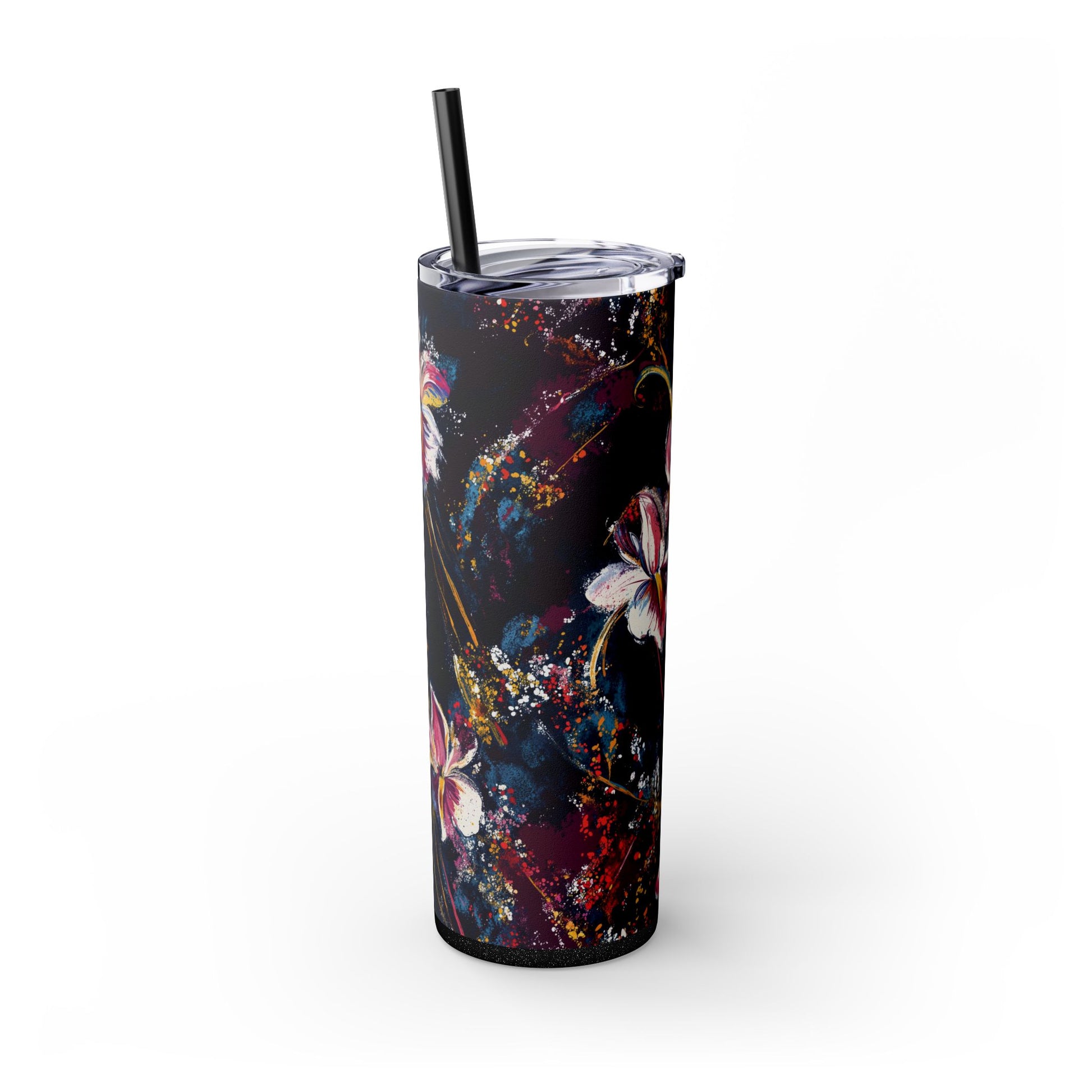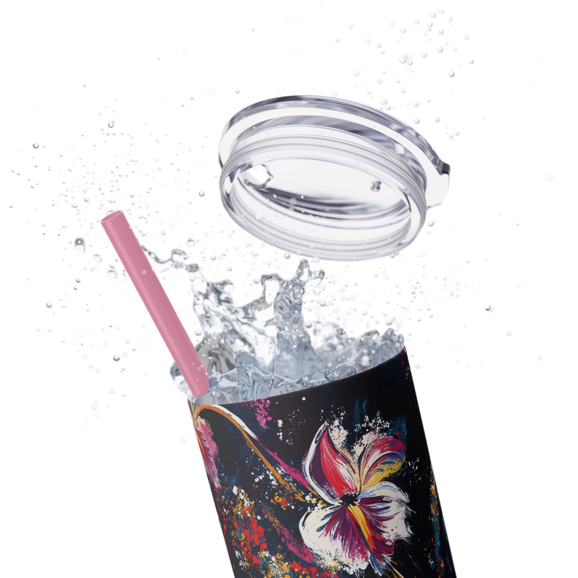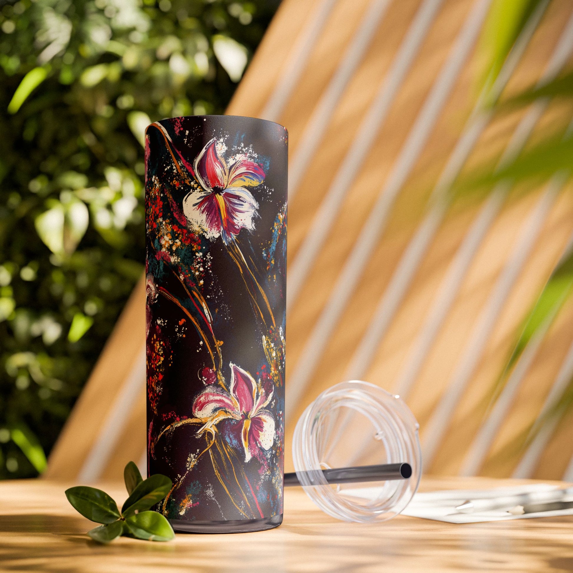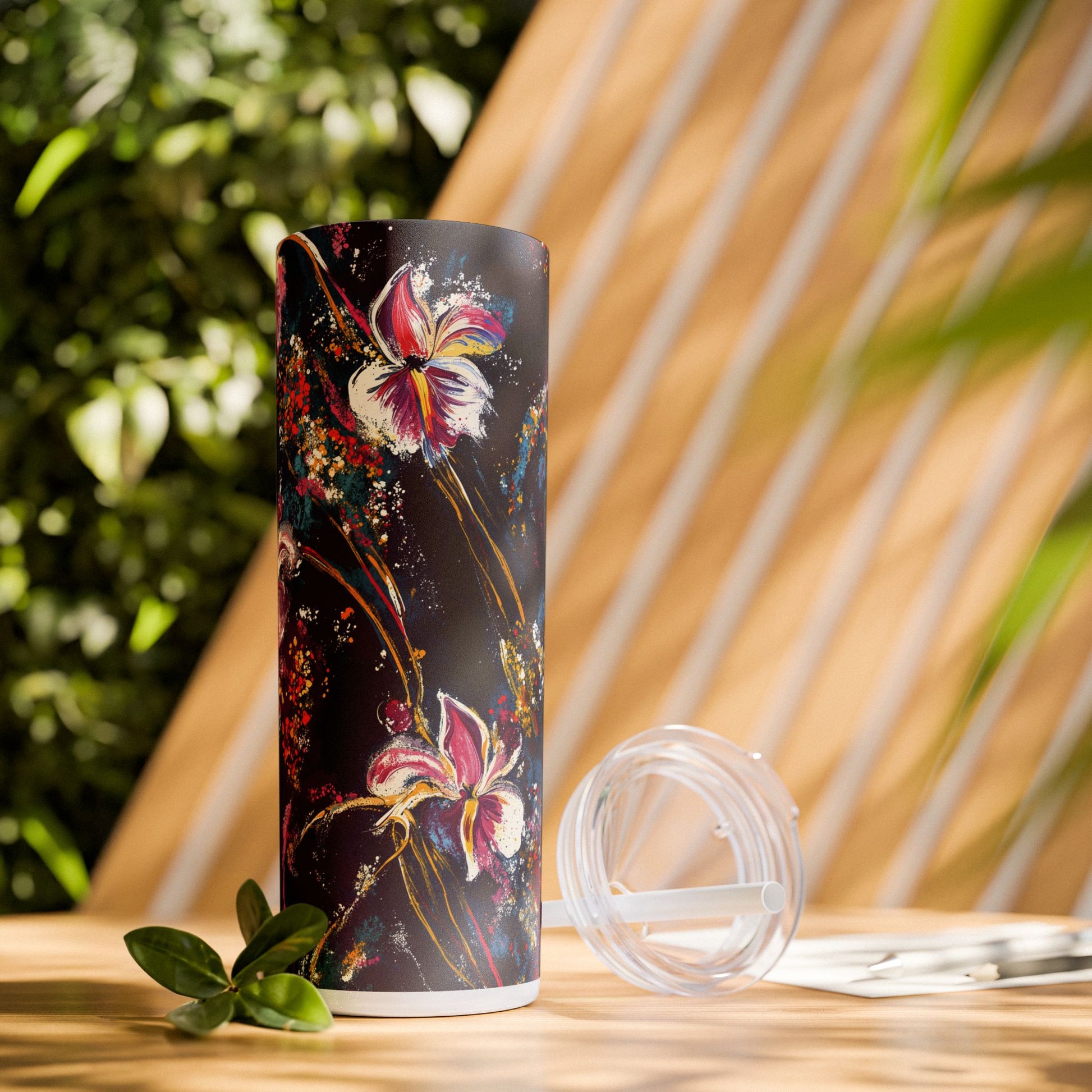 Stay refreshed in style with the Greetings Floral Skinny Tumbler, featuring the vibrant floral design from Rich Silver’s "Floral Fusion" collection. This versatile tumbler keeps your favorite drinks hot or cold while showcasing a stunning piece of art, making it the perfect companion for busy days or relaxing moments.
