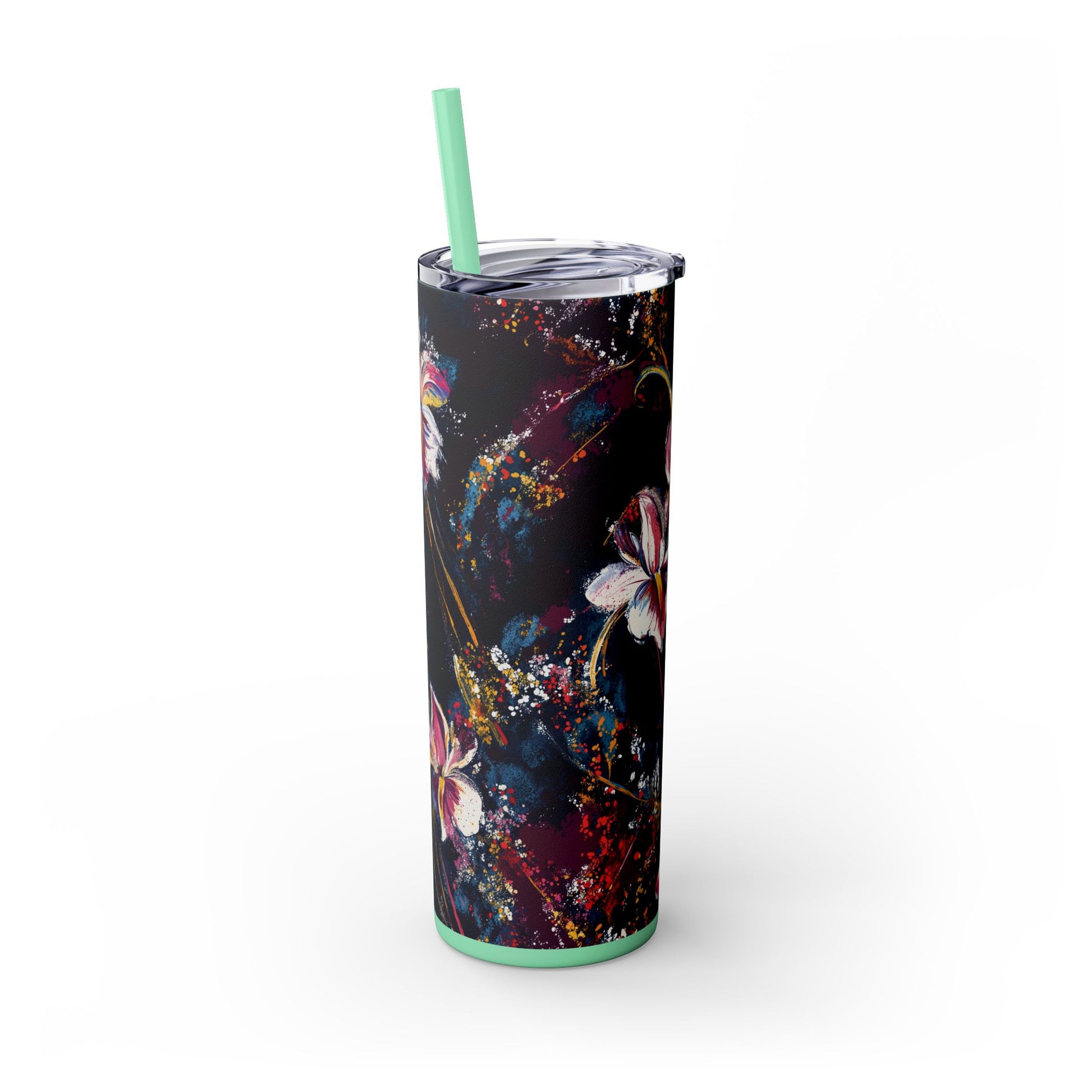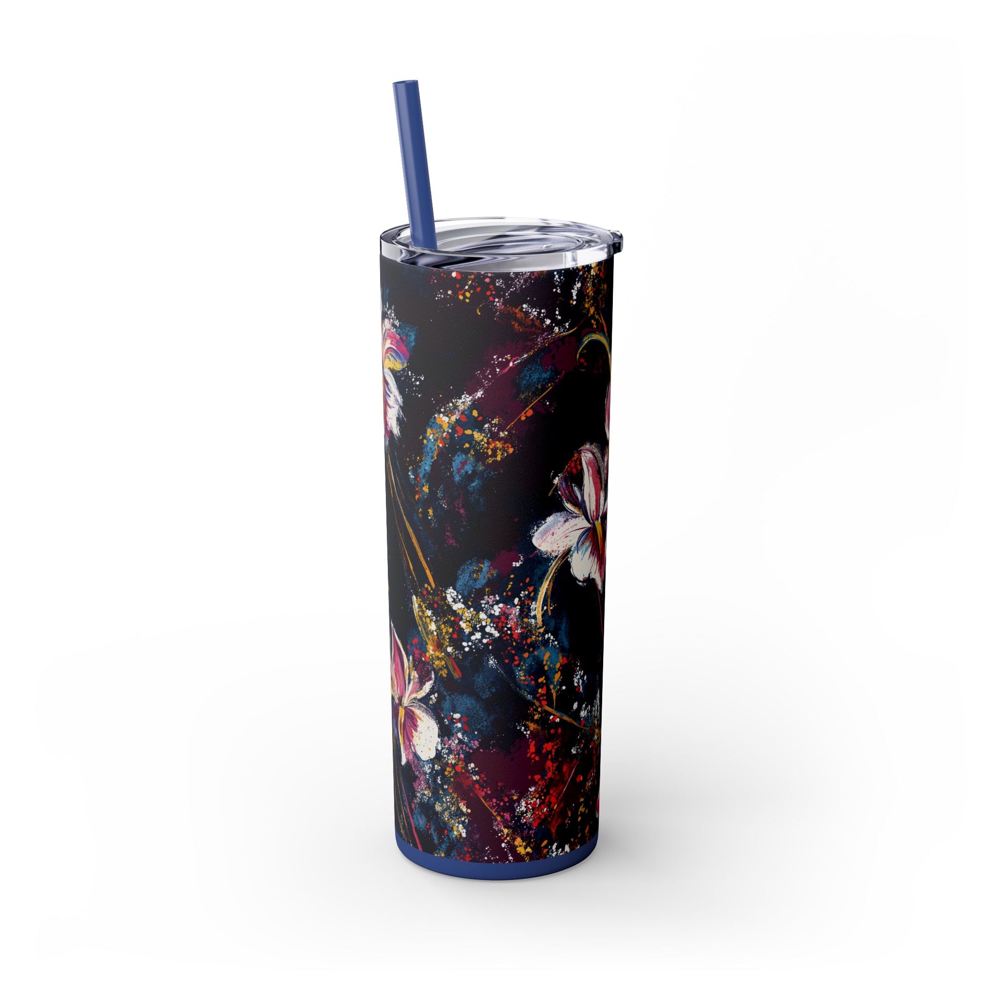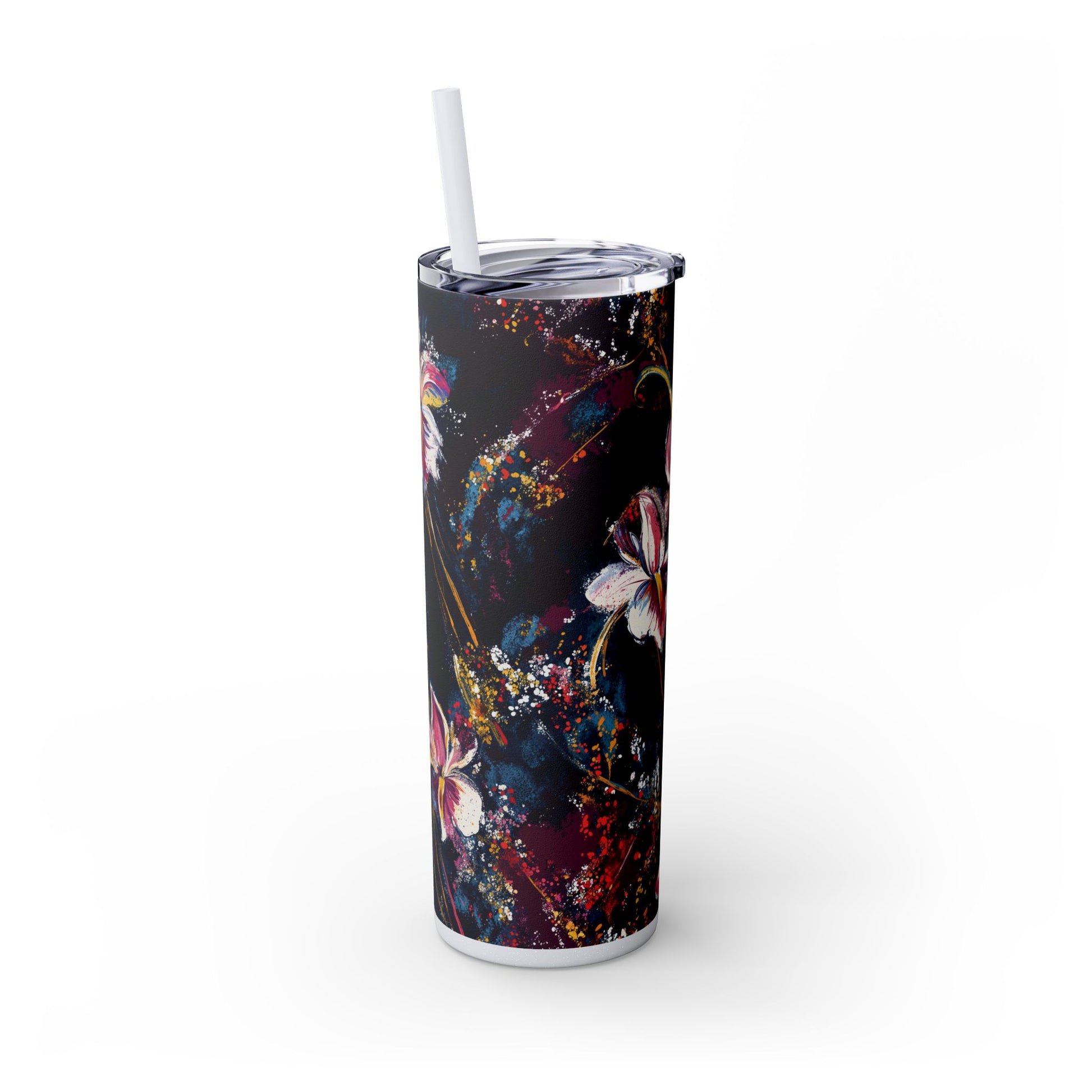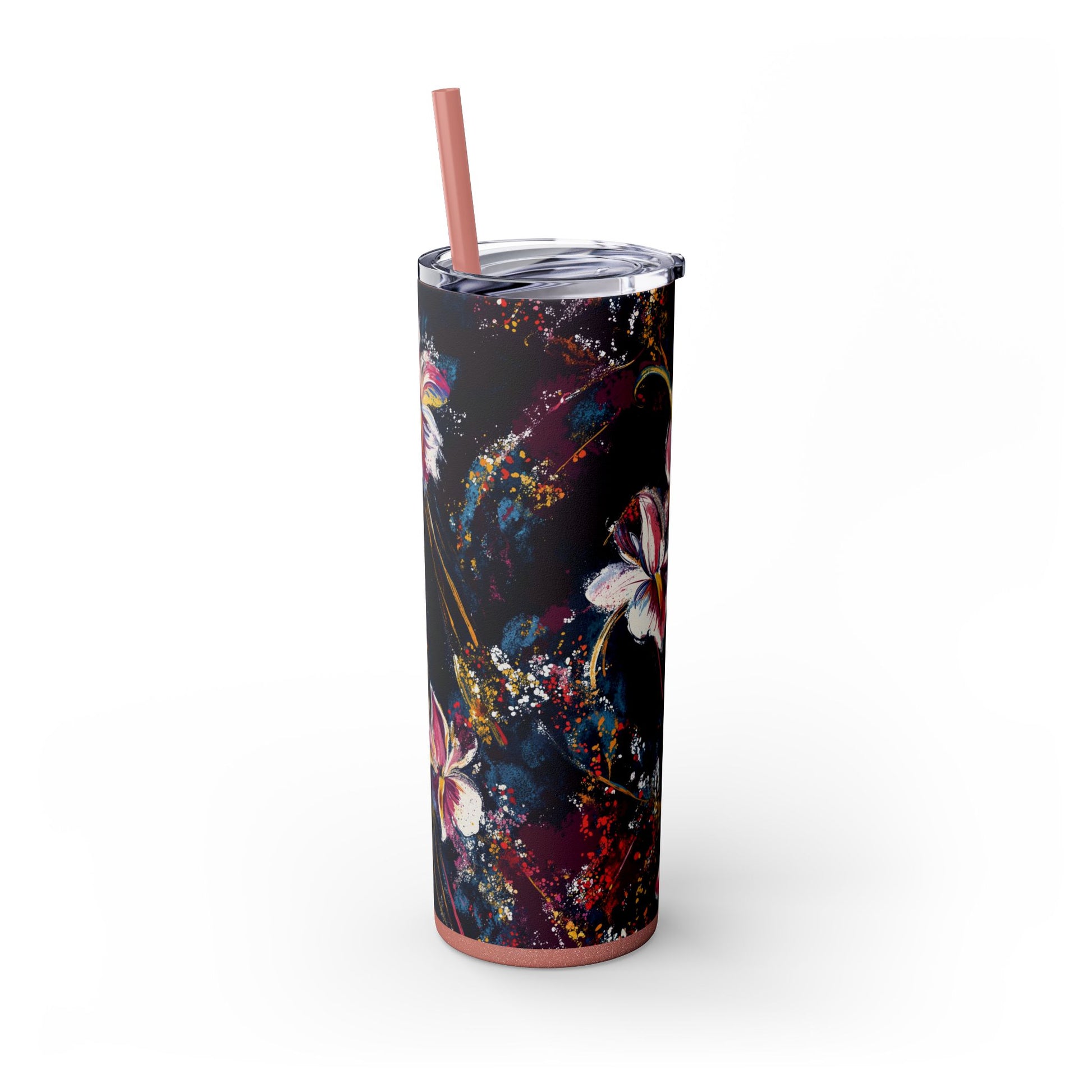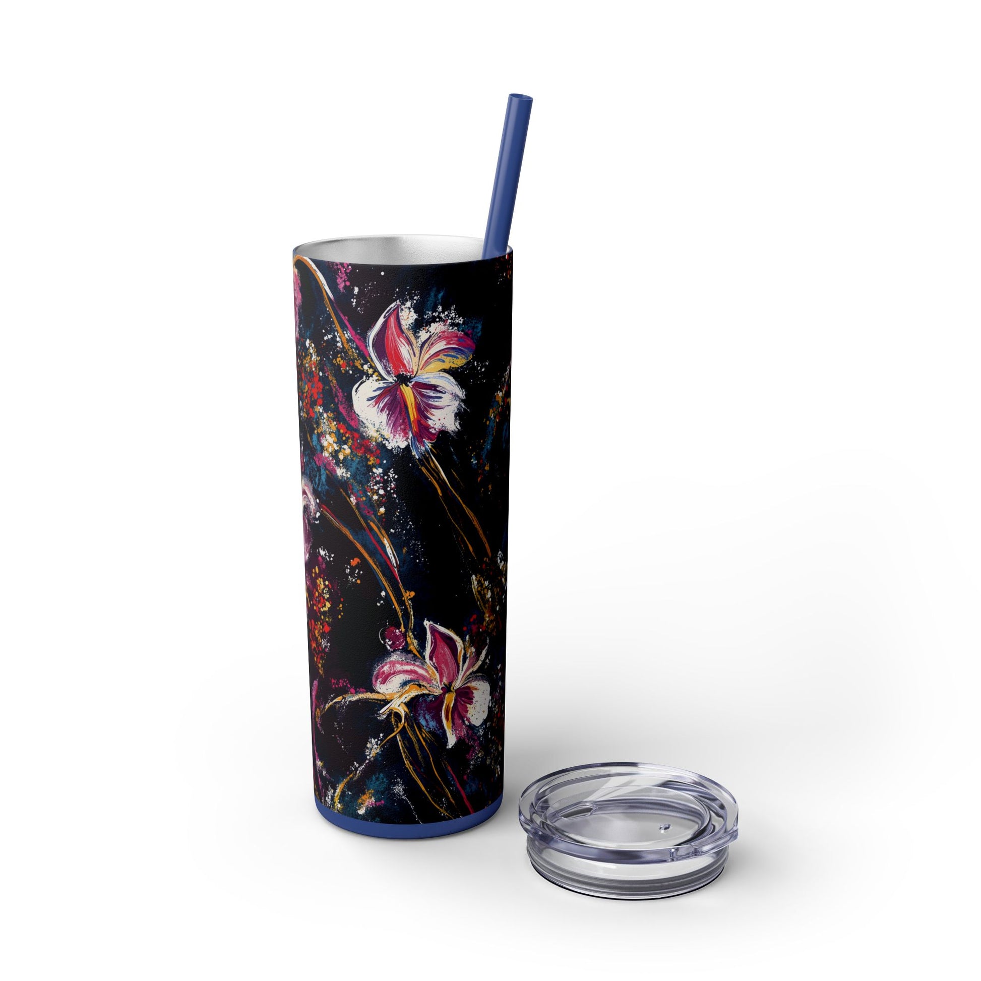 Stay refreshed in style with the Greetings Floral Skinny Tumbler, featuring the vibrant floral design from Rich Silver’s "Floral Fusion" collection. This versatile tumbler keeps your favorite drinks hot or cold while showcasing a stunning piece of art, making it the perfect companion for busy days or relaxing moments.