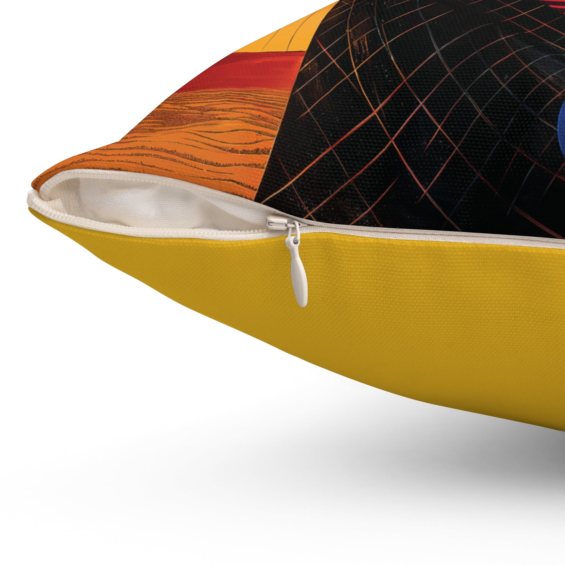 Bring a cosmic touch to your living space with the One Eye Forward Pillow, featuring captivating artwork from the "I Dreamed of Mars" collection by Rich Silver. This bold, artistic design graces one side of the pillow, while a sleek yellow fabric adorns the other, creating a versatile statement piece perfect for any room.