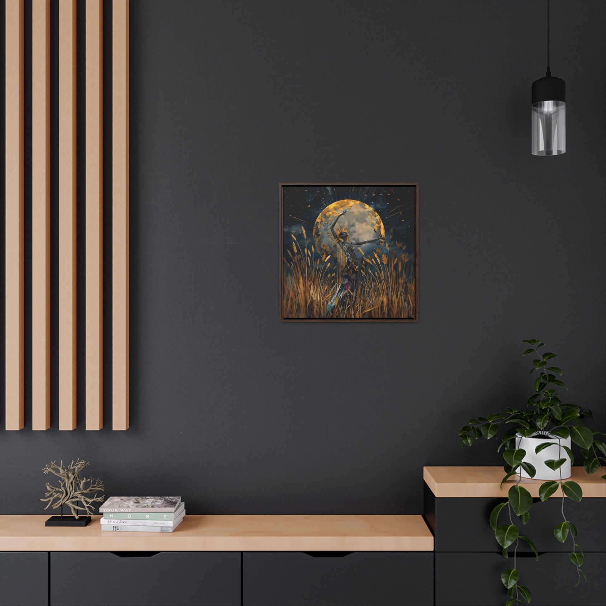 Sturdy Poplar Wood Frame: Our canvases are securely mounted on solid face poplar wood frames, providing a robust structure that maintains the canvas's tight and flat appearance over time. Available in elegant walnut or sleek black finishes, these frames complement any decor style and add a refined touch to your space.