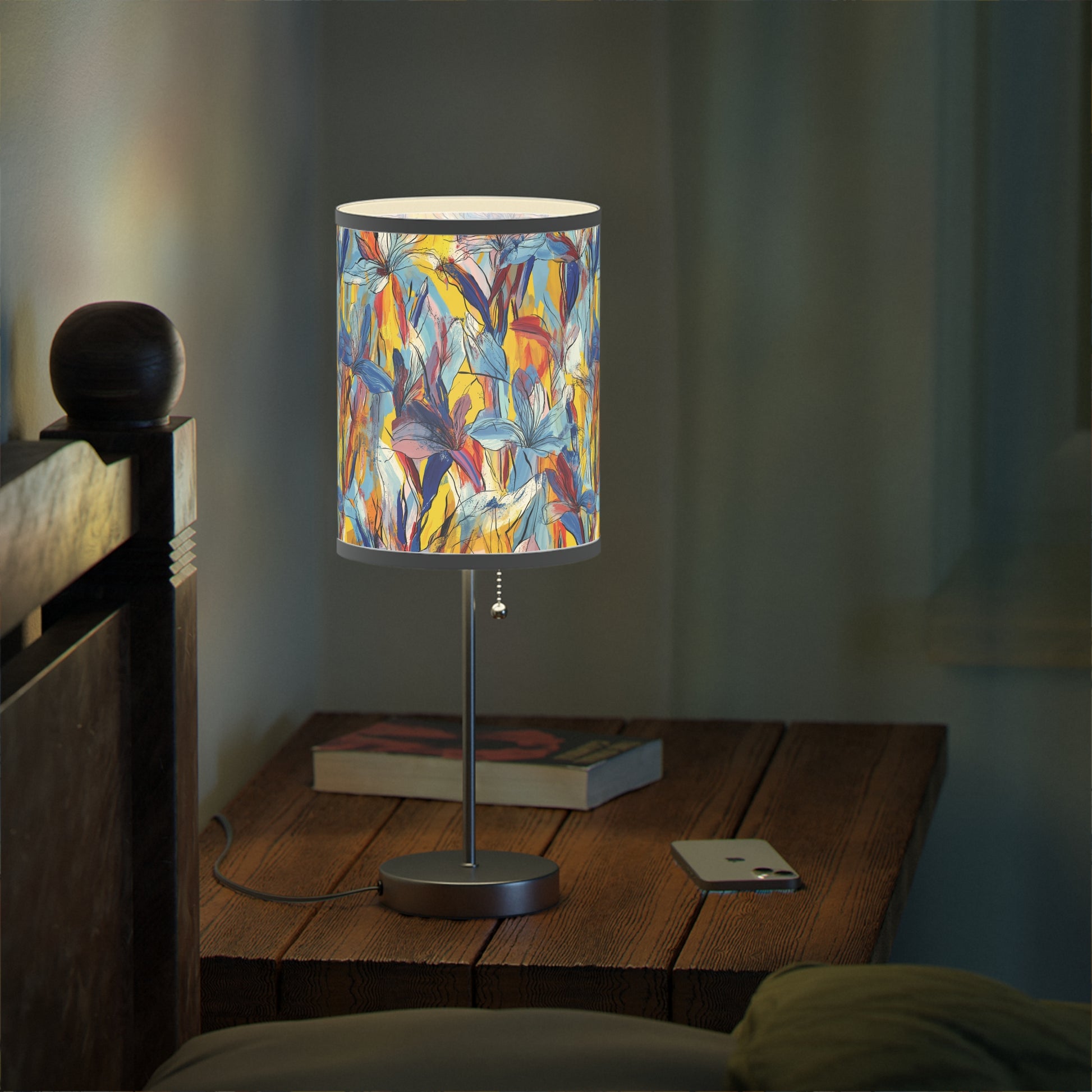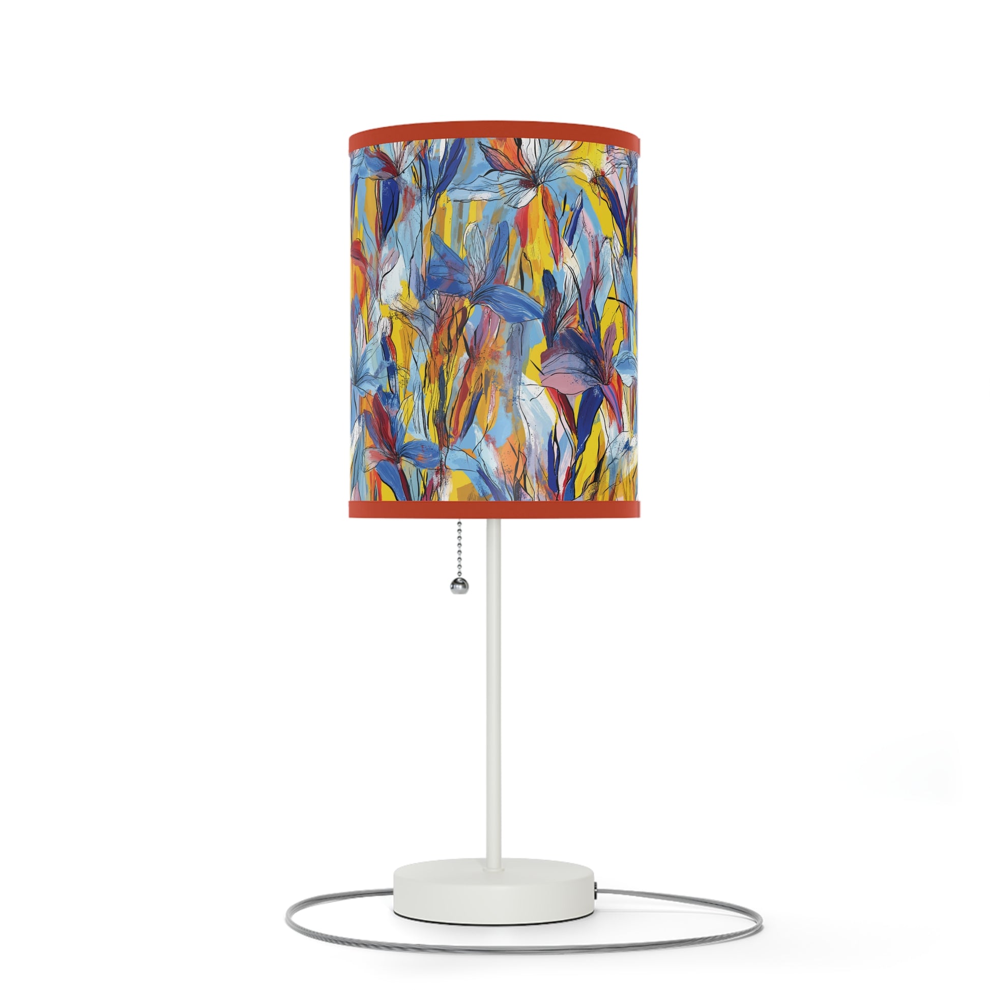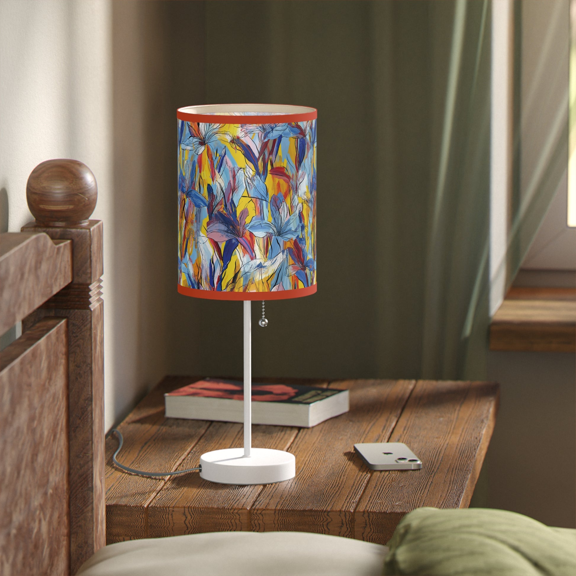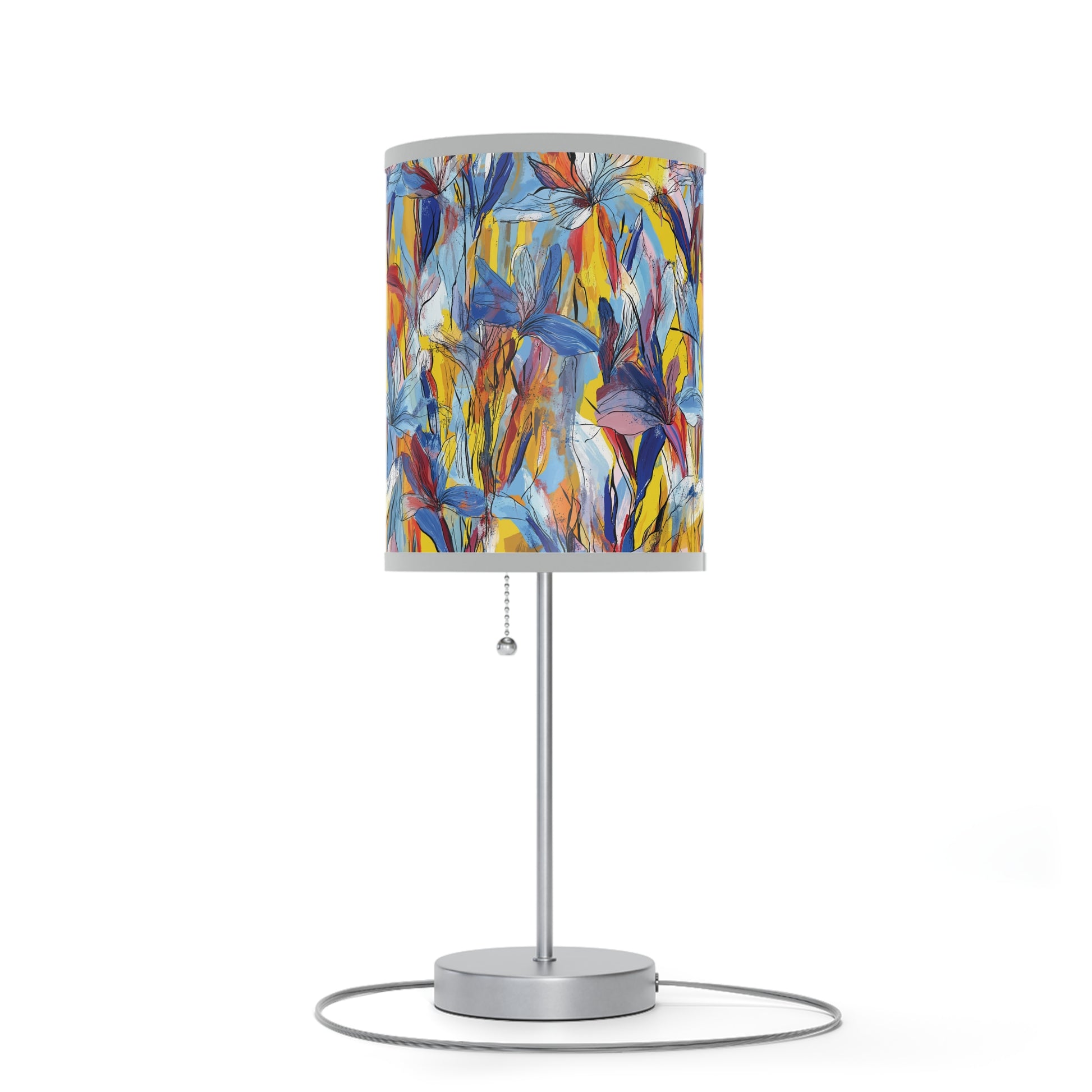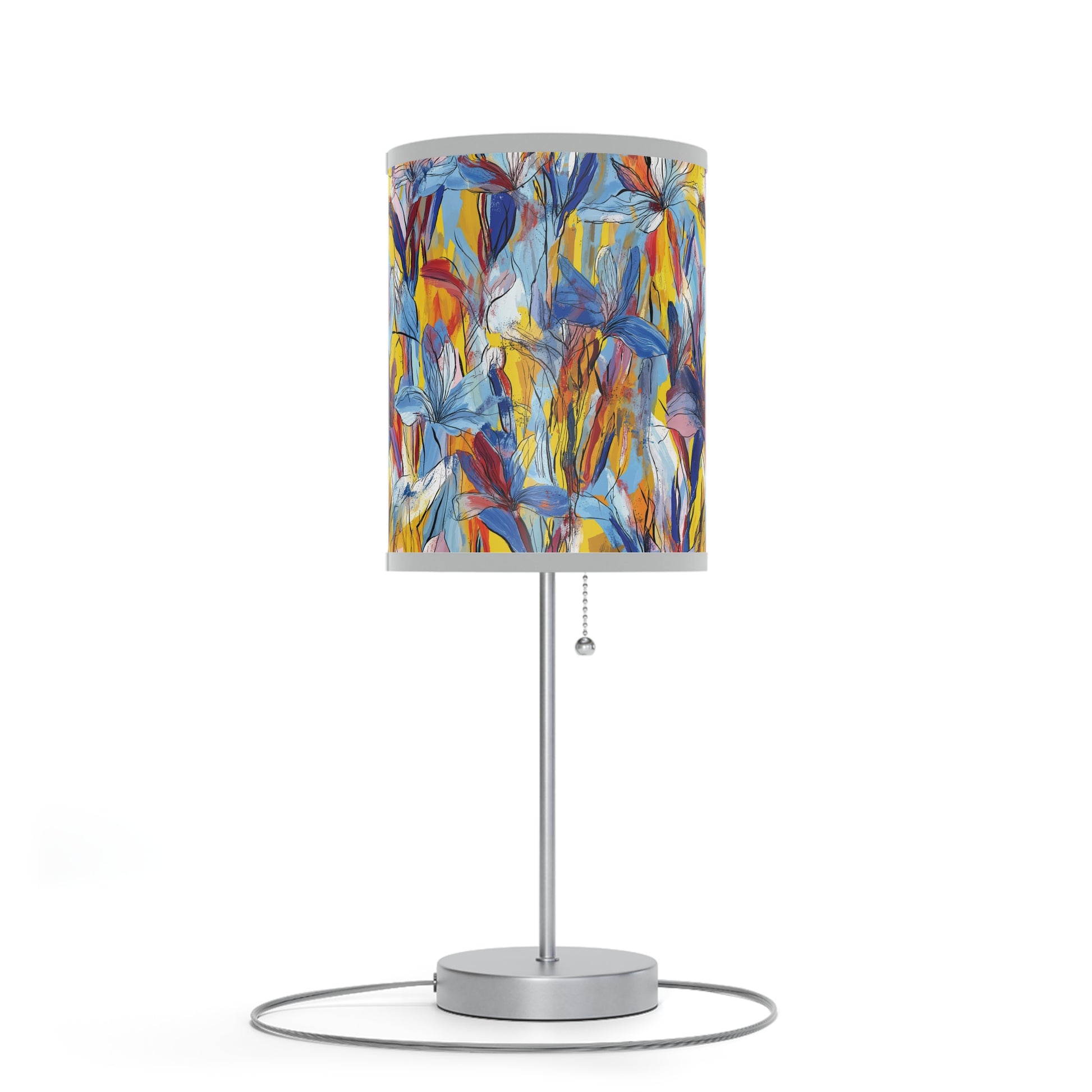 Transform your room with the vibrant artistry of "Wild Radiance," a stunning table lamp featuring the captivating floral abstract design from Rich Silver’s Floral Fusion Collection. The dynamic interplay of cerulean blue, fiery red, golden yellow, and soft pinks on the high-resolution printed shade adds a burst of energy and warmth to your space, creating a cozy and inviting ambiance.
