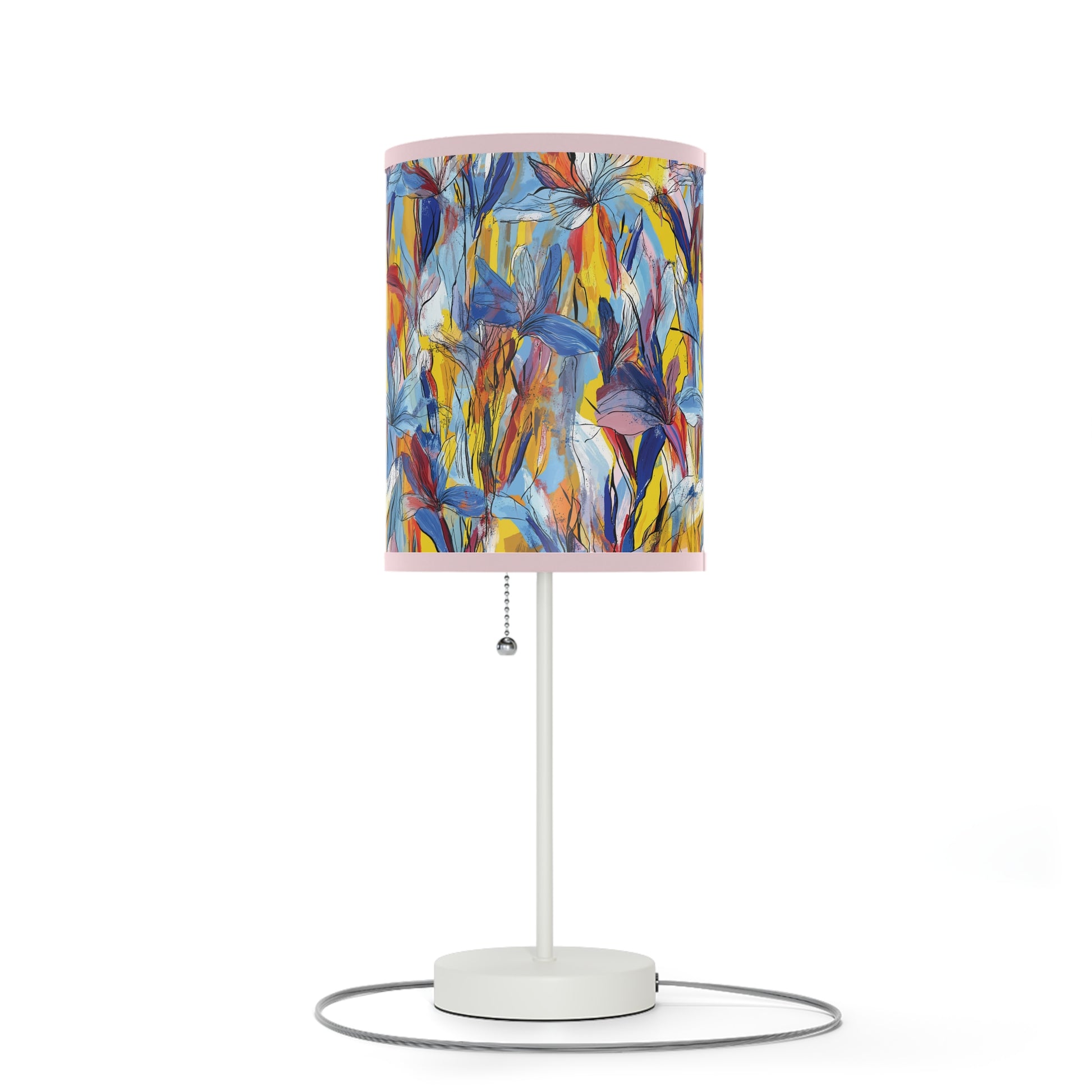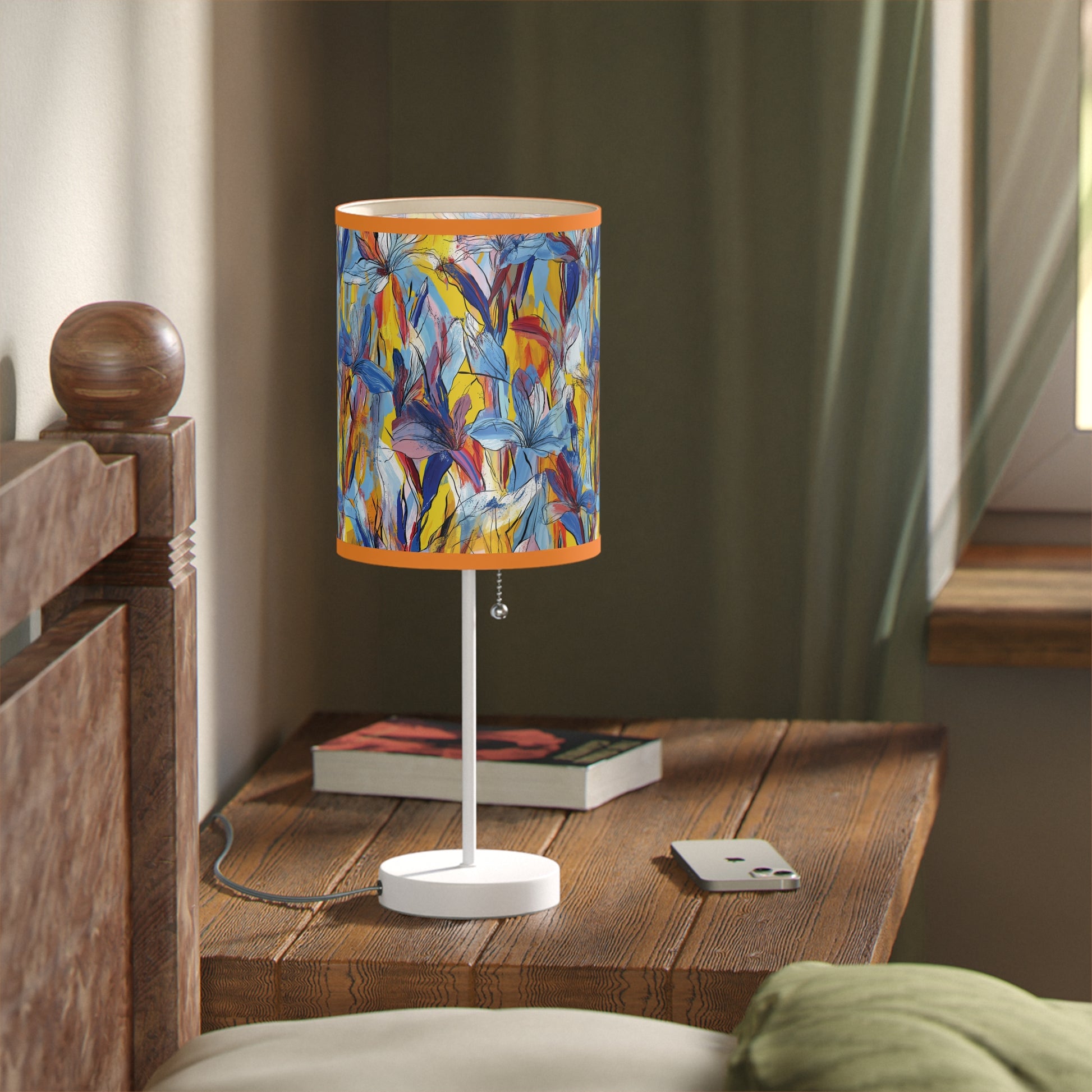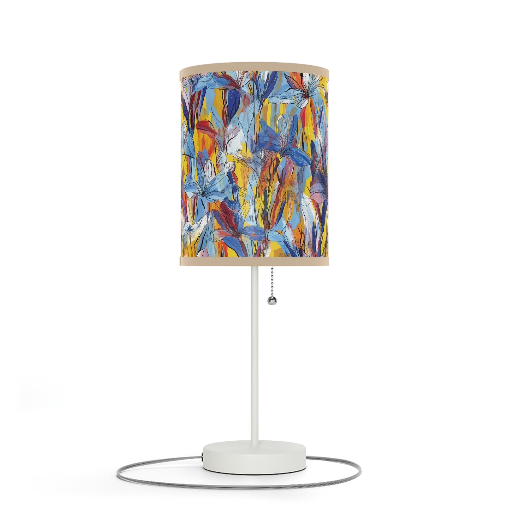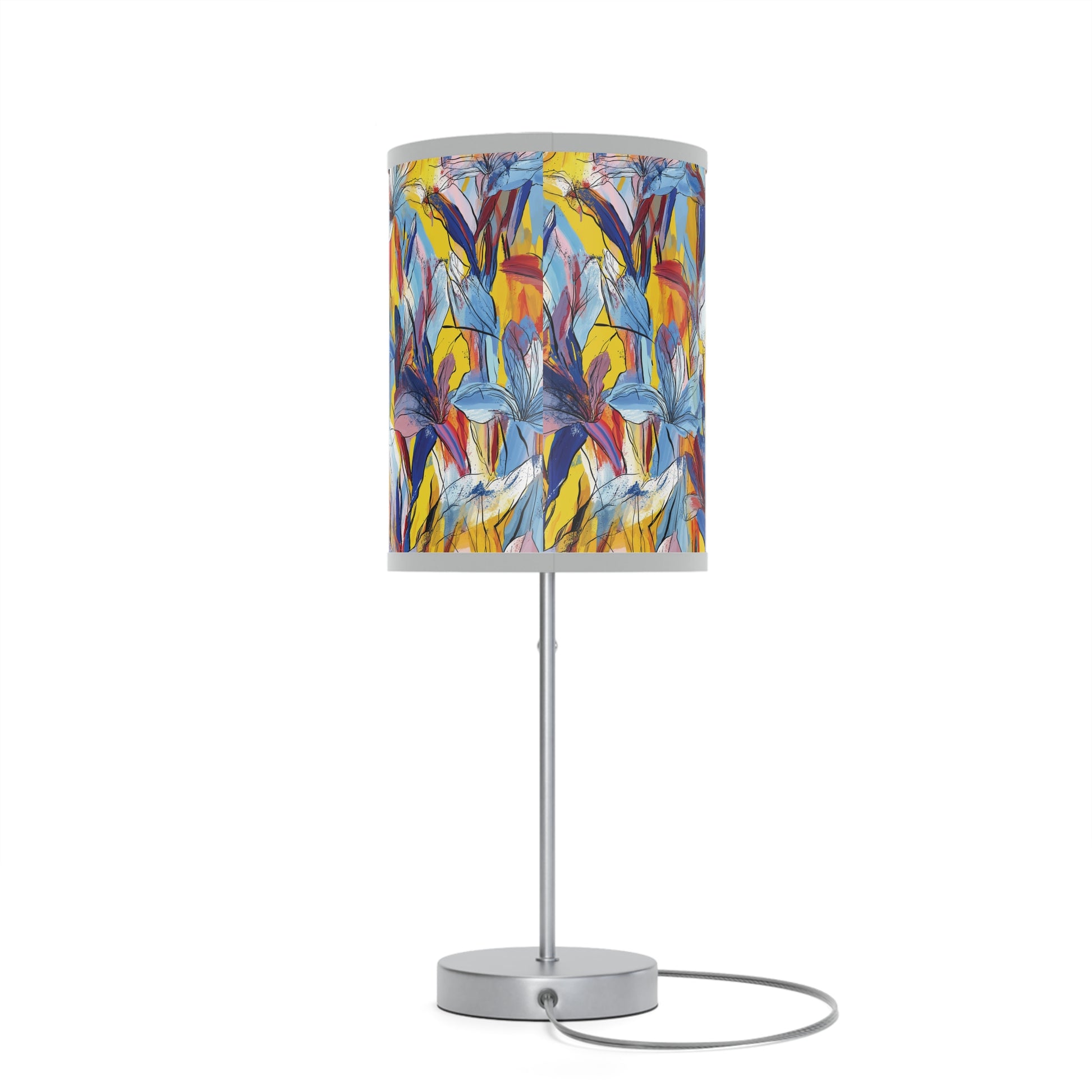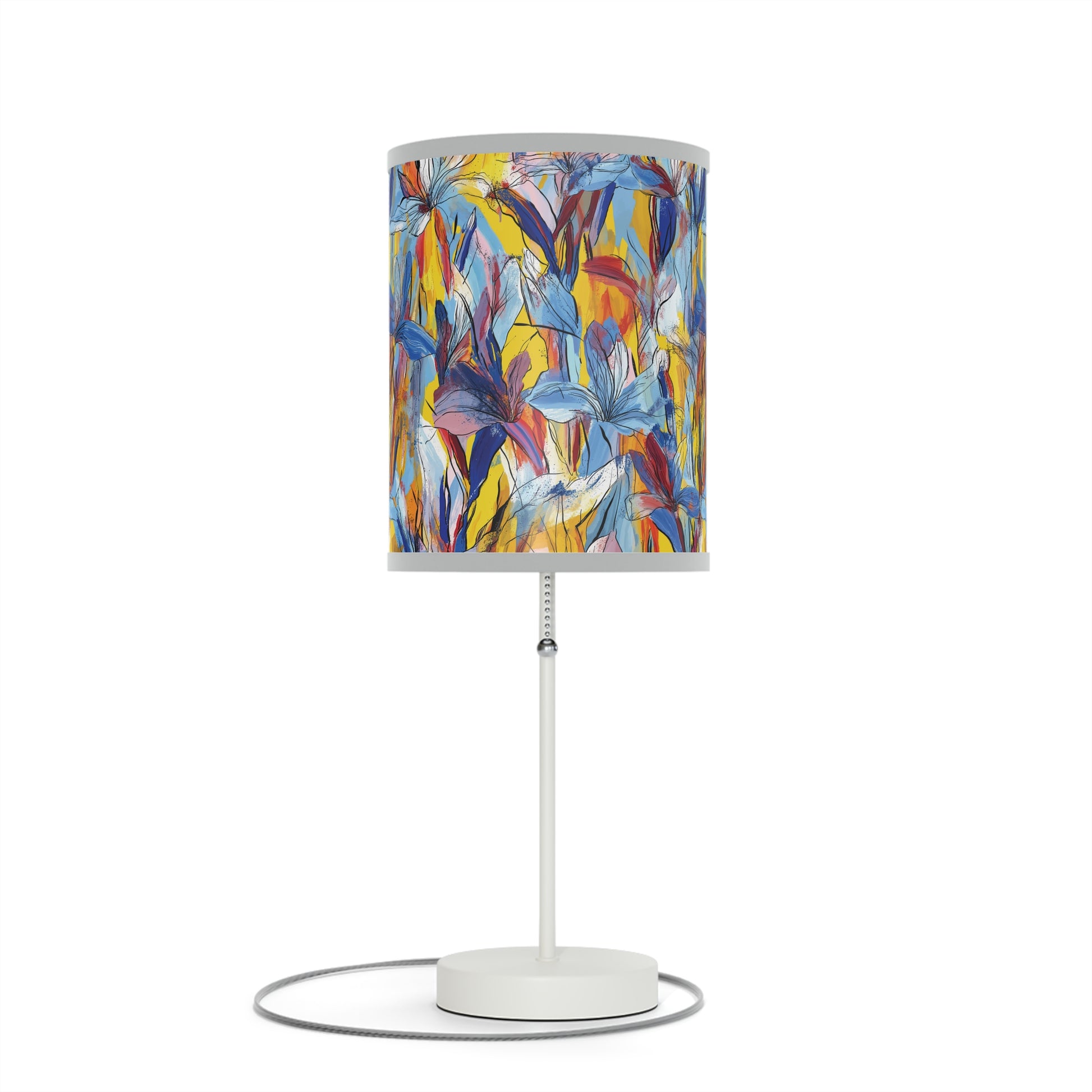 Transform your room with the vibrant artistry of "Wild Radiance," a stunning table lamp featuring the captivating floral abstract design from Rich Silver’s Floral Fusion Collection. The dynamic interplay of cerulean blue, fiery red, golden yellow, and soft pinks on the high-resolution printed shade adds a burst of energy and warmth to your space, creating a cozy and inviting ambiance.