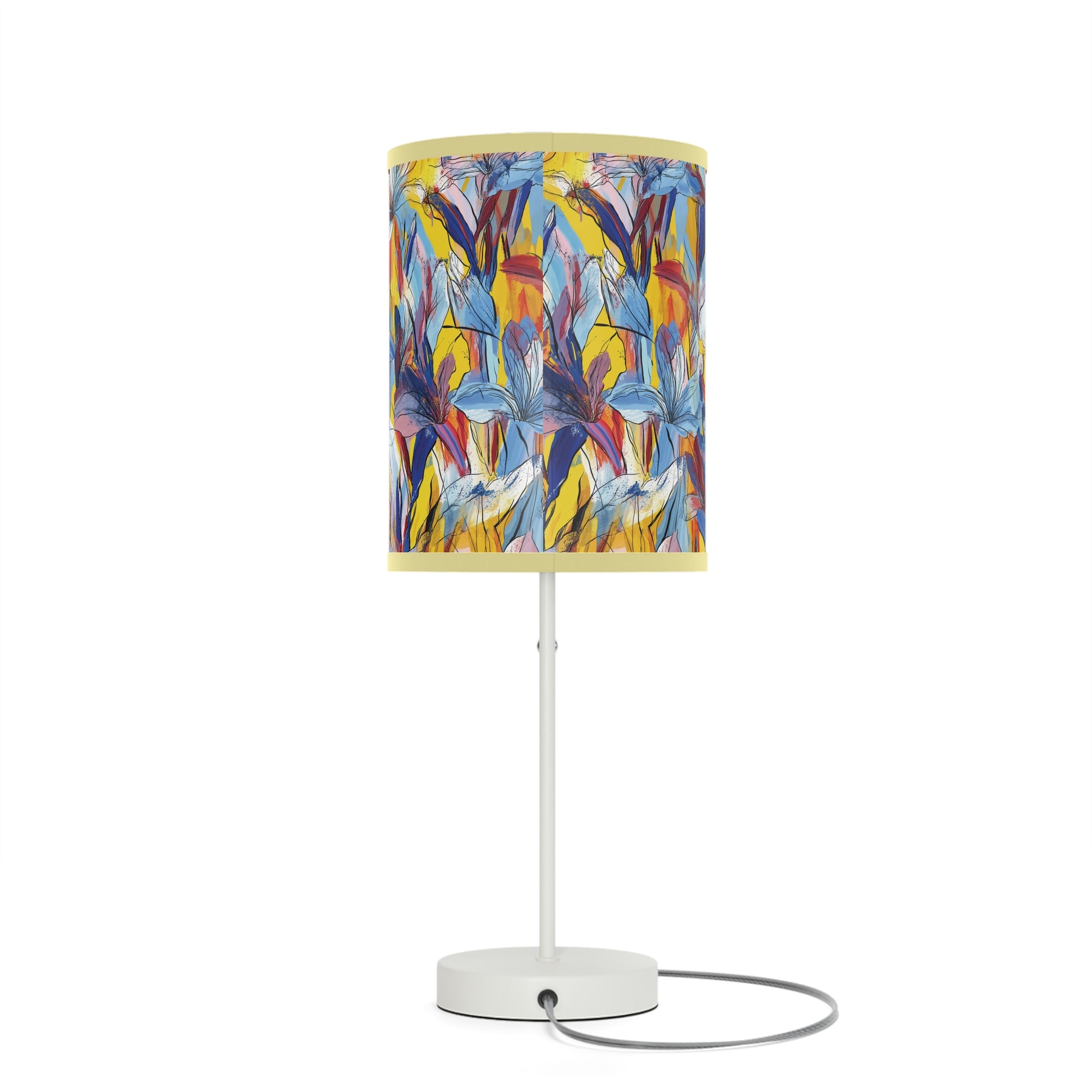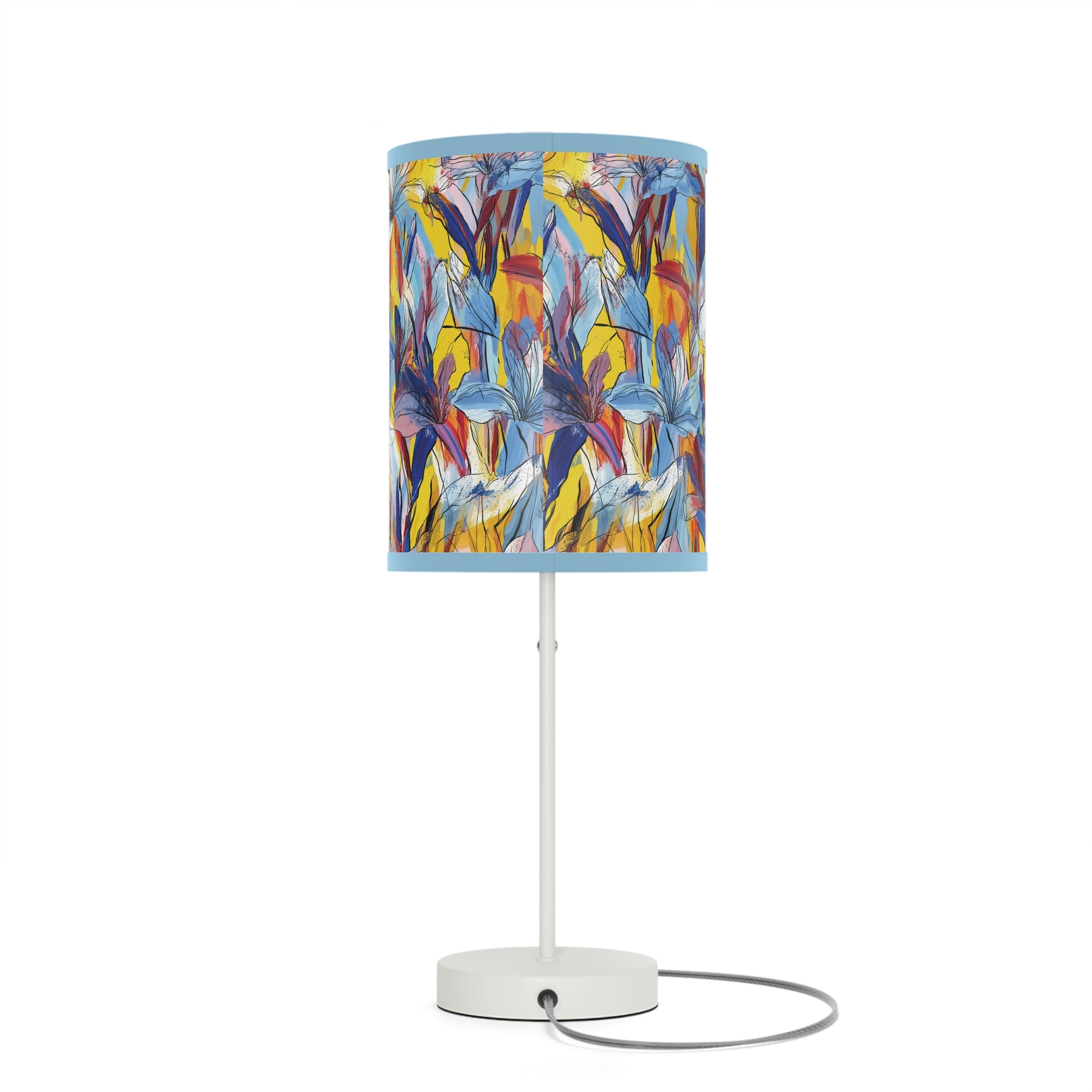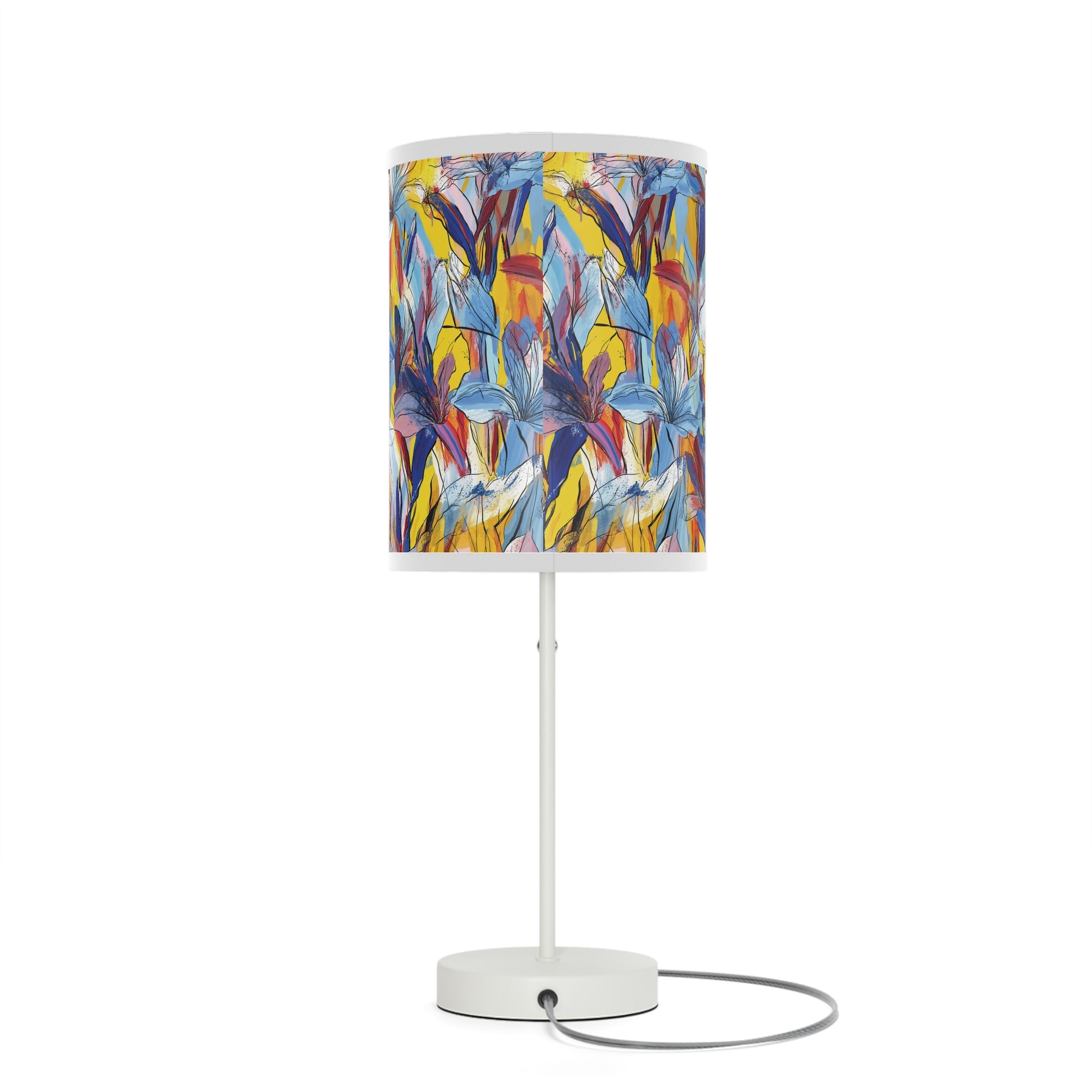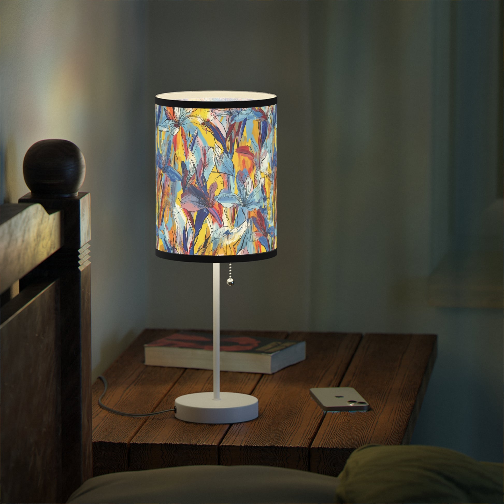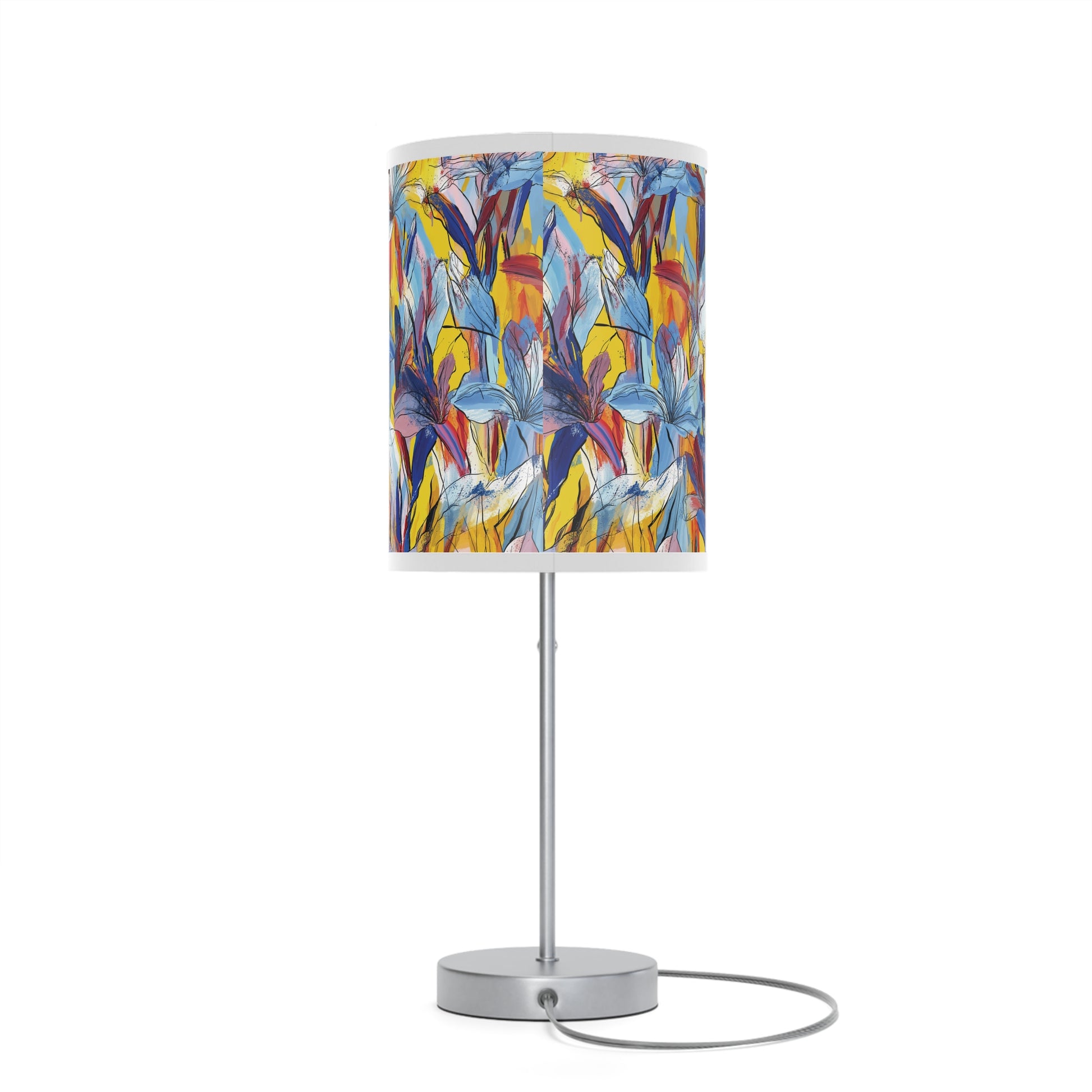 Transform your room with the vibrant artistry of "Wild Radiance," a stunning table lamp featuring the captivating floral abstract design from Rich Silver’s Floral Fusion Collection. The dynamic interplay of cerulean blue, fiery red, golden yellow, and soft pinks on the high-resolution printed shade adds a burst of energy and warmth to your space, creating a cozy and inviting ambiance.