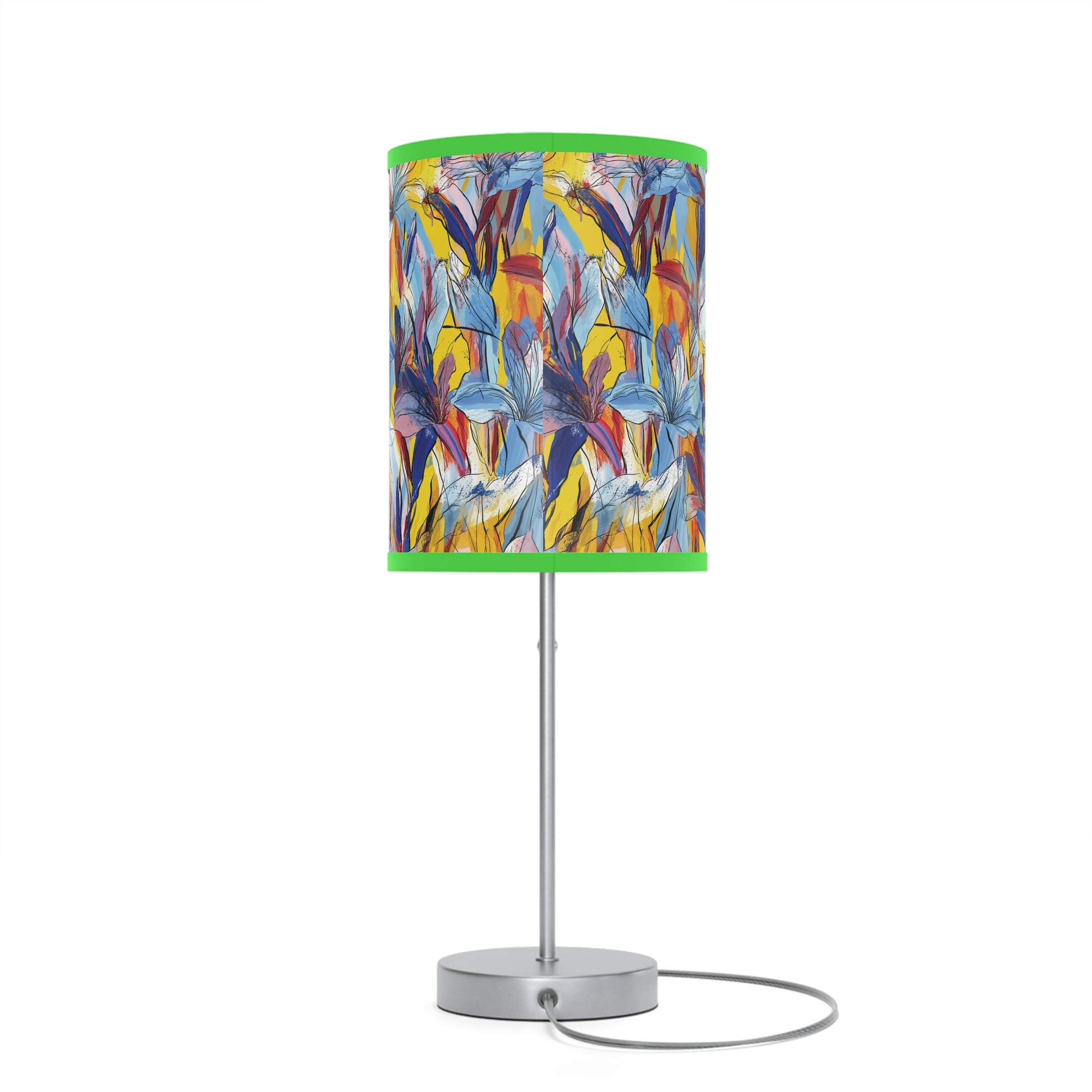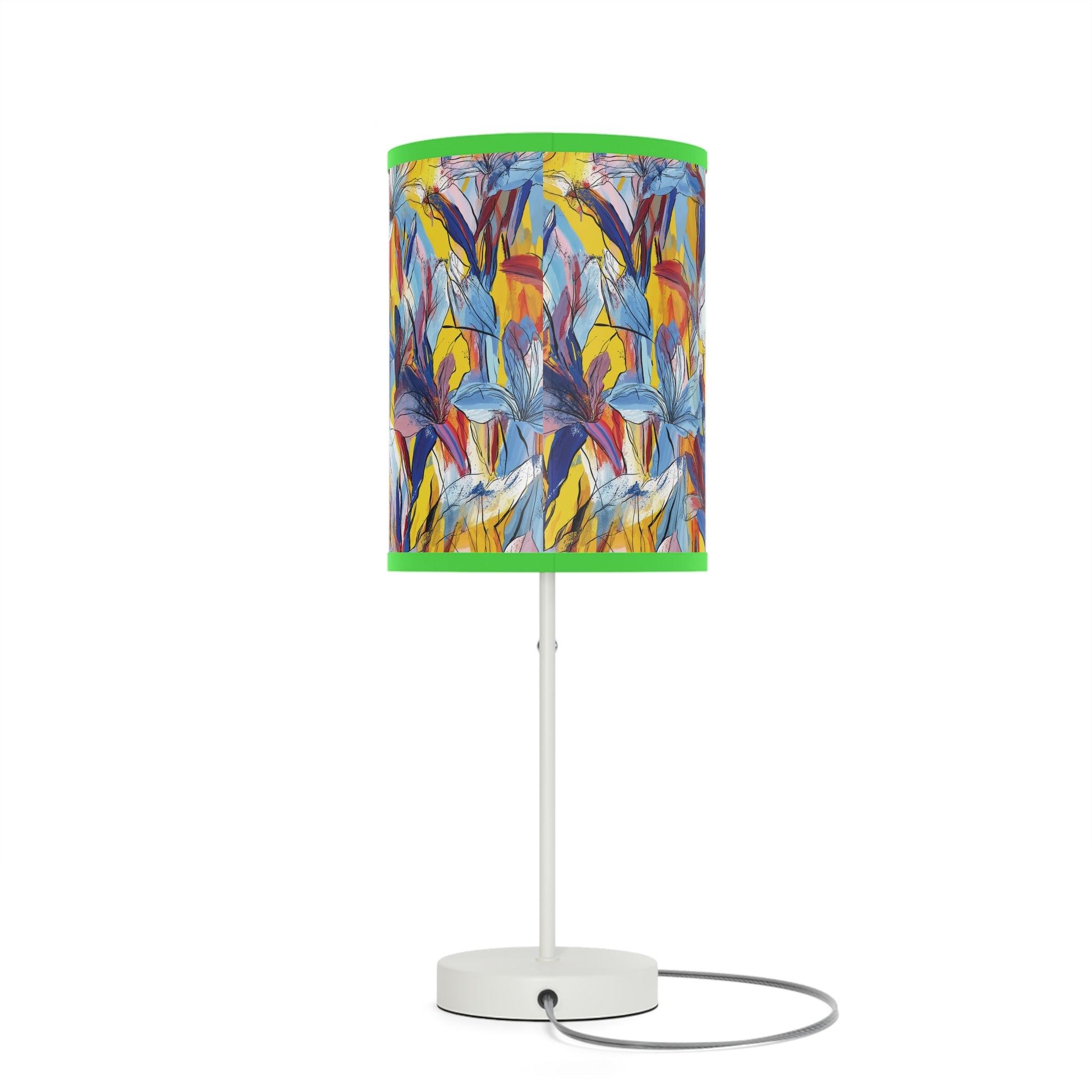 Crafted with a sleek steel base available in silver or white finishes, this lamp seamlessly blends durability with contemporary style. The fabric-trimmed shade offers 10 different trim color options, allowing you to personalize the lamp to match your décor. Whether placed in a bedroom, living room, or office, the "Wild Radiance" Table Lamp delivers both artistic flair and practical lighting.