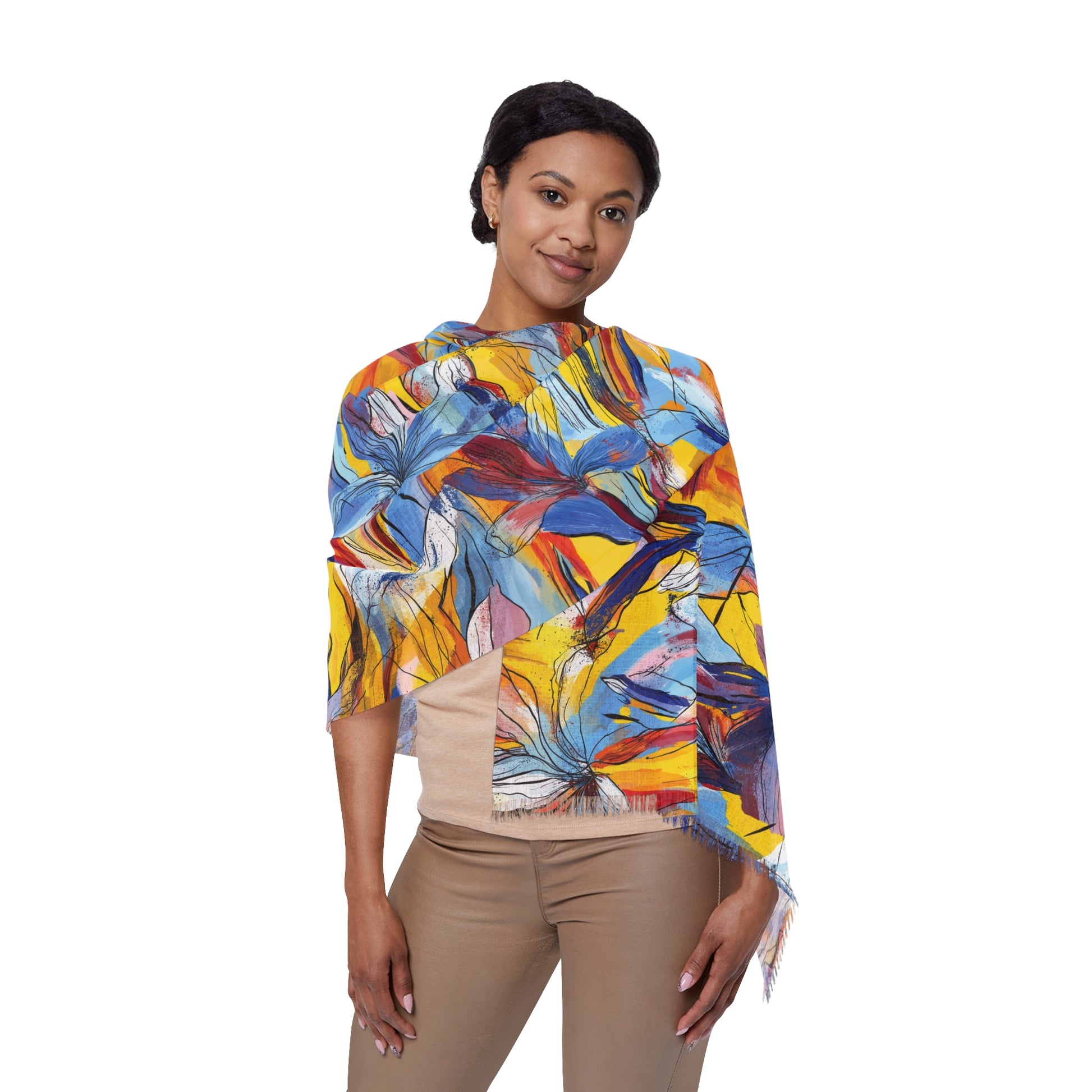 Add a pop of color and artistic elegance to your look with the "Wild Radiance" Scarf, available exclusively on Artlicious.com.