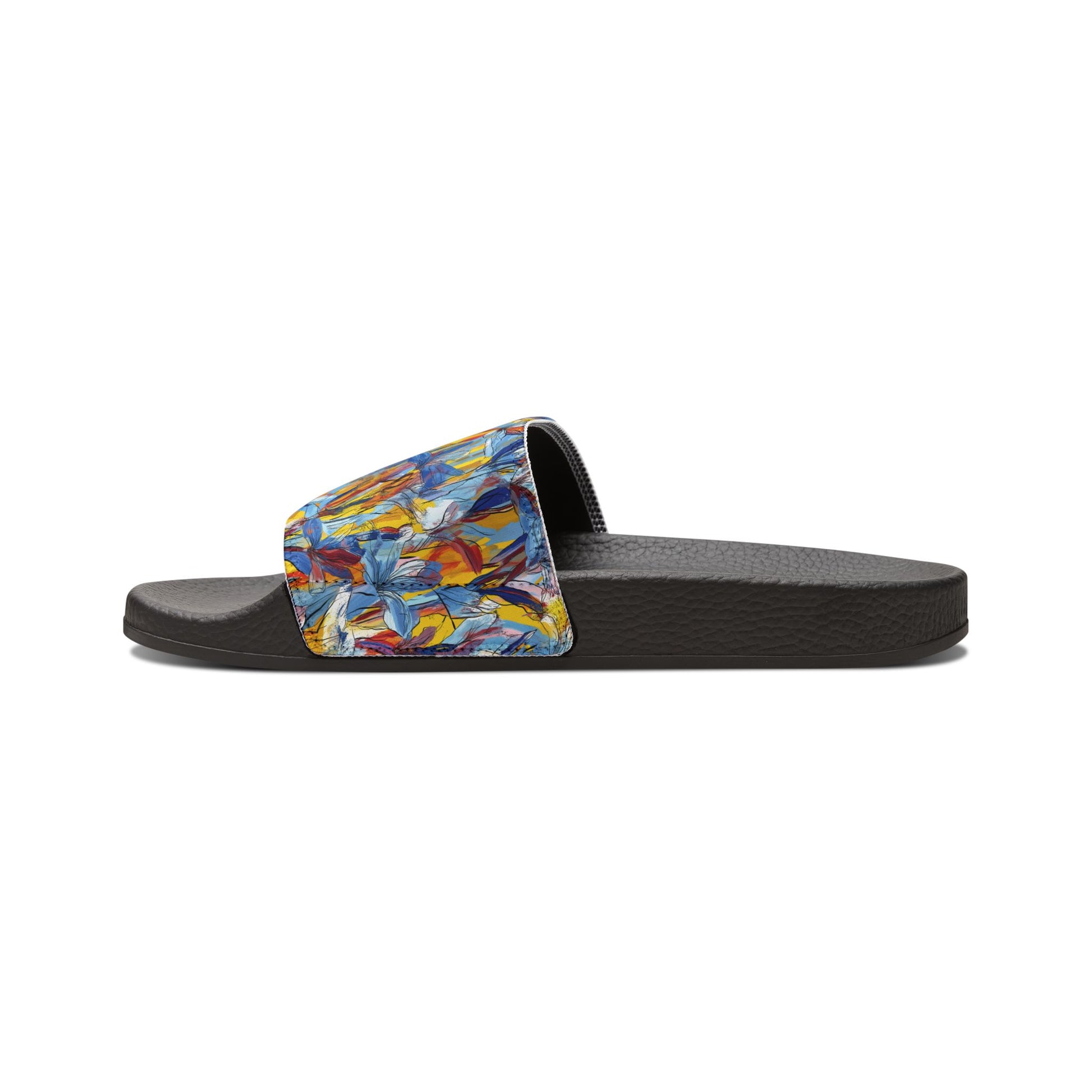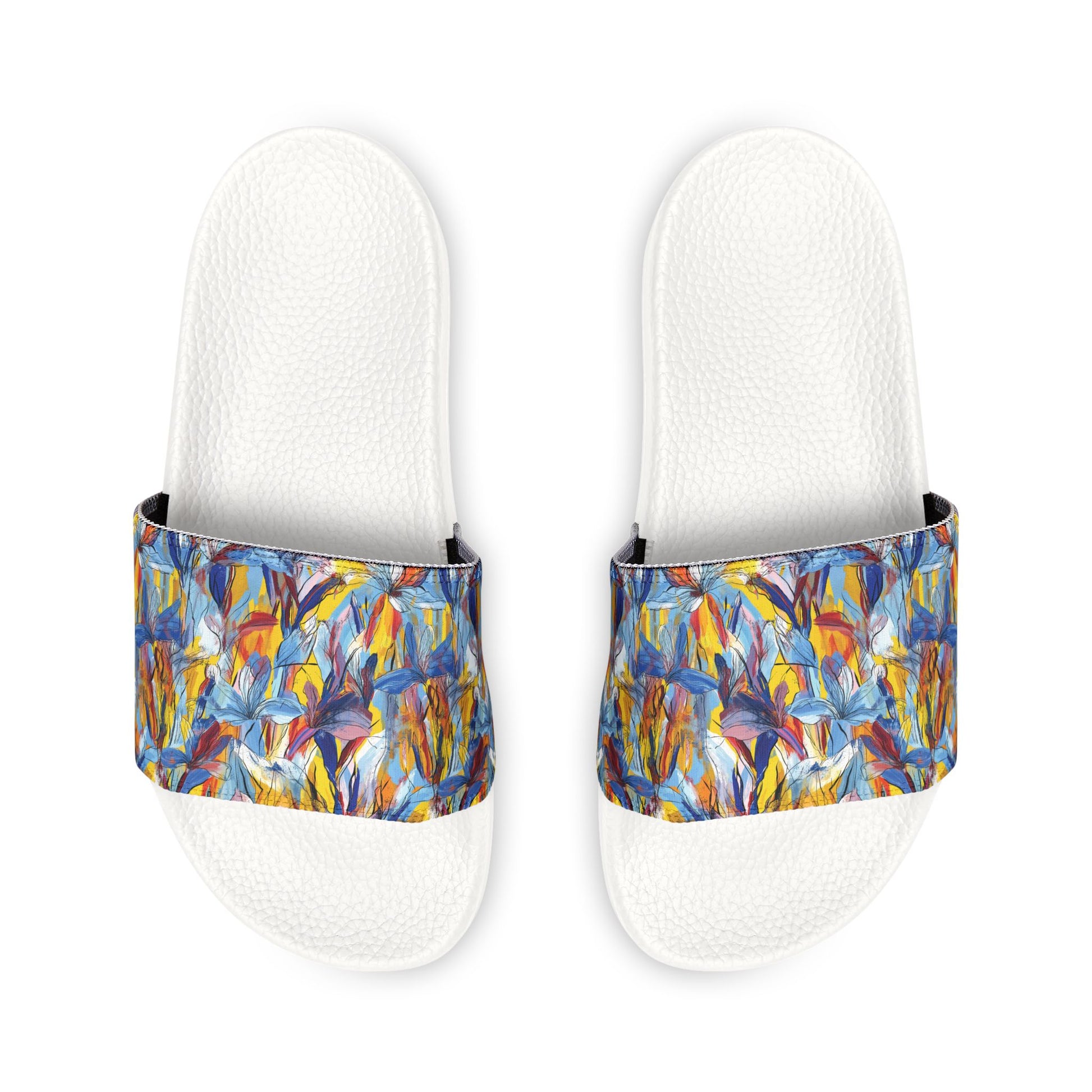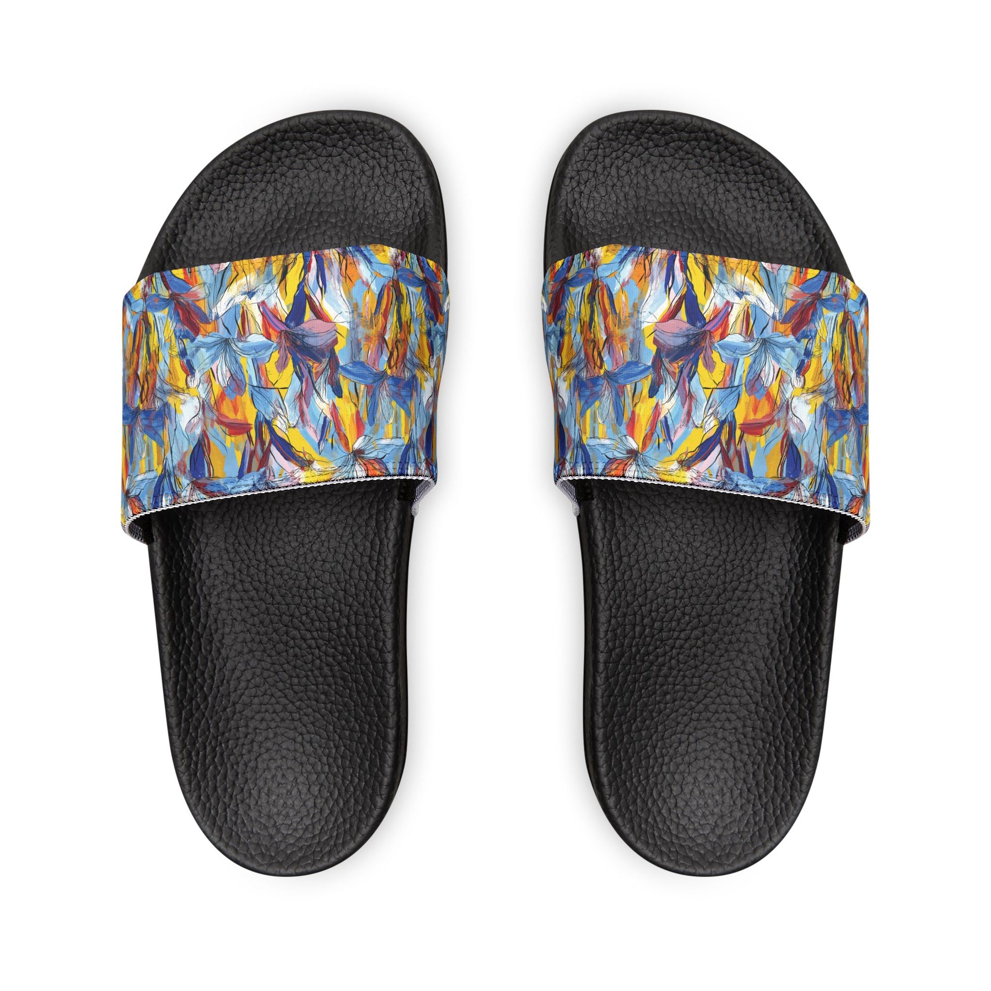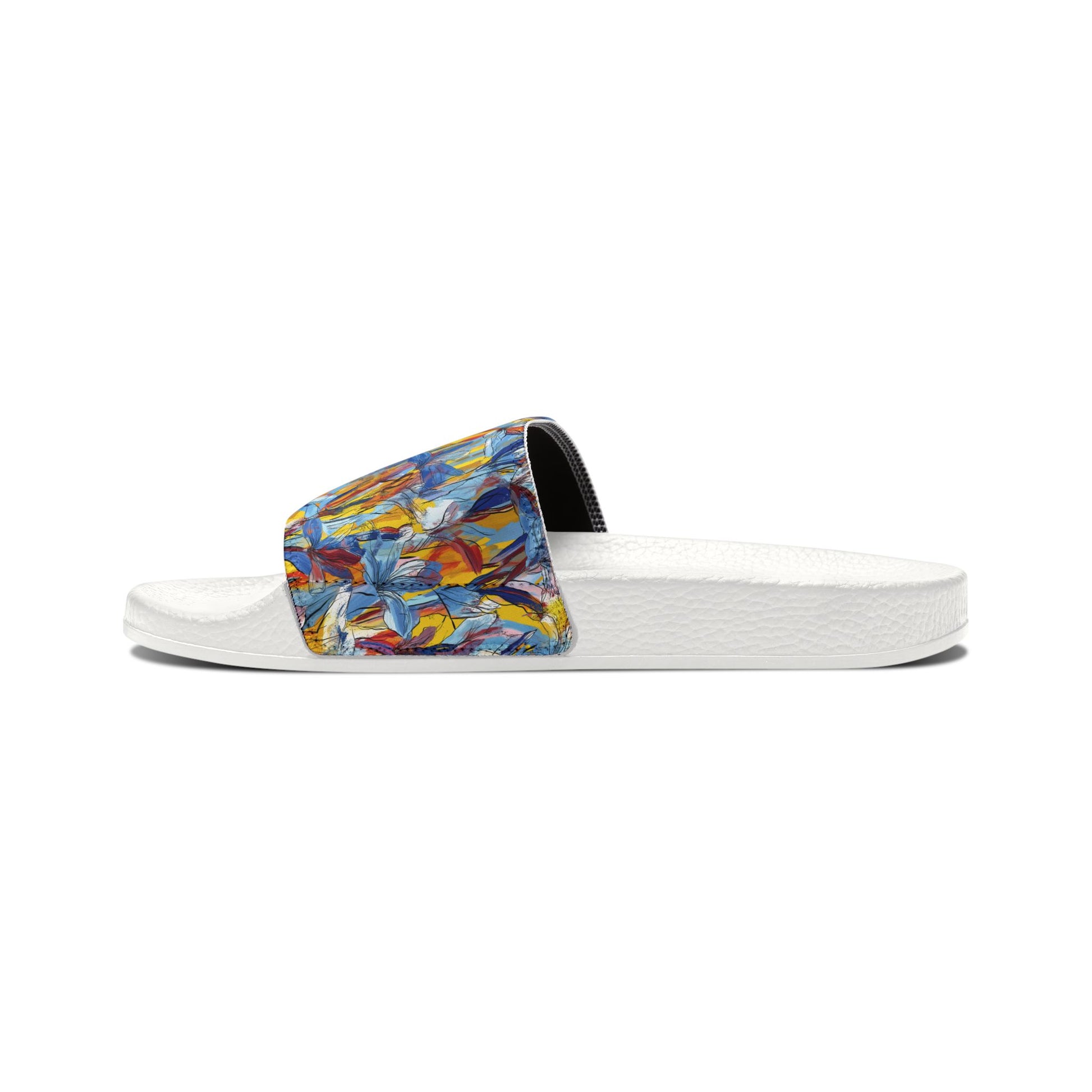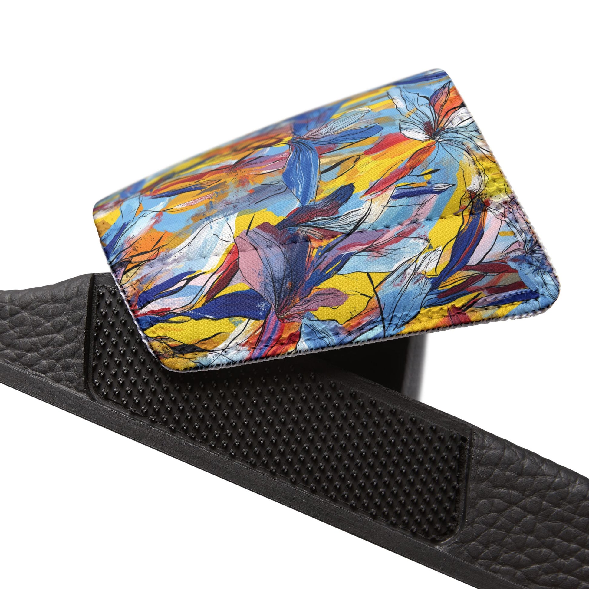 Step into summer with bold elegance and comfort wearing the "Wild Radiance" Women's Slide Sandals. Featuring the dynamic floral abstract design from Rich Silver’s Floral Fusion Collection, these sandals blend vibrant cerulean blue, fiery red, golden yellow, and soft pink hues, bringing a touch of artistic flair to your warm-weather wardrobe.