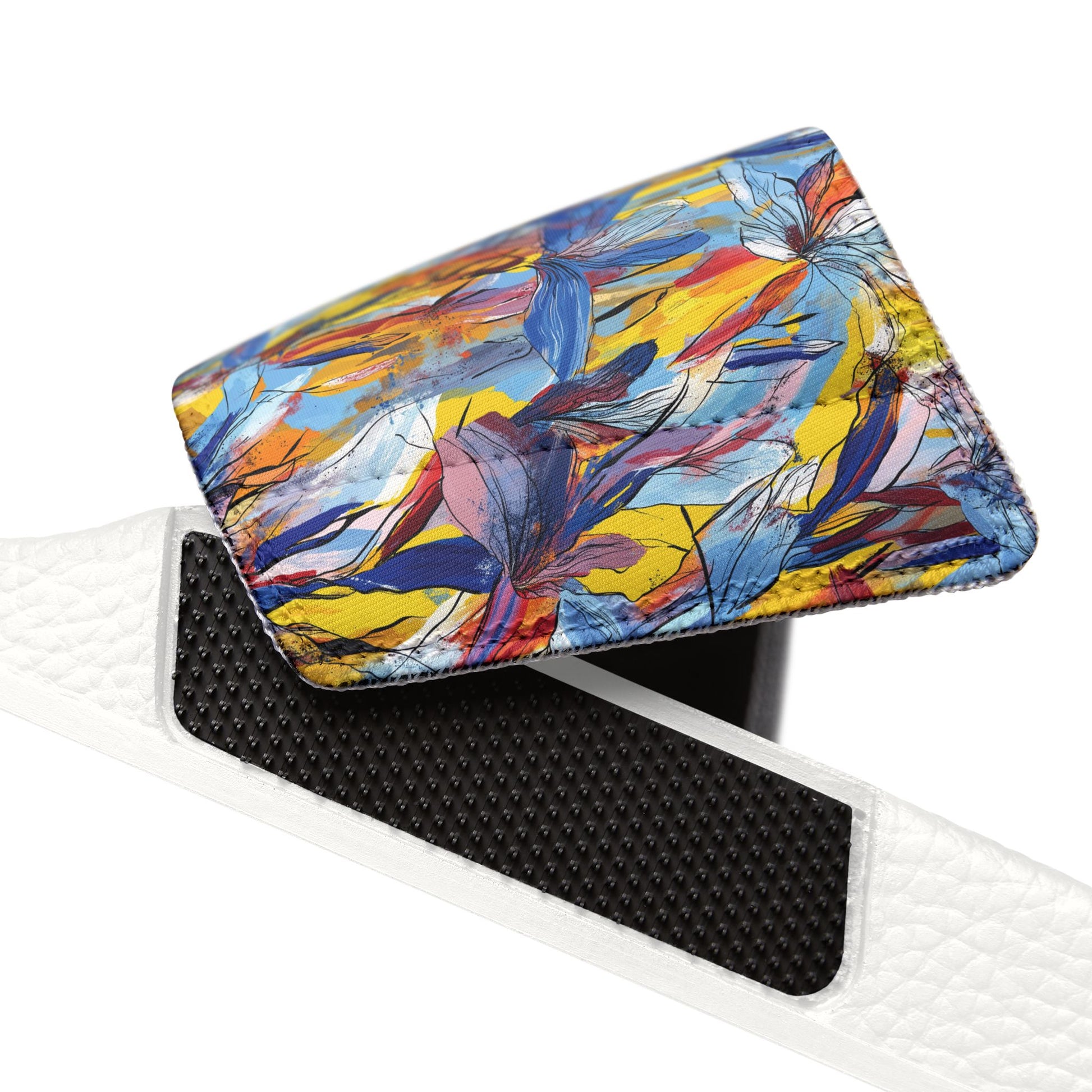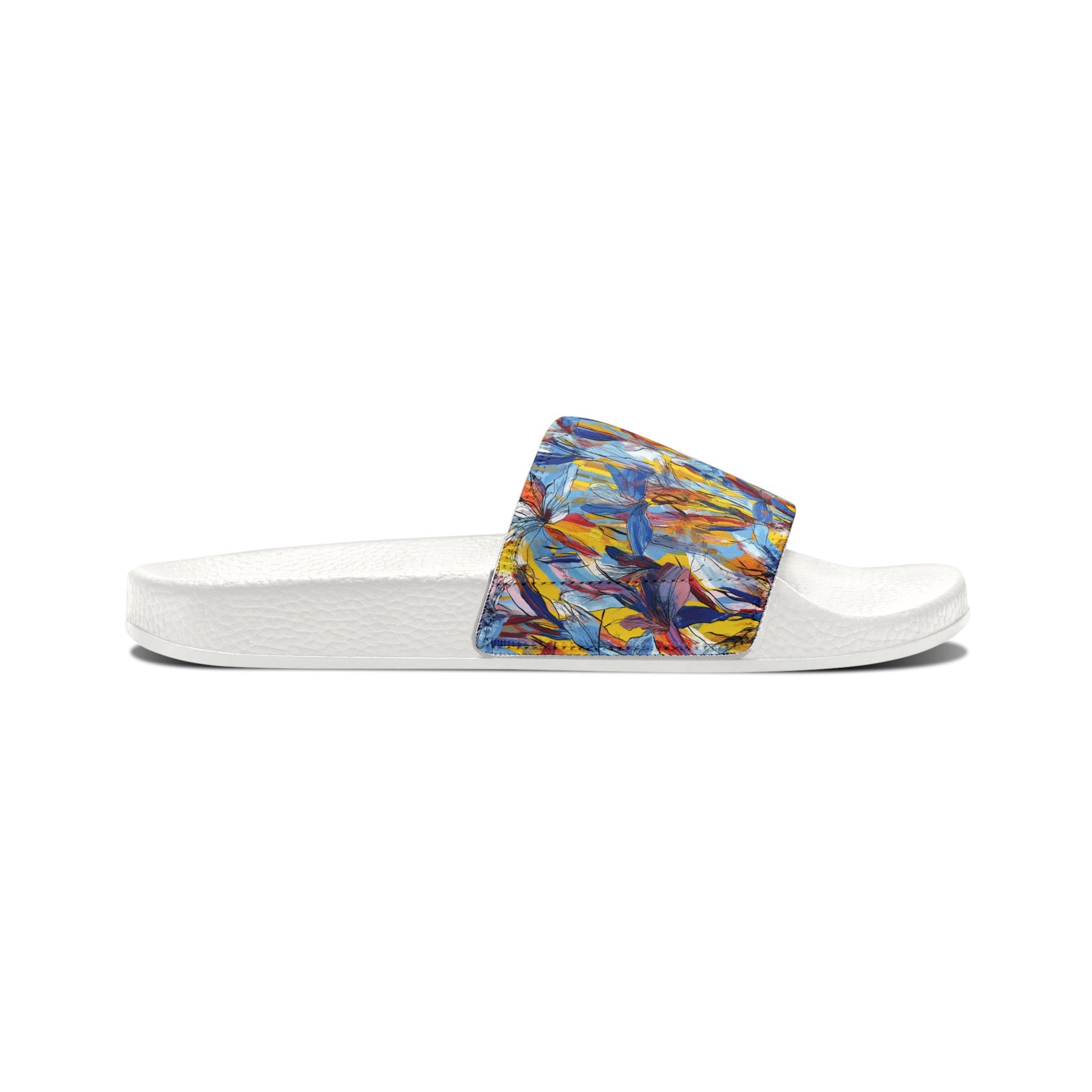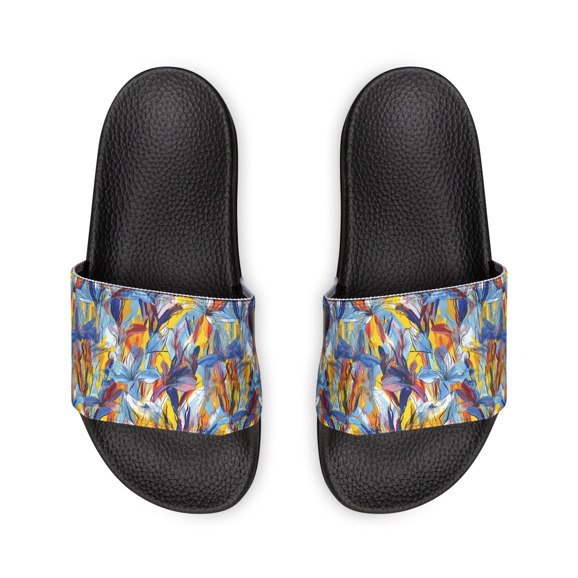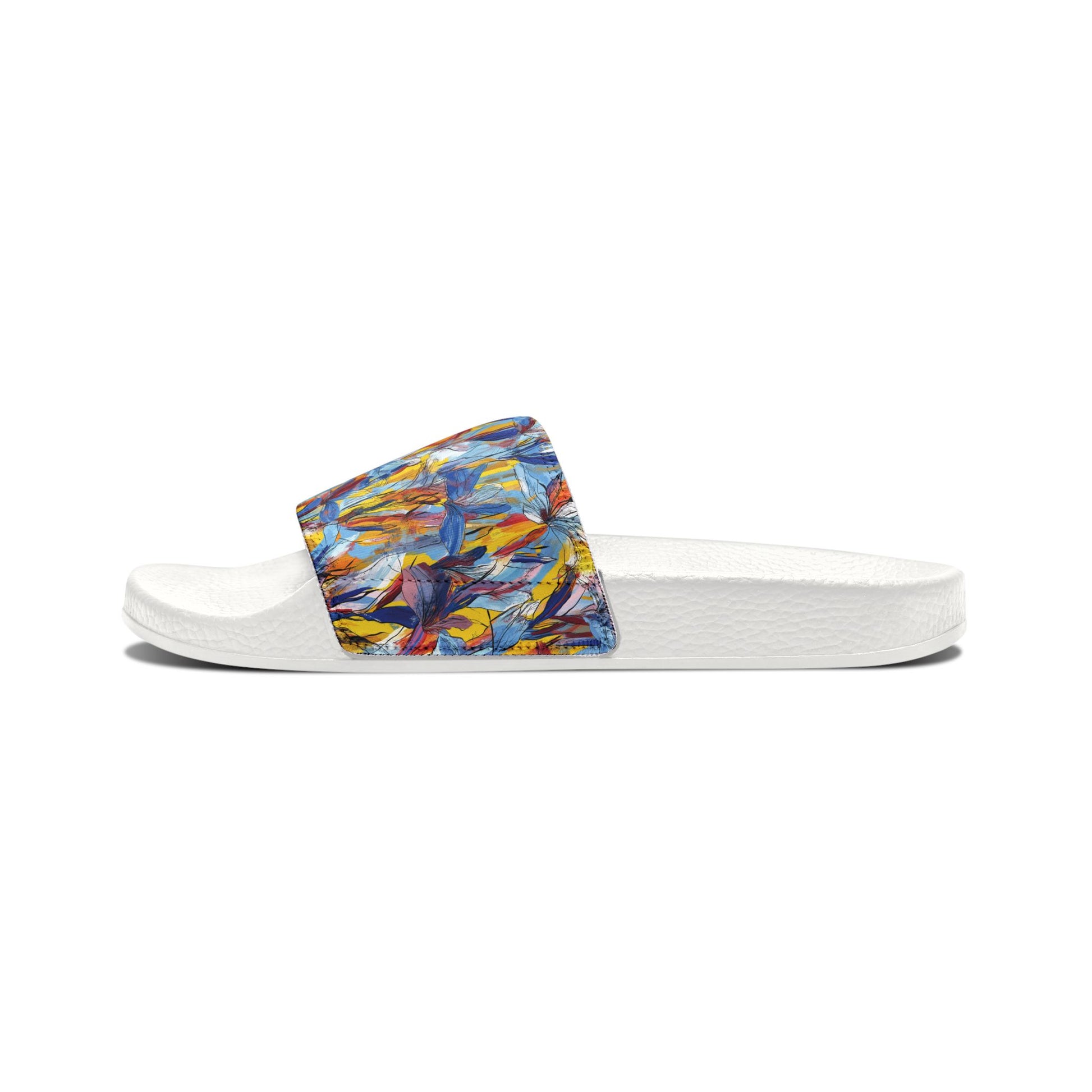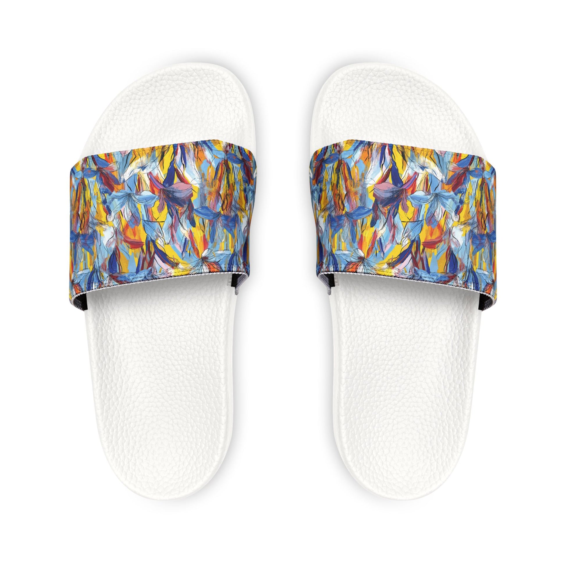 Step into summer with bold elegance and comfort wearing the "Wild Radiance" Women's Slide Sandals. Featuring the dynamic floral abstract design from Rich Silver’s Floral Fusion Collection, these sandals blend vibrant cerulean blue, fiery red, golden yellow, and soft pink hues, bringing a touch of artistic flair to your warm-weather wardrobe.